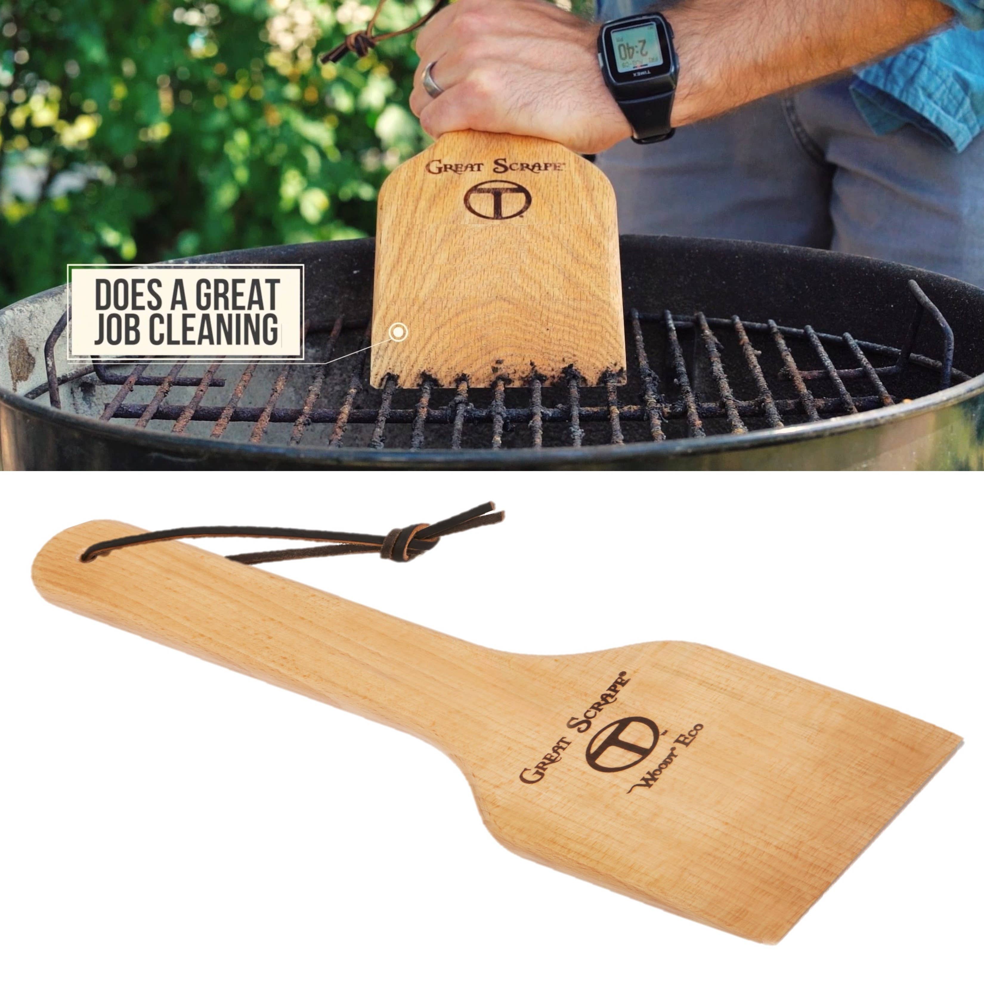 Great Scrape all started when we received a BBQ grill as a housewarming gift that had porcelain coated grill grates. After reading the manual and seeing that an abrasive cleaner such as a wire brush could chip or crack the porcelain, the idea of using wood to clean the new grill was born! The Great Scrape is an all-natural BBQ cleaning tool and wood grill scraper. It is an alternative to the old metal wire brush. It custom grooves to uniquely fit your barbecue grill without having to worry about metal bristles or harming your grill grates. It is made of solid premium hardwood and is designed for years of grilling pleasure. It makes for the perfect grilling accessory or BBQ gift.