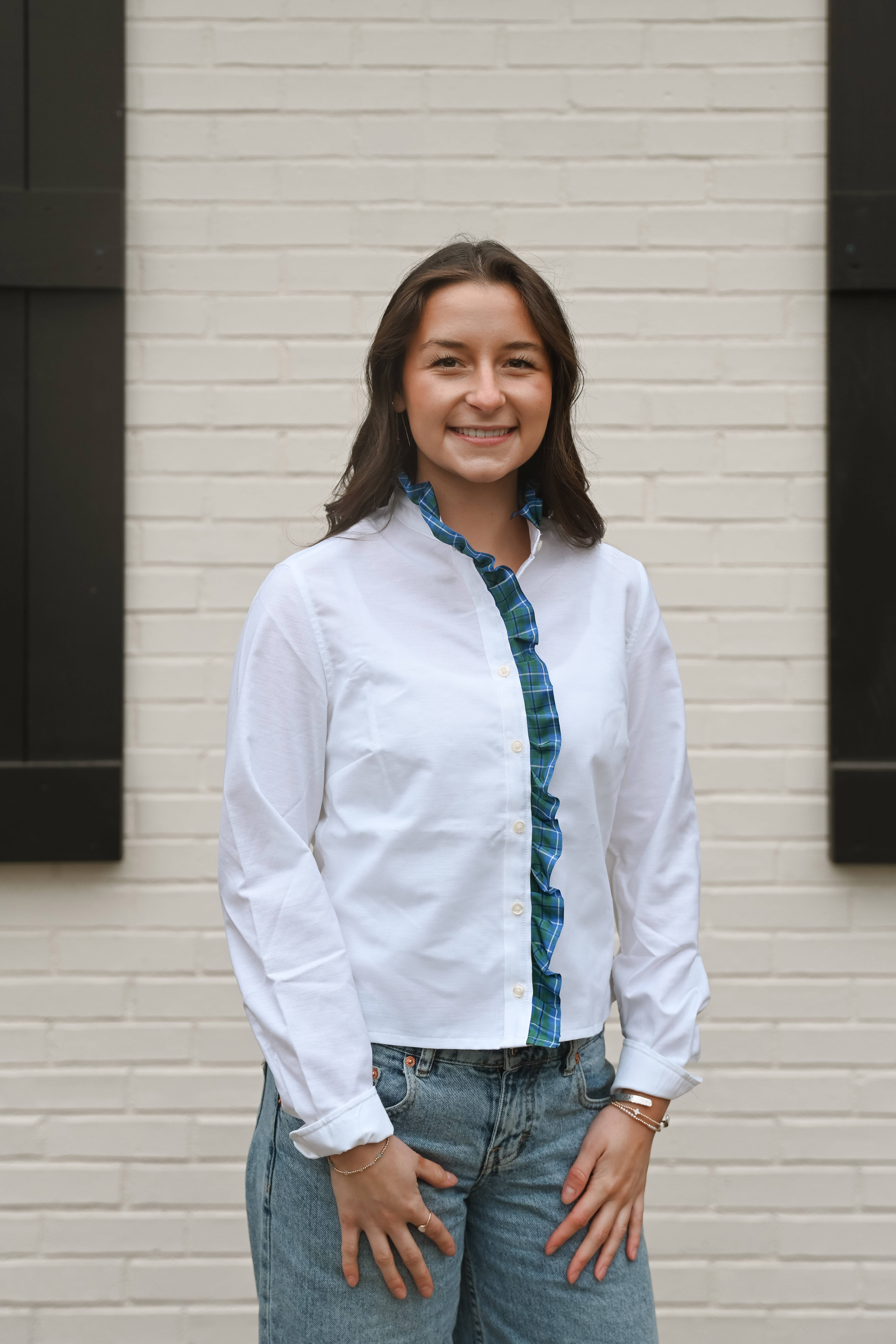 I am Heidi Ackley and I am the owner and designer of my clothing line, Pearly Vine. My career in fashion did not start in New York or Hong Kong but in my basement in Columbus, Ohio. I had 4 year old twins, a black cardigan, and nothing exciting to wear under it. That is when I had the idea to take a plain white woven shirt and pair it with some exciting fabric. I added French cuffs to my basic shirt and it created the perfect pop of color. I wore that shirt and received more compliments than I could understand. A business had begun. Since all of our products are made here in Ohio we love to pivot and move with the industry! Our talented seamstresses have the ability to make a headband as quickly as a faux fur denim jacket. This allows us to continue to make classic our top selling items along with following the trends. So, if you have a trend setter customer AND an old classic faithful customer...look no further with Pearly Vine!