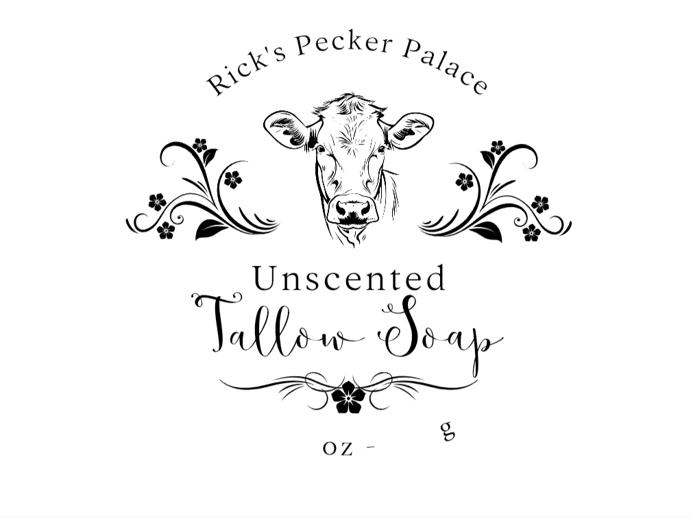 Rick's Pecker Palace is a small farm nestled in rural Illinois with hopes of being self-sufficient (or as close to as possible) in the future. We started out hatching baby chicks and selling them along with farm fresh eggs, hence the moniker of the farm. Overtime, we have expanded our garden and continued making strides for self sufficiency. This led us to making our own bar soap, lotion, shave bars, etc from raw goat's milk and tallow we render on our farm. We have continued to add products and fragrances over the course of several months while actively growing our customer base. All products are made on the farm by hand in small batch quantities. The full list of ingredients for each product is included in the product descriptions. While keeping up with demand, we are almost always testing/creating a new product to offer our customers.