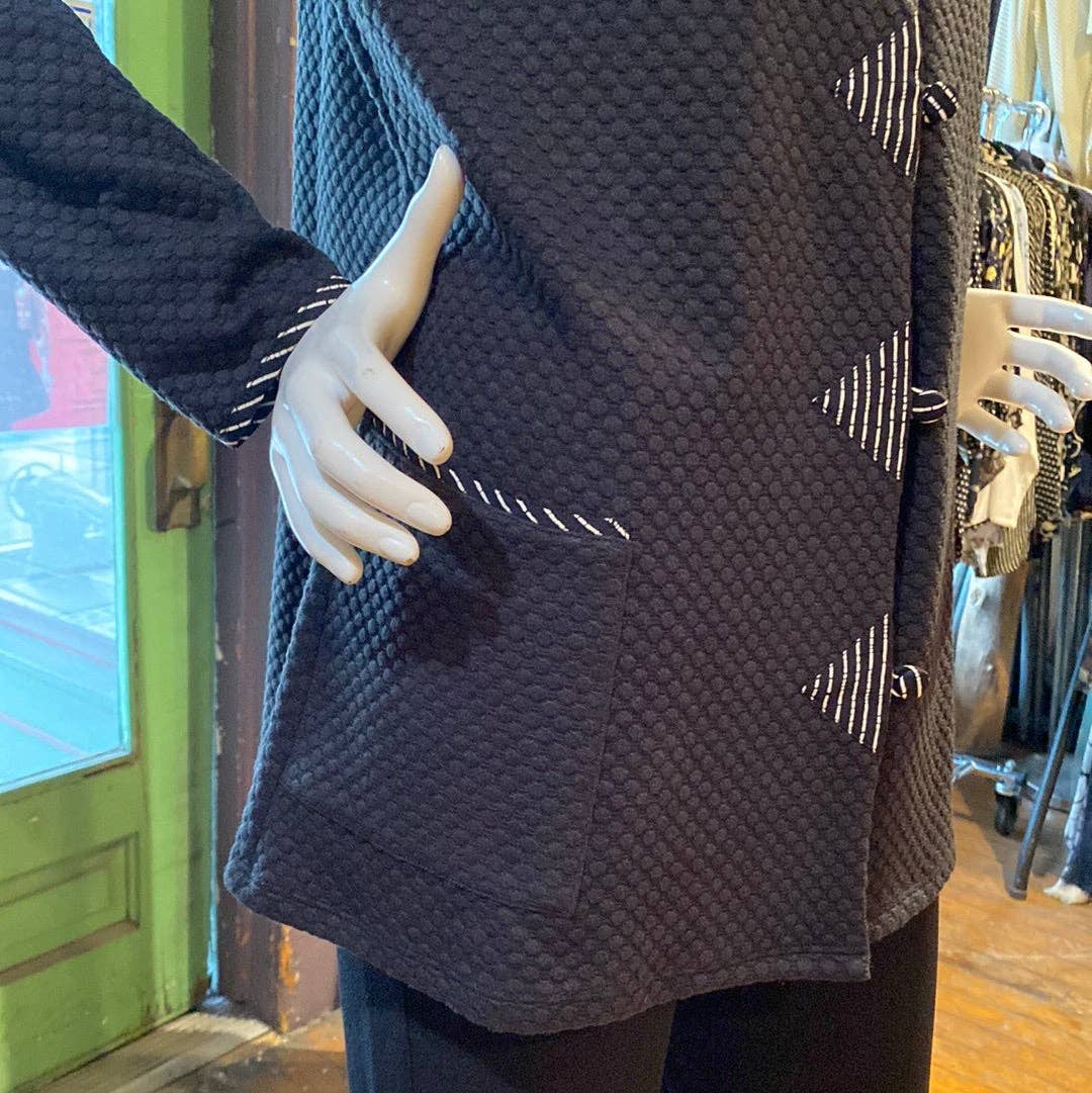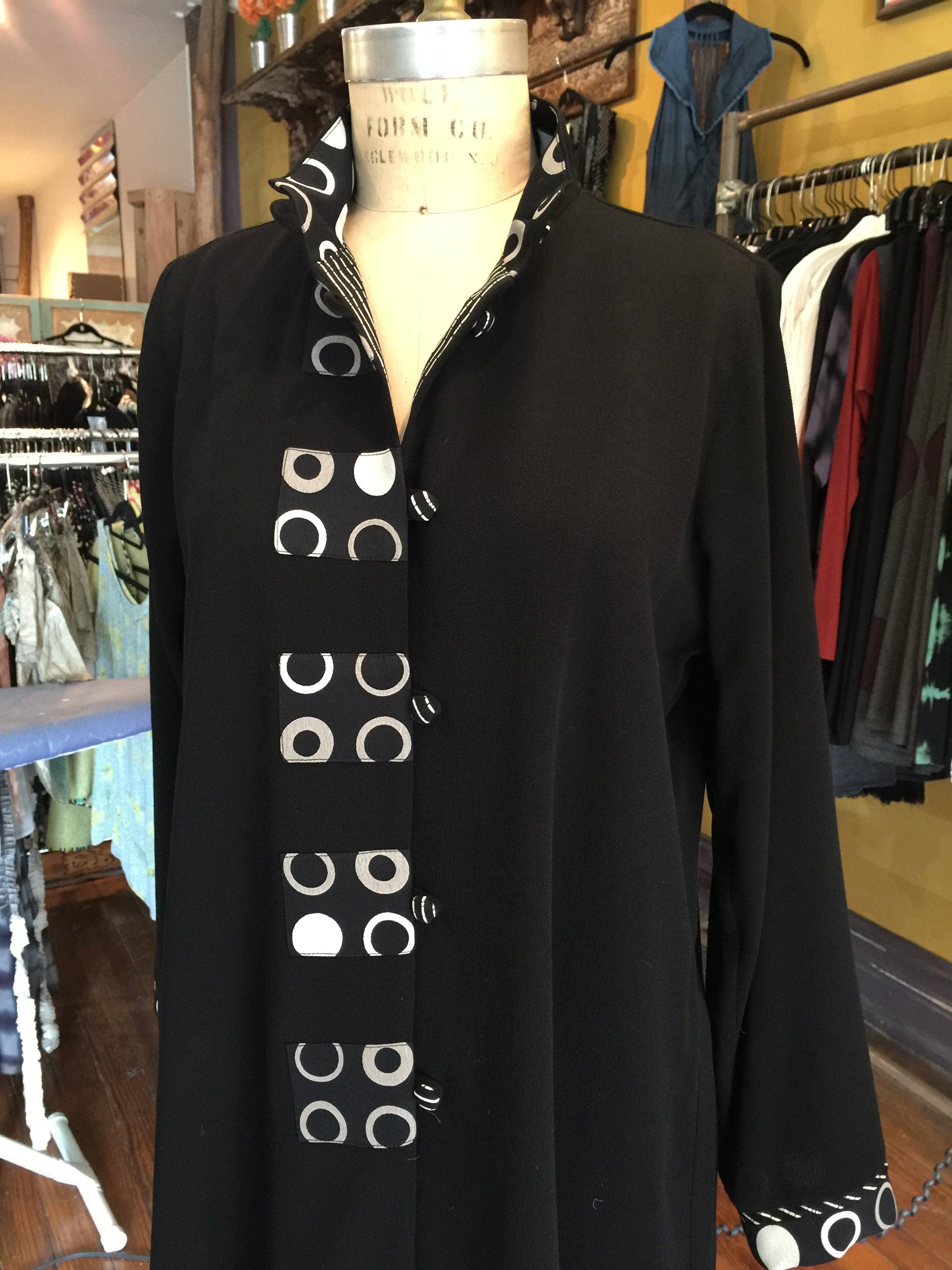 I started my line when my son was young and I wanted a means to provide for us. Humble beginnings of sewing at my kitchen table evolved into small batch production, working with my assistant who makes my patterns, cuts and sews, and acts as a sounding board. Together we make fine women's clothing of which I am proud. Customer service is extremely important to me, and I have cultivated a following of clients who collect my work. In my evolution as an artist/ designer, I have studied dye and discharge techniques for much of my career. I do not adhere to fashion trends per se, but pay attention to my aesthetic vision.