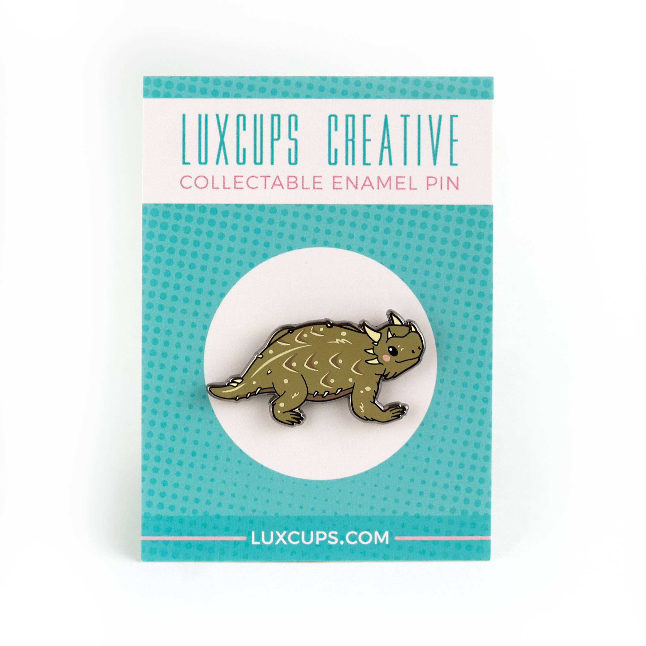LuxCups Creative curates cute, quirky, and imaginative enamel pins, patches, and accessories. Originally from Houston, Texas, Libby and John now reside in New Braunfels, TX, and draw support and encouragement from their adorable miniature schnauzers, Yoshi and Porkchop. LuxCups originated as Libby’s first endeavor in 2008…as a cupcake maker! Drawing inspiration from their love for animals, dinosaurs, and all things kawaii, they create indelible delight for those who experience their designs.