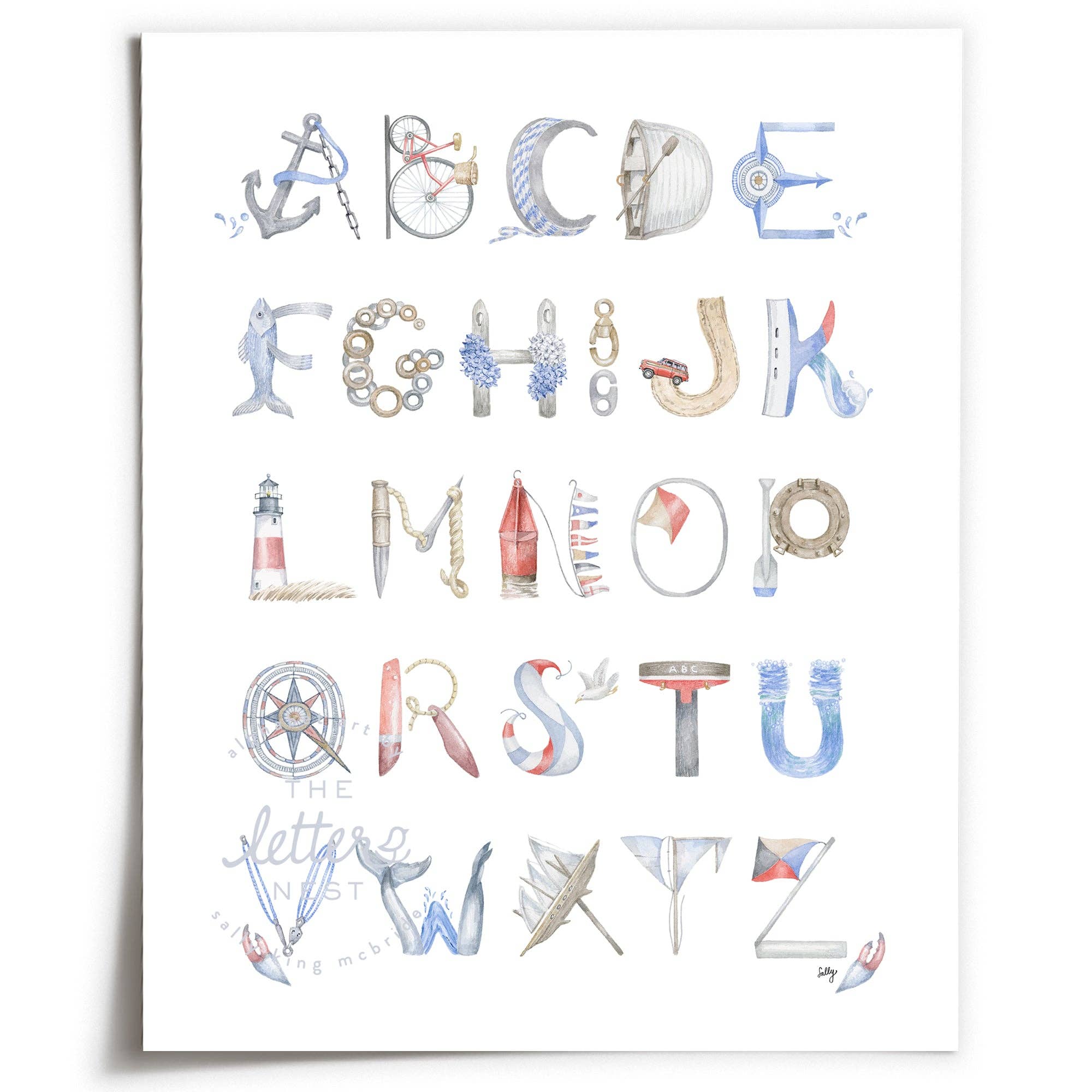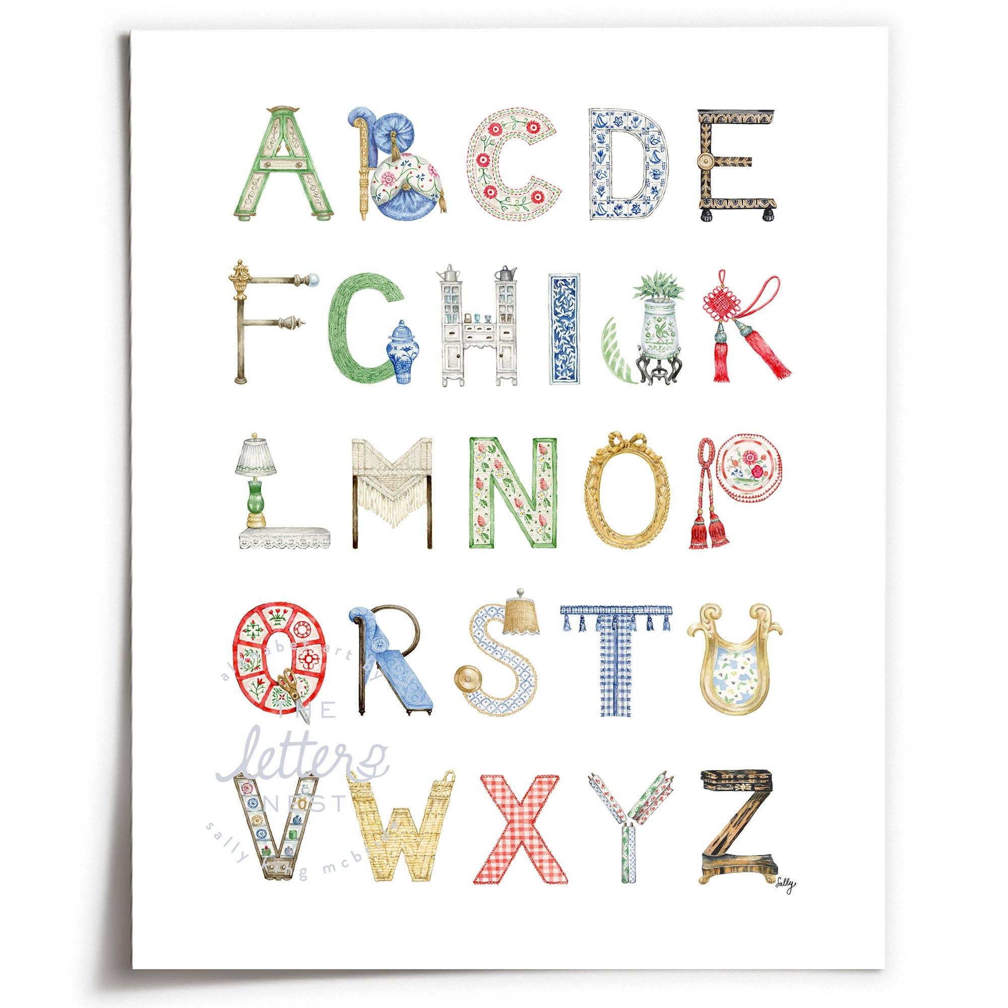 Hi! I'm Sally, founder of The Letter Nest, downtown NYC mom, and watercolor devotee. Before launching my brand, I worked for over ten years at the Metropolitan Museum of Art, where I developed the artistic vocabulary and attention to detail that informs my artwork. Growing up as a faculty kid at the schools where my mom worked instilled my deep appreciation for education. By result, my artwork engages each child in learning: recognizing the pattern of A for Alligator, B for Balloon, through the artistic connection of letter and image. The idea for The Letter Nest took hold when my friends and family started to have children. I noticed a white space for elevated alphabet art. Enter The Letter Nest, a name chosen for its evocation of home, the nest, the nursery. My hope is that my work will bring joy, beauty, and delight to these spaces, as well as to the children who inhabit them.