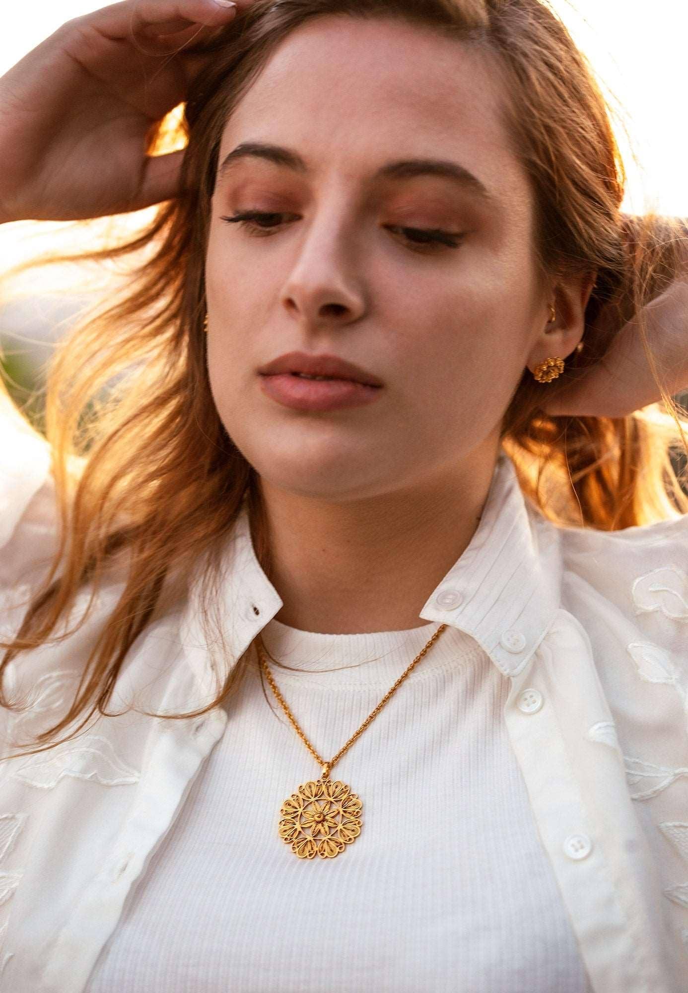 At OH VOILA, we believe in creating art, not just jewelry. Our founder, Alejandra Garcia, a Colombian artist turned jewelry designer, crafts each piece by hand, blending her passion for organic patterns found in nature with the meticulous artistry of the filigree technique. Originating from a lineage of artisans, Alejandra weaves gold and silver wire threads into intricate, lightweight designs, creating a stunning amalgamation of geometry, textures, and soft angles. Made from Vermeil Gold, 950 Silver or Rhodium plated. 14k gold or 18k gold can be especially ordered. Every OH VOILA piece is distinct, reflecting the finesse of its creation and the unique story behind it. Our creations are more than adornments; they're expressions of identity. Meticulously handcrafted by skilled artisans in Colombia and finished in the U.S, our jewelry showcases the subtle elegance that fits any attire, formal or casual. With OH VOILA, you are not just wearing a piece of jewelry, but a piece of art that has traveled through hands, hearts, and time. Enjoy our collections, and immerse yourself in the OH VOILA experience.