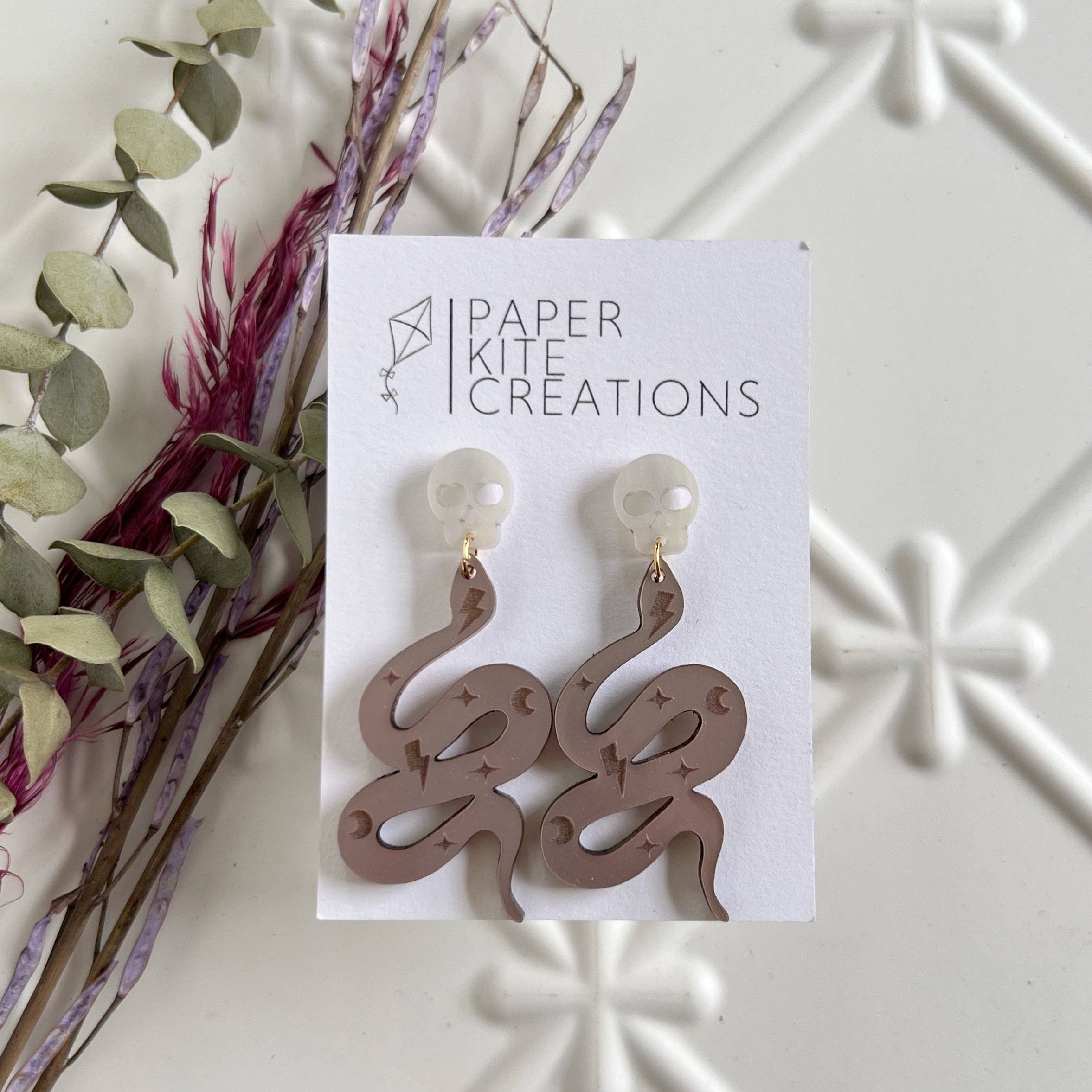 Paper Kite Creations is a brand that specializes in fun and colorful laser cut earrings. We love utilizing many different mediums: wood, acrylic, and leather. Every earring is lightweight, nickel free, and sure to be a show stopper. Our focus is to create amazing wearable art that is sustainable and earth conscious. The Walnut and Cedar are sourced from Kentucky by another small business. We recycle the scraps having them cut, planed, and sanded. Zero waste!