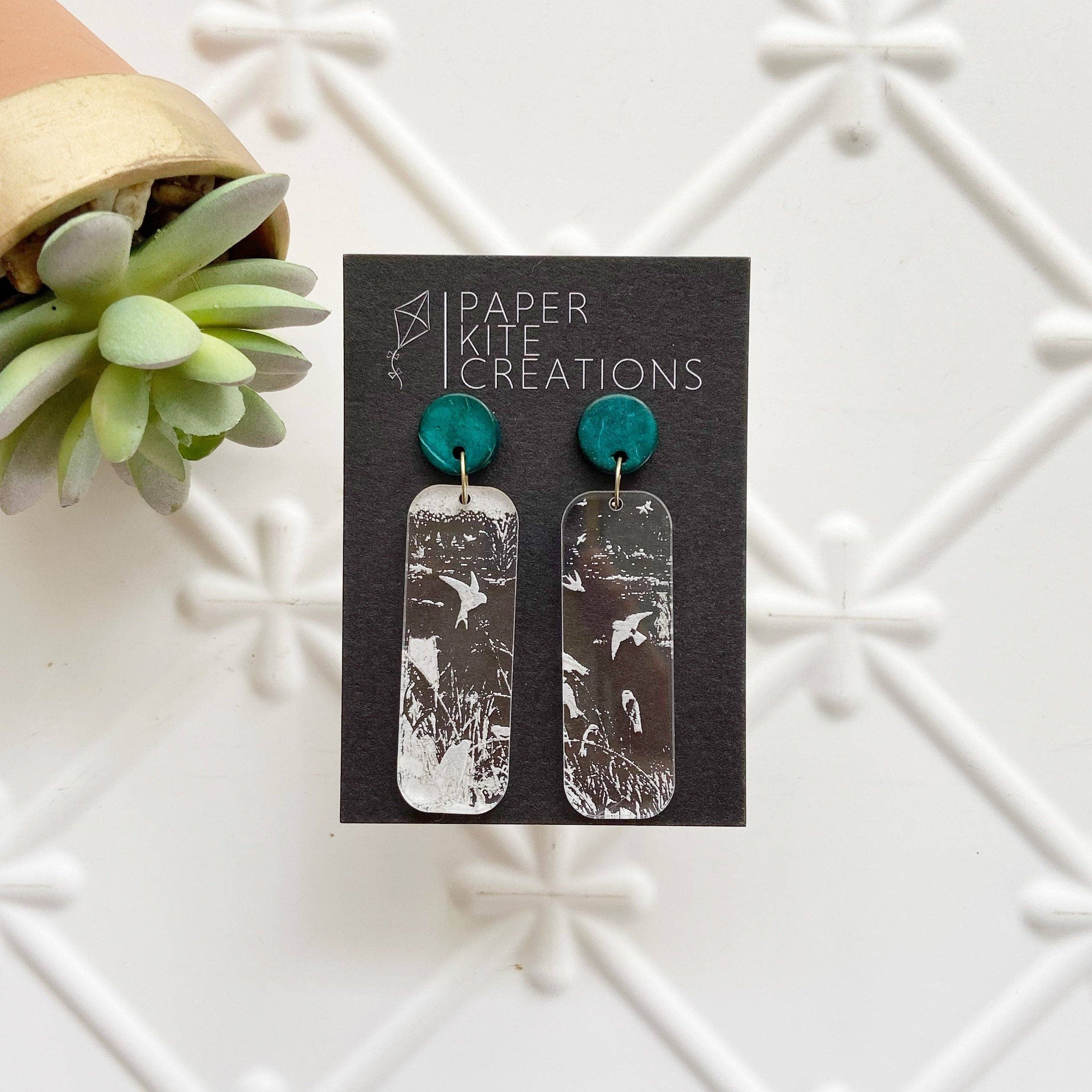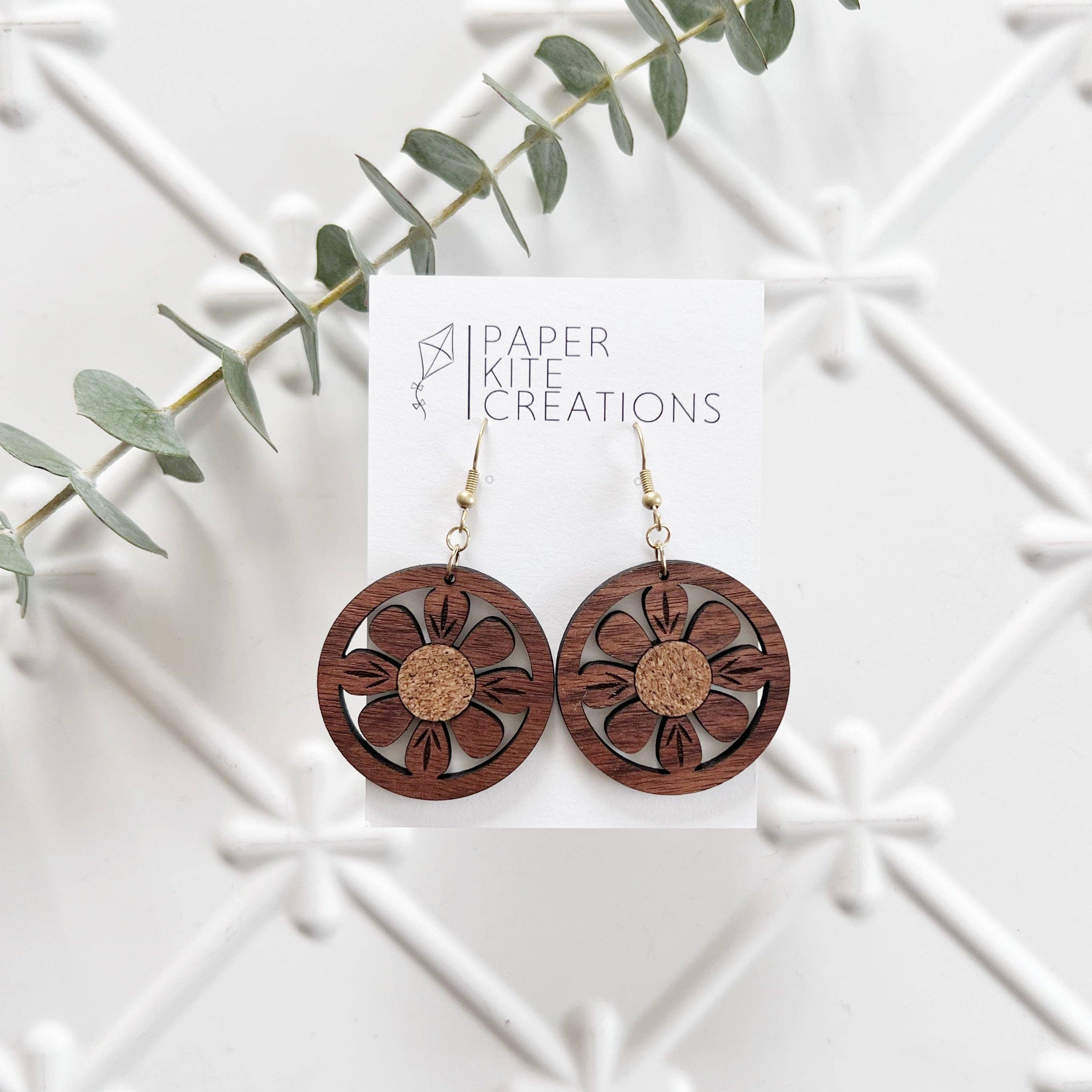 Paper Kite Creations is a brand that specializes in fun and colorful laser cut earrings. We love utilizing many different mediums: wood, acrylic, and leather. Every earring is lightweight, nickel free, and sure to be a show stopper. Our focus is to create amazing wearable art that is sustainable and earth conscious. The Walnut and Cedar are sourced from Kentucky by another small business. We recycle the scraps having them cut, planed, and sanded. Zero waste!