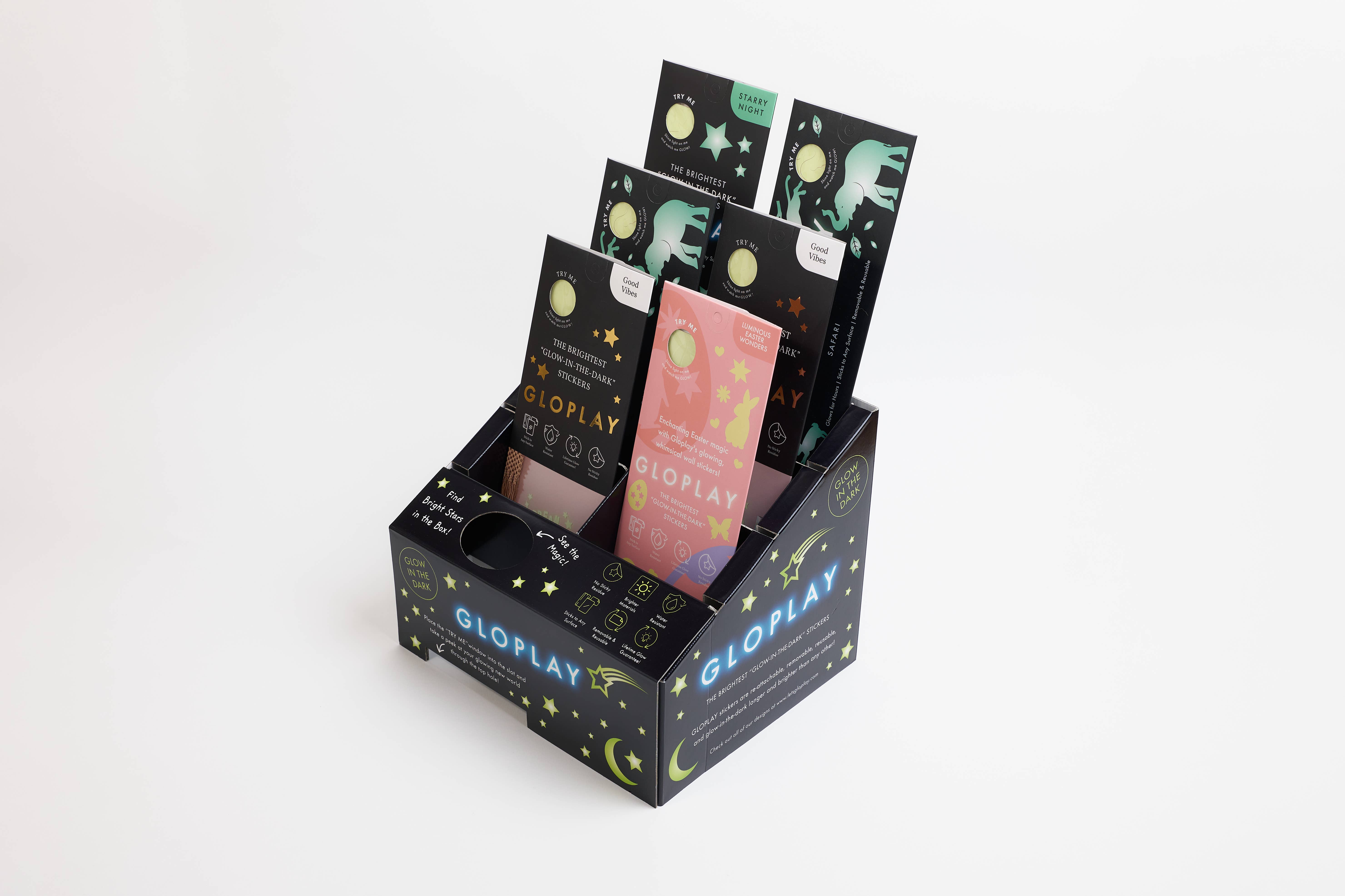 The brightest glow-in-the-dark wall stickers you’ve ever seen! Each unique design caters to a different category, holiday, or occasion, and sticks to your walls without leaving a mess. The strength of the glow will outshine any on the market, and the adhesive will keep them up until you’re ready for a change of scenery. So go ahead and play, with GLOPLAY! *A powerful light, 70 times brighter. Brighten the dark space and create extraordinary space. 70 times brighter than other products in the market 20 minutes after getting dark*. Rooms wall can be decorated into a magical space with GLOPLAY. You will have a perfect wall décor for your party! *Light persistence with a lifetime guarantee to continue shining brightly. Dreamy light maintains a gentle glow while your kid’s sleep. 110 times brighter than other products 60 minutes after getting dark*. Guaranteed to stay shining for life without batteries. It keeps shining more than 5 hours, so it gives peace of mind even if the child wakes up at midnight. Make the wall stickers your nanny for your baby during night. Comparison with competitor products when darkened by illuminating 200lx. *Stick it and peel off anywhere anytime. An adhesive surface that can be attached to any surface and peeled off to play with. It can be easily removed by children so move them around and challenge their creativity. *Durability, Water resistance. GLOPLAY has great durability, so it can even be used outdoors or in the bathroom.