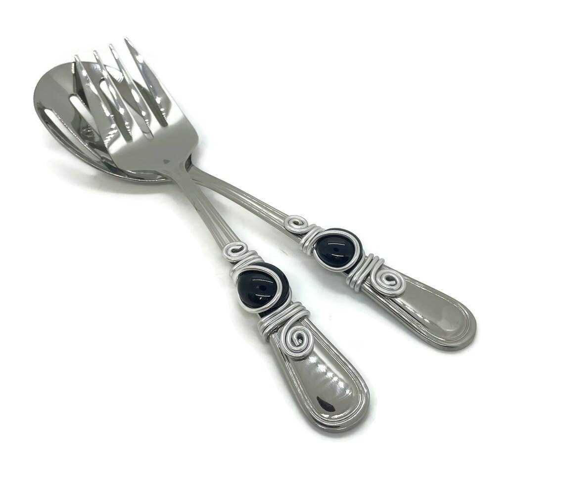 People always ask me what inspired me to start my company. The answer is simple really....it was some wine and laughing with friends. I was in direct sales for a great jewelry company that suddenly closed. I had a huge stock of beads and had no idea what to do with them. It was at my own BBQ party that the "light bulb" went off. I was serving a dish and some of the fancy beads were no longer attached to my serving piece. What if I wove the beads on with wire? What if I didn't have to hand wash them but could put them in the dishwasher? What if the piece was functional as well as art? Through the years, styles have changed but my main priority is to continue making pieces that will not fall apart after use. Pretty and functional is my motto. Functional Art!