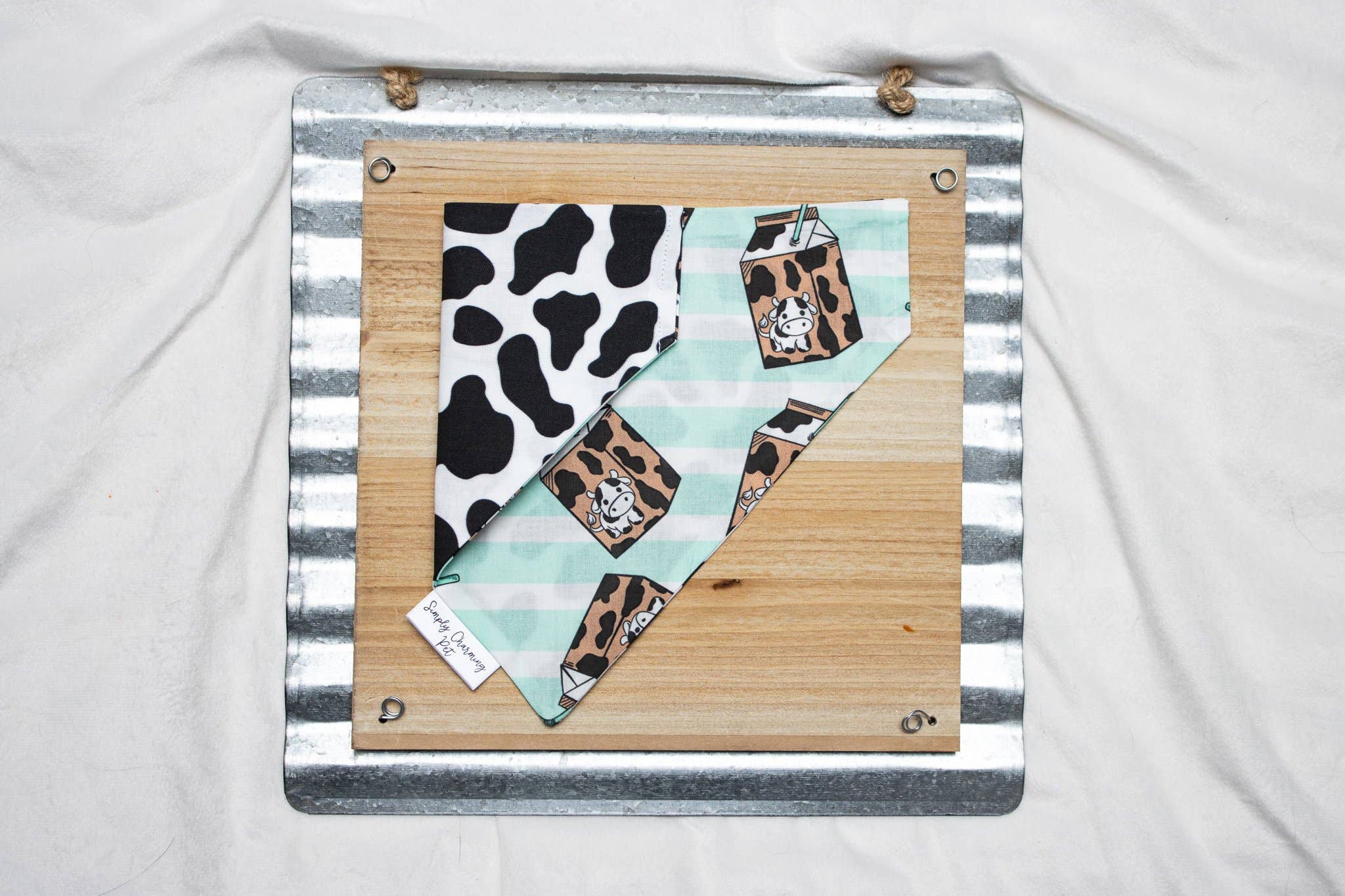Hello everyone! I'm Kaylyn, the creator and owner of Simply Charming Pet. Callie, the german shepard pup, is typically the face of the company. You will see her modeling all of the bandanas. I started this brand in college when I couldn't find any dog bandanas that physically fit my dogs while also fitting their personalities. I started making some for fun until it started building traction between my friends and family. I started by selling them at my local garage sale, to creating an Etsy shop, my own website to even selling in stores. It is so fun to dress up your pup for special occasions and everyday wear. The photo-ops are endless! Each order is made for you in Medina, Ohio! Due to the nature of this, design placements can vary on each bandana. These are over the collar bandanas so they slip right over your pet's collar. They are designed for easy use and a safer alternative to tie on bandanas. Our bandanas come in sizes x-small, small, medium, and large.