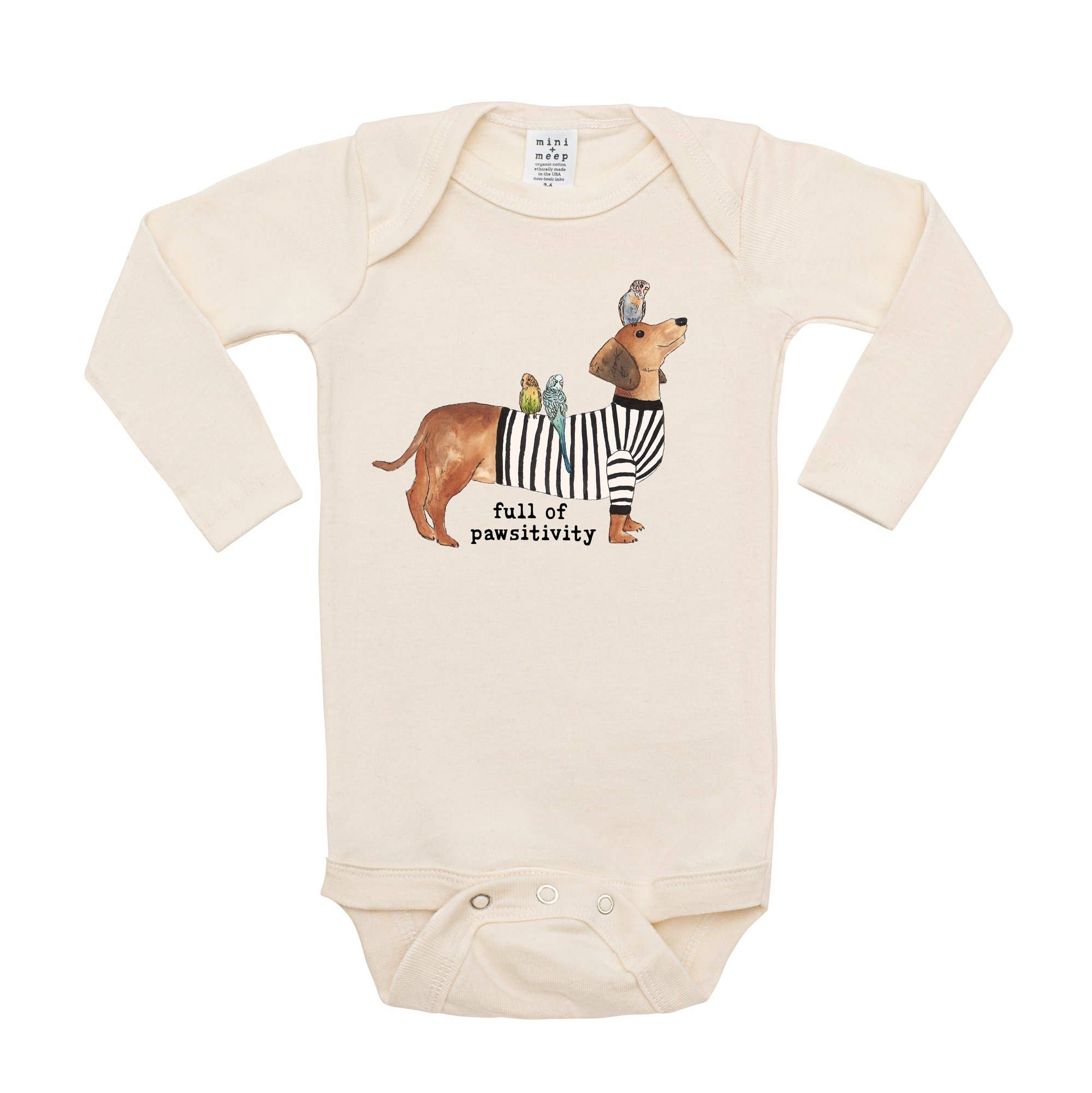 About us: From where and how the cotton is grown, to the people who sew our one-of-a-kind products, we have gone above + beyond to support fair labor and ethical practices, protect the planet through local, sustainable manufacturing and give back to children in need. Our USA-made, GOTS organic children’s apparel was designed to inspire positivity, creativity and nature-based play. Gives back: 5% of all wholesale orders is donated to fund a preschool in rural Haiti. Your purchases help supply school lunches, teacher salaries and supplies to those living in extreme poverty. To date we’ve donated 50K meals and counting. Learn more at miniandmeep.com Fun fact: All of the artwork you see on our products is hand-painted by our founder and inspired by her journey through parenthood.