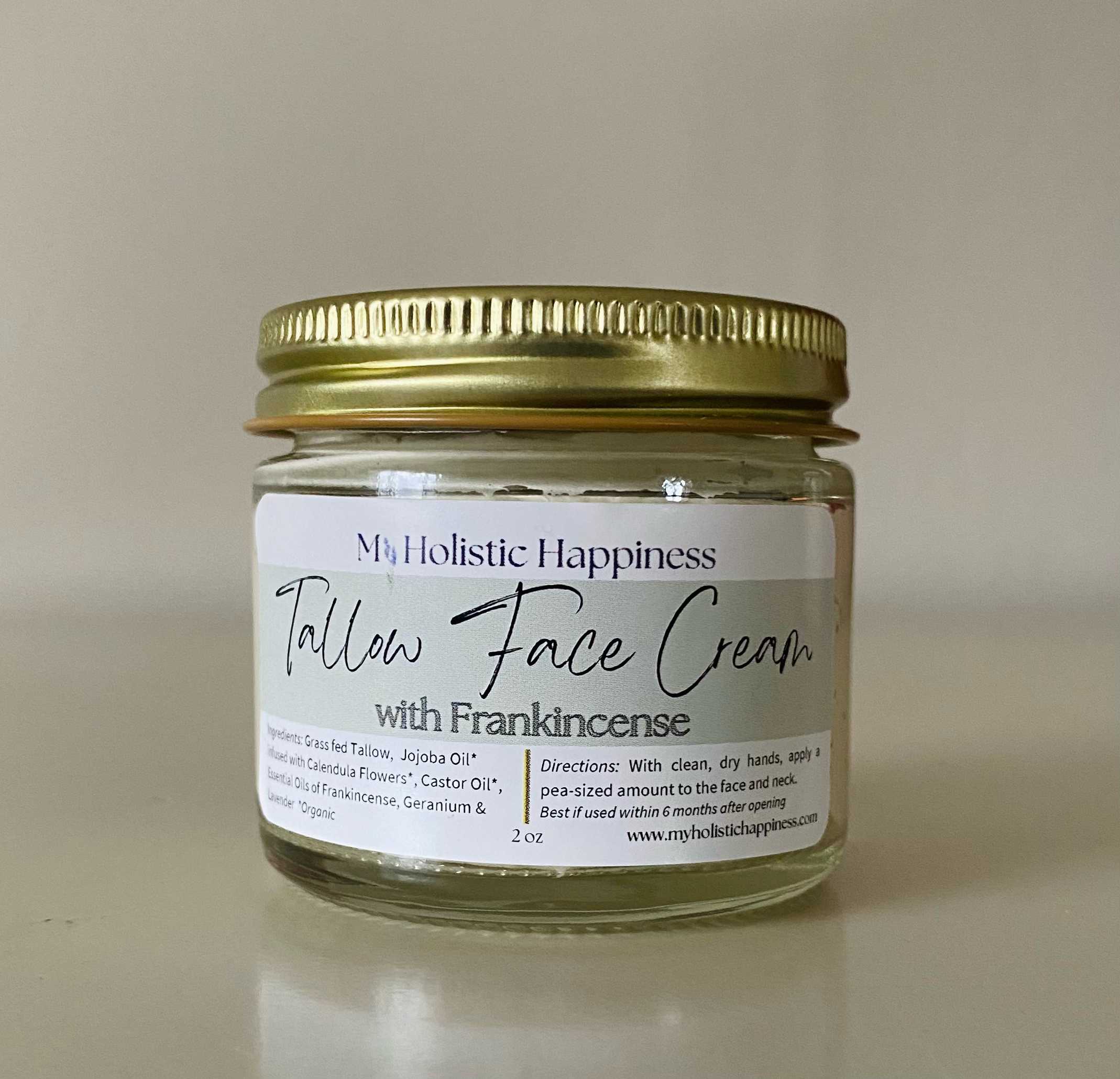 My name is Bridget, owner of My Holistic Happiness. Here we believe in the power of God's creation to nurture and heal our bodies. We only use natural, organic ingredients like grass-fed tallow, raw beeswax, pure essential oils, organic botanicals, and oils to nourish your skin. Everything we do is by hand and created in small batches to ensure you are receiving high-quality tallow skincare and wellness products.