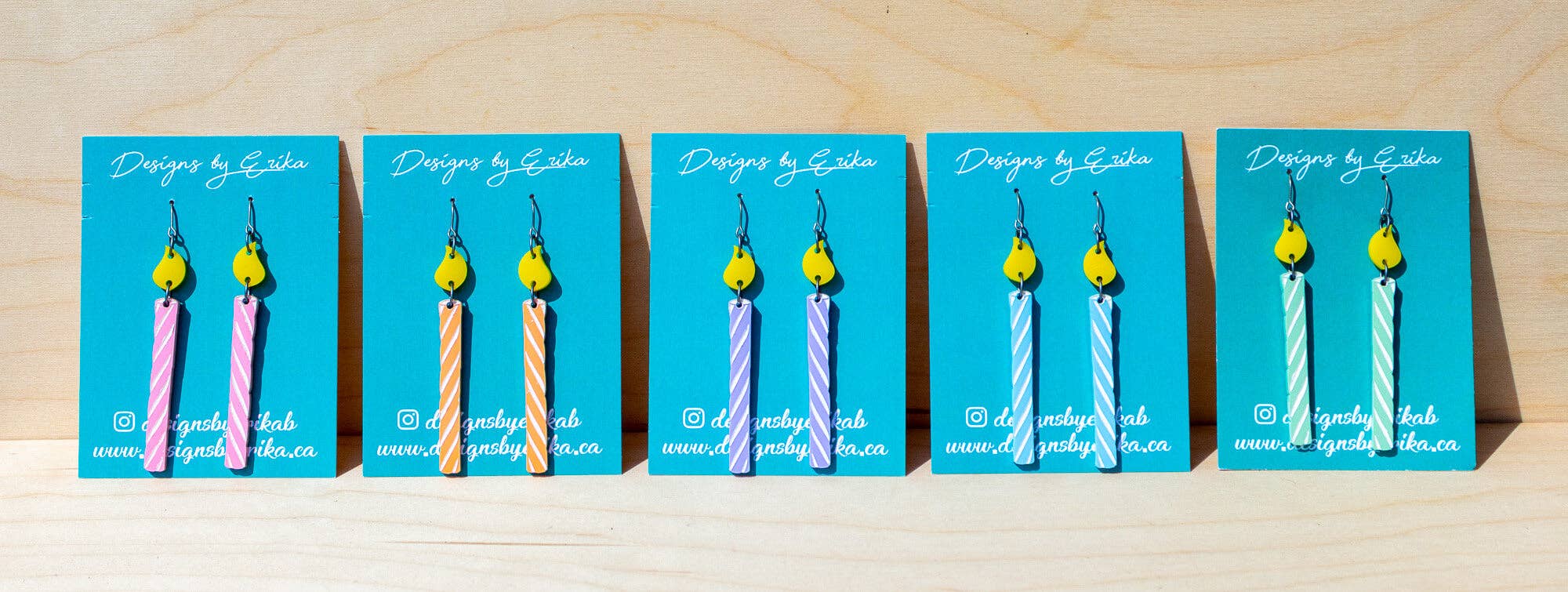Designs by Erika has been creating jewellery, accessories, and home decor that are all handmade in Guelph, ON since 2016. Erika works with materials spanning from specialty wood to acrylic to create whimsical, statement designs. From sentimental accessories to seasonal jewellery Erika creates giftable pieces for any occasion!