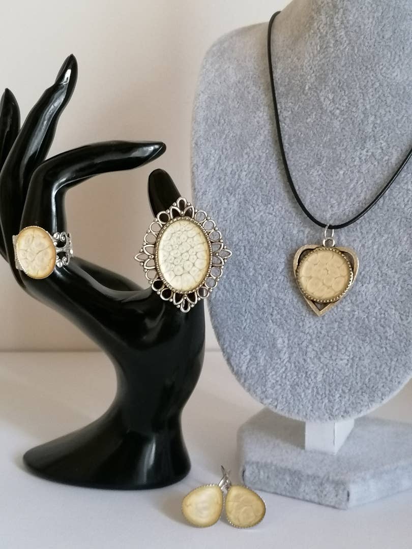After having been a florist, sculpting and modeling the earth, handling mosaics, today I create jewelry in Grenoble, France. Concerned about the environment, I use in my workshop materials that respect nature and the skin such as supports in lead-free nickel-free brass, wood, solvent-free paints intended for Fine Arts with pearlescent (moon), marbled (prism), opalescent (stained glass), smooth (ceramic) effects; textures with glazed effects heated in the oven, alcohol-free inks. It is also the meeting with resin, dried flowers, pearls, mineral and semi-precious stones. It is the materials themselves that inspire me. My hands do the rest to give you the best.