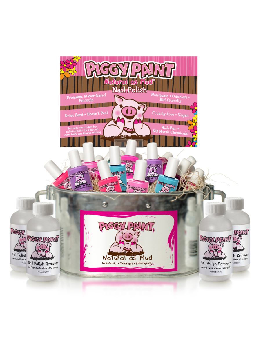 Hi, I’m Melanie Hurley (aka Queen Piggy)! I created Piggy Paint when my daughters were 2 and 4. We loved painting nails, but I hated the thought of my girls putting their fingers in their mouths after using traditional polishes full of smelly chemicals. One day while painting over a foam plate, a drop of polish ate through the plate—and I knew something had to change. I searched for a safer, kid-friendly alternative, but nothing existed. I was a teacher with no business experience but set out to create a non-toxic polish for kids everywhere. And ta-da! Piggy Paint was born—fun, colorful, and worry-free! It’s been 17 years of ups, downs, and sparkly moments—but our mission has never changed: to create non-toxic, premium products that are completely safe for kids (mine and yours!). With an eco-minded heart and safety at our core, we’ve crafted a water-based polish that’s virtually odorless, dries hard, and doesn’t peel! It’s better than “17-free” or “21-free”—because it’s free ofall harsh chemicals. Piggy Paint is cruelty-free, vegan, and available in a rainbow of colors—ALL the fun & none of the worry! I'm so grateful for your support and hope you love Piggy Paint as much as I love naming the polishes. Love, Melanie