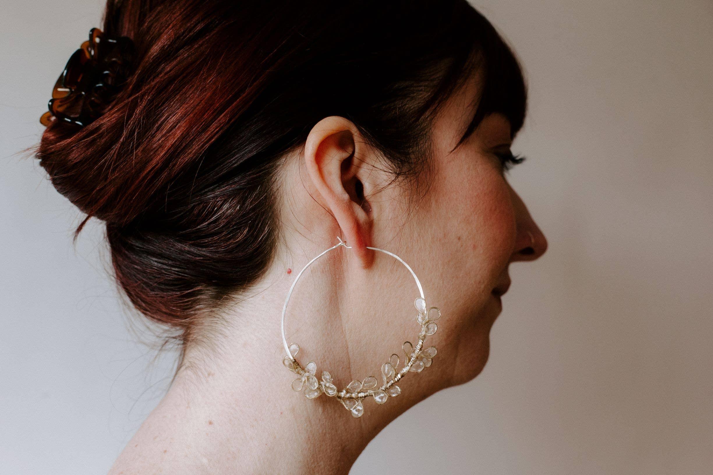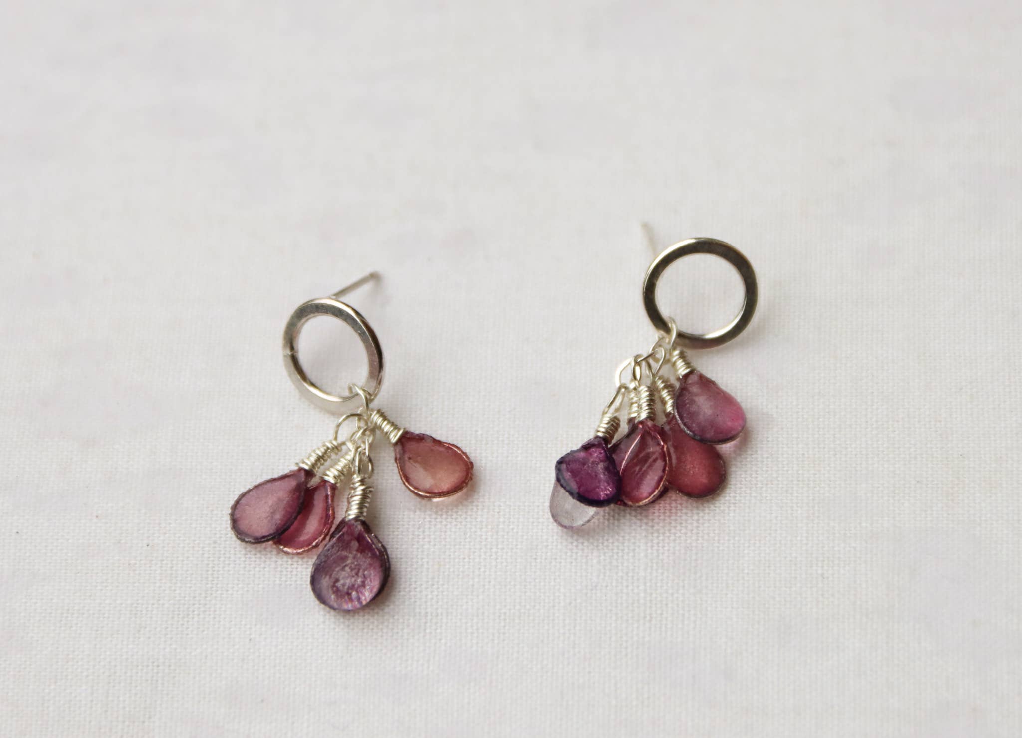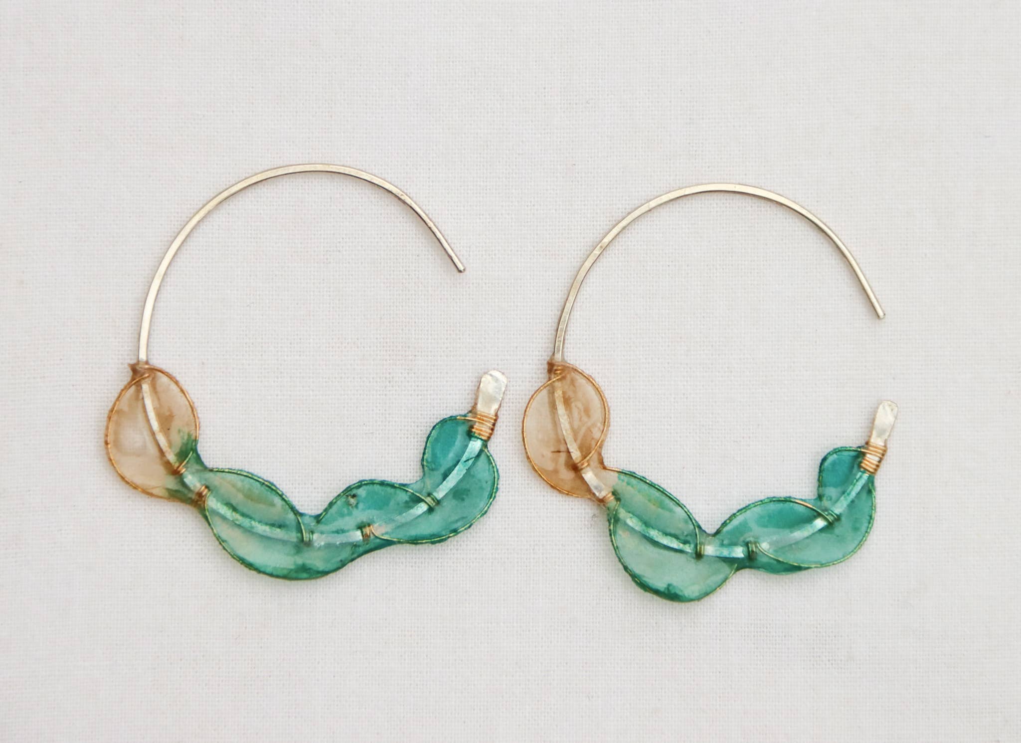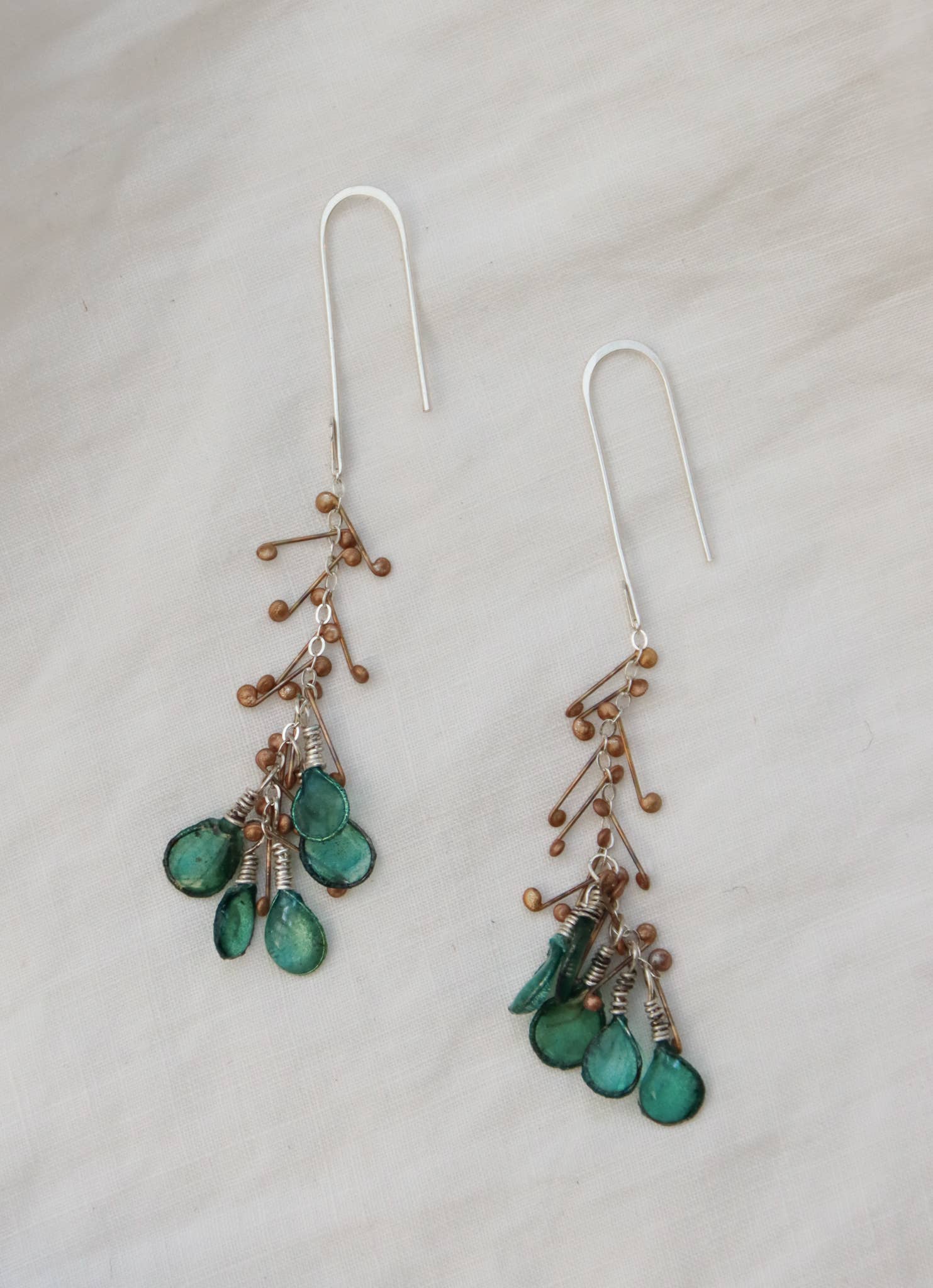Hello, I'm Melanie Brauner! I'm a metalsmith, papermaker, and artist. I make my jewelry from metal forms cast in handmade paper. The metal is dipped into a pulp of water and finely beaten paper fibers from a plant called abaca. The fibers cling to the metal and shrink as they dry. A tight, translucent paper skin is built up on the form over successive dips. The concept is the same as making a sheet of handmade paper, but around a three-dimensional form, and by building up thin layers over the course of several days. After a translucent layer of paper has built up, the forms are hand-dyed, and finally sealed with resin to make them waterproof and durable. The pieces are inspired by the beautiful oceans and forests and mountains and wetlands of the Pacific Northwest... tide pools, seeds, flowers, raindrops, birds, the curves of a river, ferns, leaves..... My papermaking and metals studios are in Everett, Washington, tucked at the back of the garden of my 1928 storybook cottage, where I live with my bagpipe teacher husband, Kevin, and big orange cat named Higgins. I play traditional music on the fiddle and piano. I spend lots of time roaming through the beautiful Pacific Northwest landscape gathering inspiration for my jewelry.