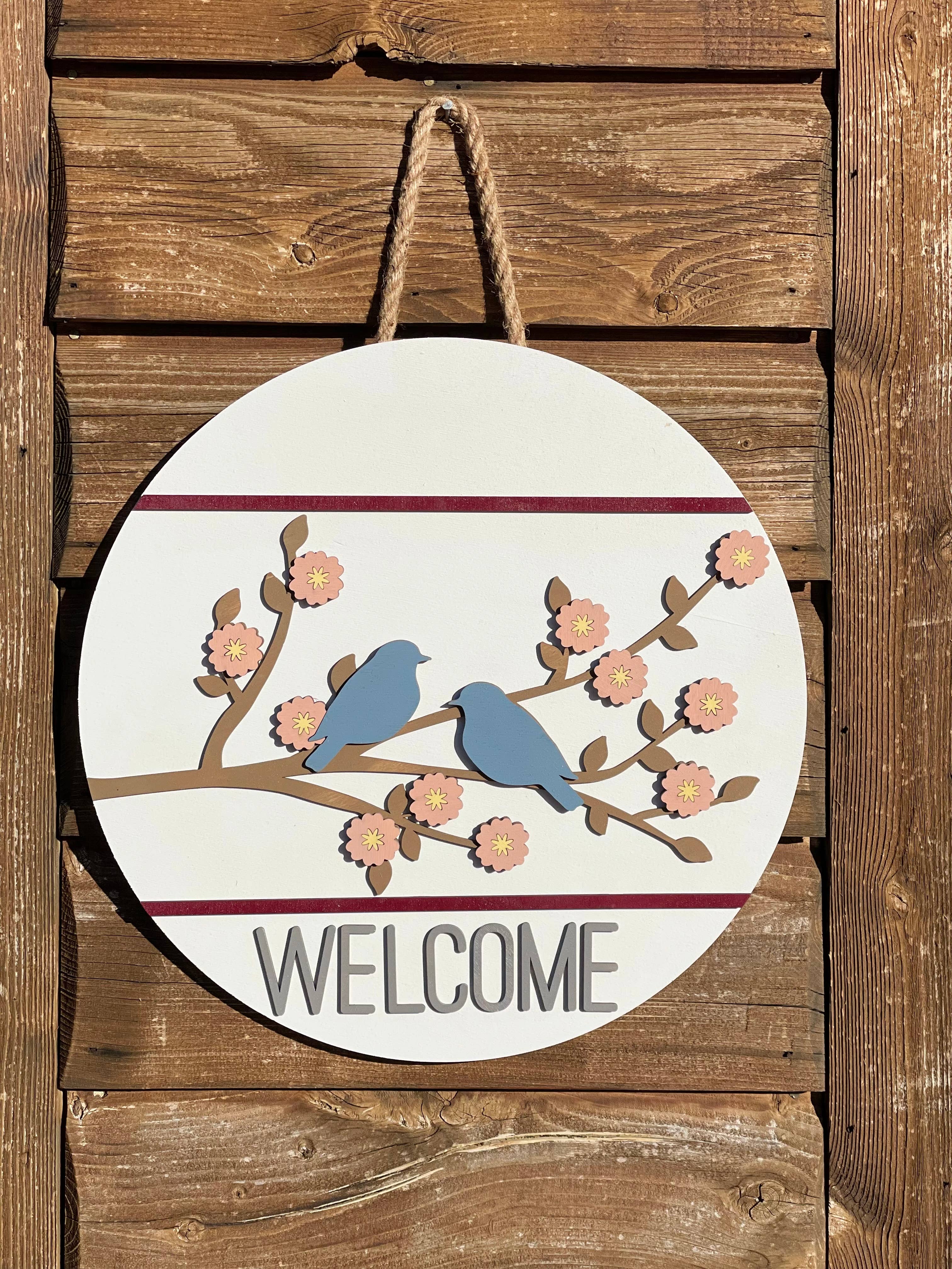 Emily, the creator behind Mama E's Makery has always been a creator, but after a birthday present was given and shared on Facebook, a business was born. We have enjoyed growing our small business and always love the challenge of growing more. Custom orders are Emily's favorite pieces to make. Emily's husband cuts, sands, and paints all of the circles. She then adds the finishing touches of the vinyl sayings, bows and greenery. All pieces are hand selected and added to each door hanger before being packed up and sent to YOU!
