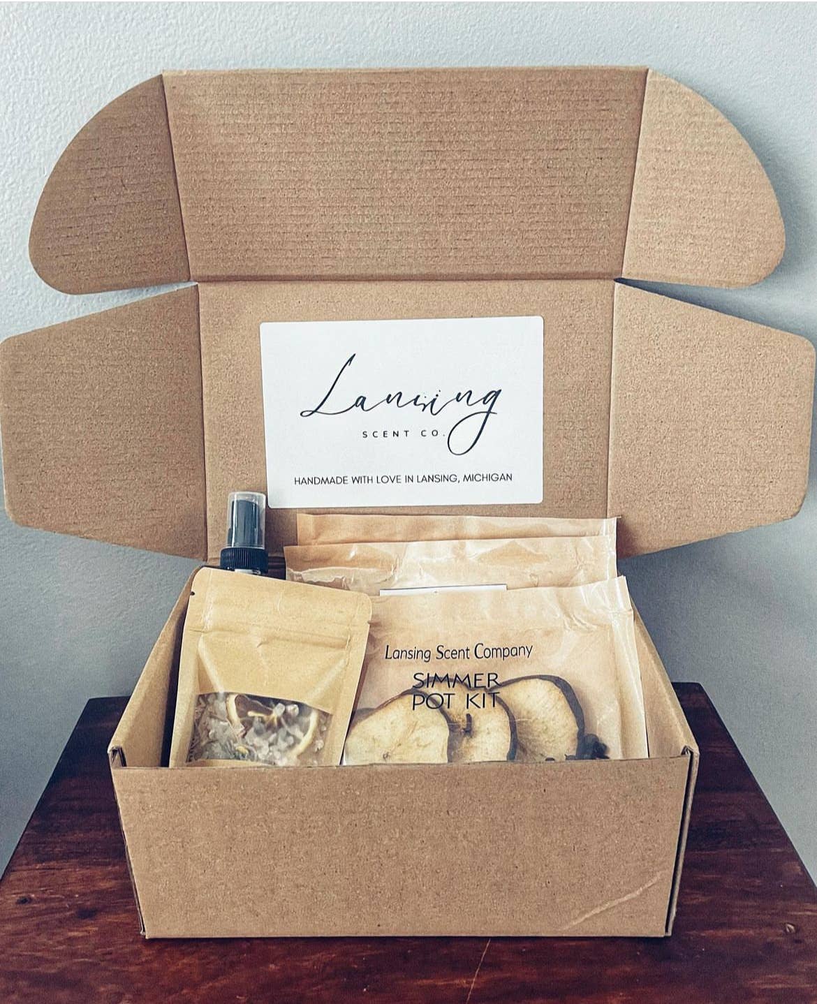 Lansing Scent Company is an all natural scent brand based out of Lansing, Michigan, specializing in unique scented simmer pot packs! Simmer pot packs, or stove top potpourri, make excellent additions to gift baskets or a stand alone gift! Lansing Scent Co. is run by one woman, Allie, who is a teacher, mother & wife. All items are hand packaged and all ingredients are dehydrated in house.
