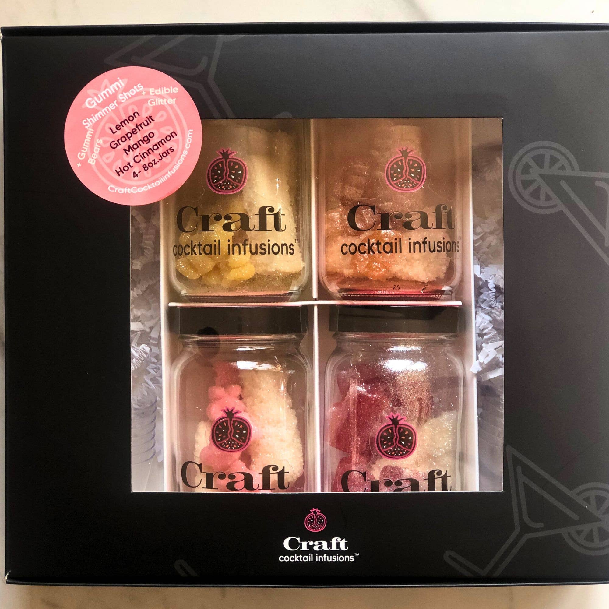 *NEW one FREE Sample Infusion Packet for Store Tasting Event* Find out why celebrities & luxury event planners use us and how our FLAVORS & CREATIVITY set us apart! Welcome to Craft Cocktail infusions! We want to take your Parties and gift giving to another level. Our artisan flavors enhance alcohol, wine or water. Using herbs, fruits, flavored sugars and candies to create amazing cocktails. We are passionate about finding fun ways to bring people together. The infusions become a fun “activity” to share with friends by having tastings with the infusions. From the “melting” of the ingredients to the shimmer of the edible glitter in our Gummi Shimmer Shots, our infusions become the star of the party!