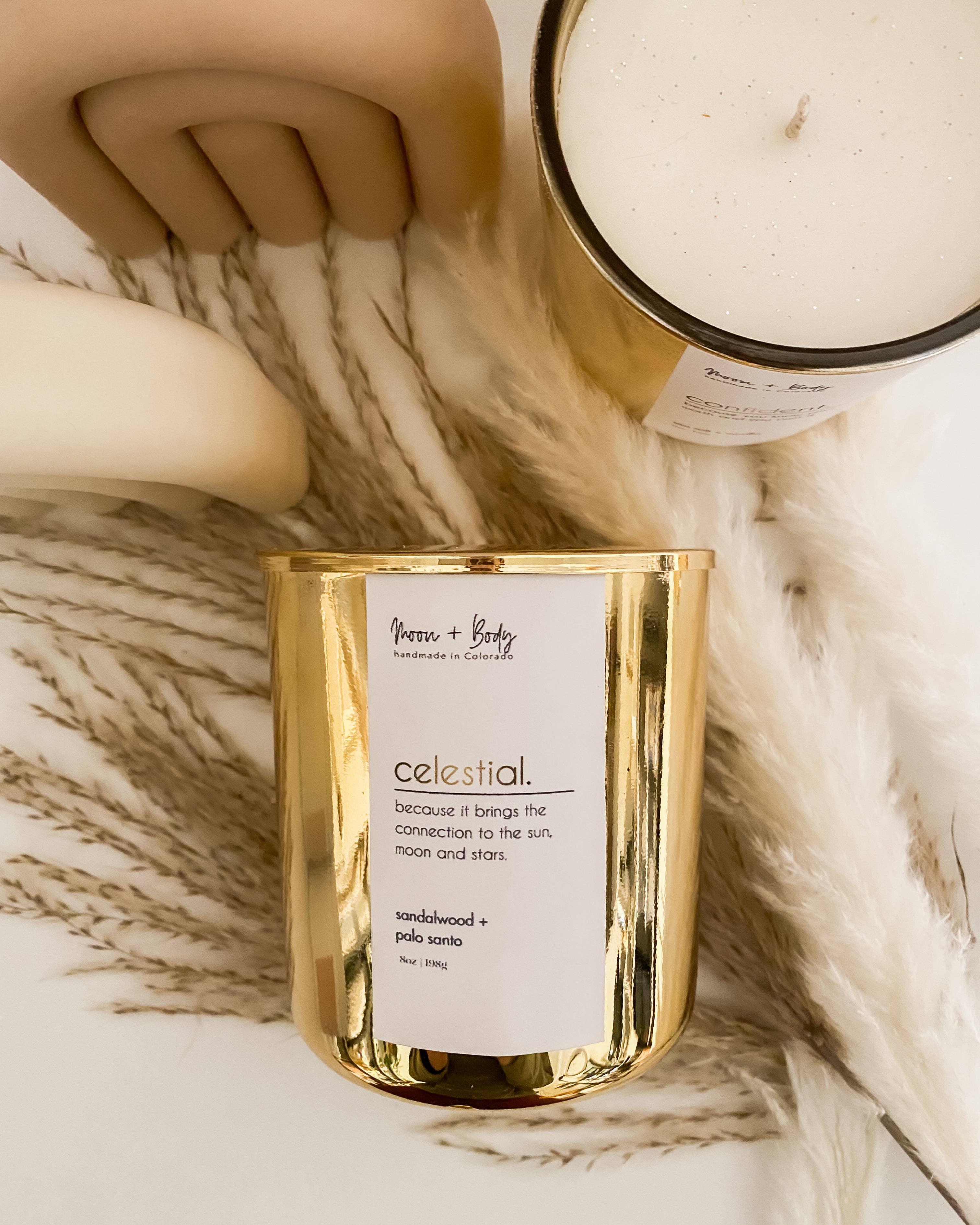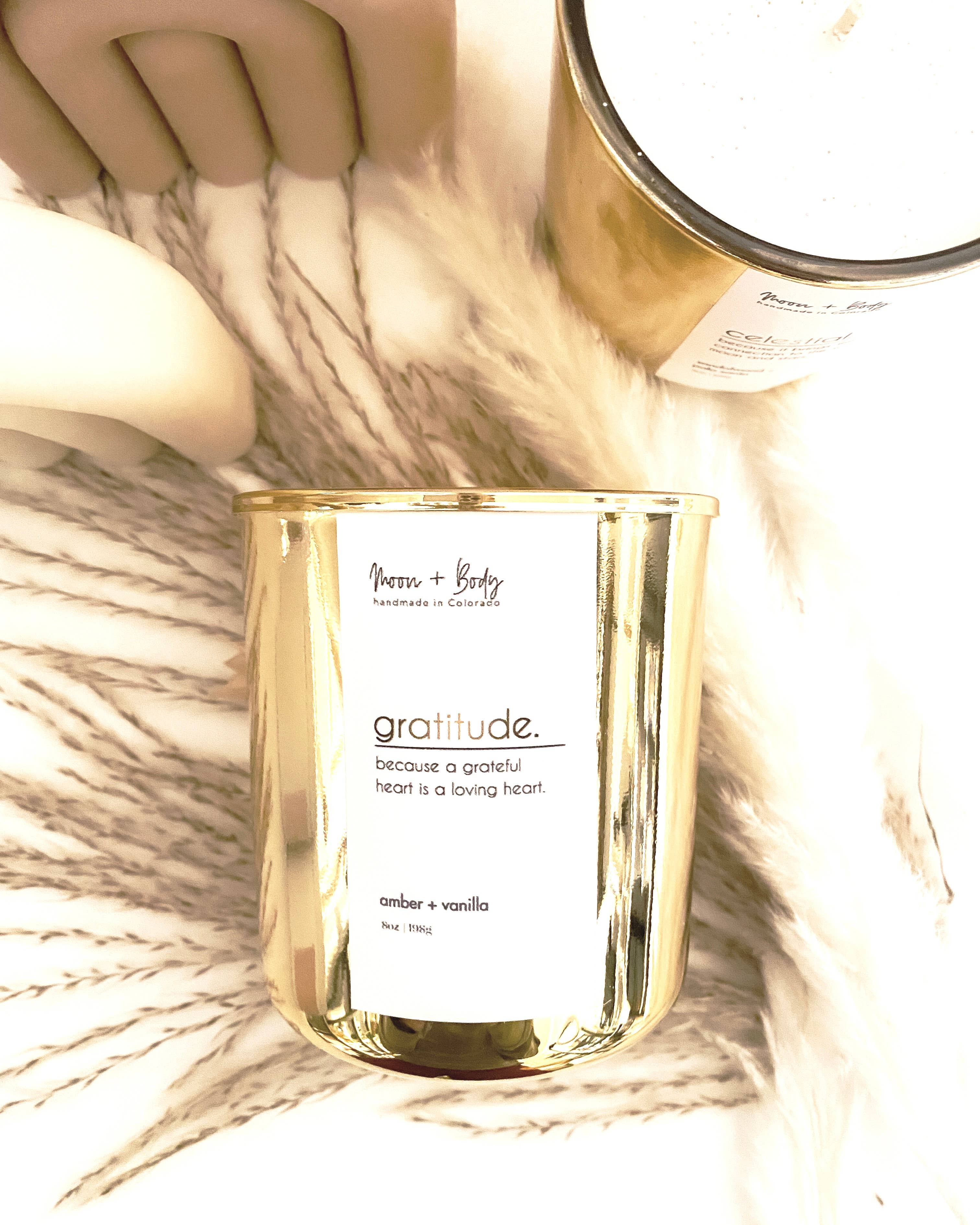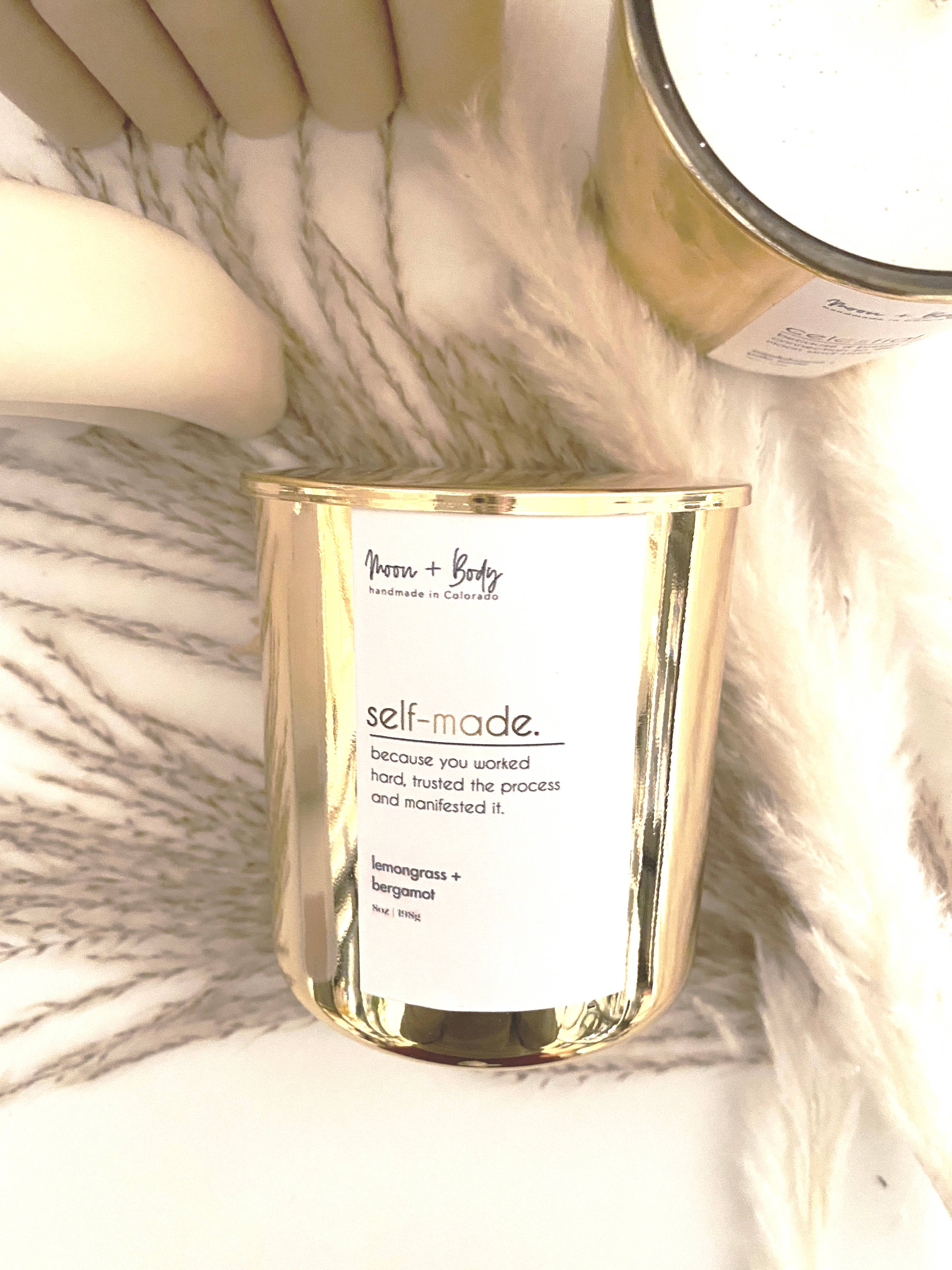 Moon + Body is a woman owned company that started with a small collection of affirmation candles and quickly developed into natural skincare, body care and handmade soaps. The objective was to create products that were free of chemicals, to avoid skin damaging effects and replace them with skin loving ingredients, such as Argan, Rosehip, and Jojoba oils, just to name a few. All products are created by hand and ingredients are ethically sourced for your self-care needs. It's important to Moon + Body to provide women and men with the experience of using clean products that perform well and are actually good for your skin, while being budget conscious. Scents are custom blended to design a distinct personality for each product and to create a pleasant and nostalgic experience for our customers. Moon + Body takes pride in the sustainability of our all natural soy candles and body care. We use100% soy wax derived from American-grown soy beans to remain eco-friendly, as well as phthalate-free and paraben-free fragrance oils to keep our brand clean and natural. But most importantly, we love animals, so we will never test on them, only humans.