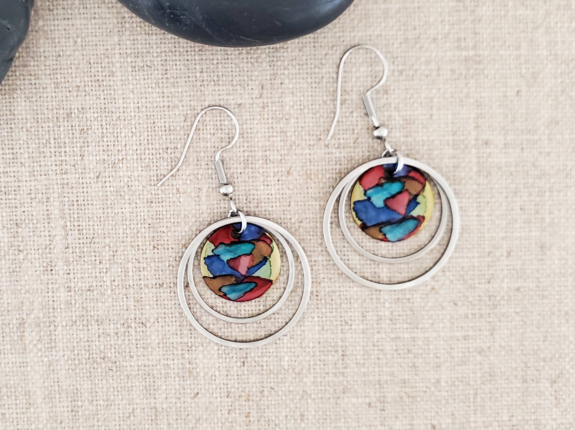 Here at Covaly Artisan Jewelry, we have been creating handcrafted jewelry in North Carolina since 2008. We focus on copper jewelry that we hand cut and finish in three different ways. We "flame paint" the copper with a torch, emboss the copper and combine it with a natural patina process to create a relief, and hand paint colorful designs using alcohol ink. We also create jewelry using antiqued brass and semi-precious stones. All copper pieces are sealed to preserve their finishes. We use stainless steel for all our findings, chains, and ear wires which are hypo-allergenic and maintenance-free. We enjoy employing texture, clean lines, and color when create our jewelry. Combining these various elements with natural materials gives our pieces their unique look. We strive to create fun, timeless, affordable and functional art pieces that are wearable.
