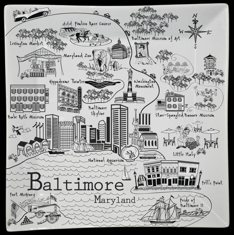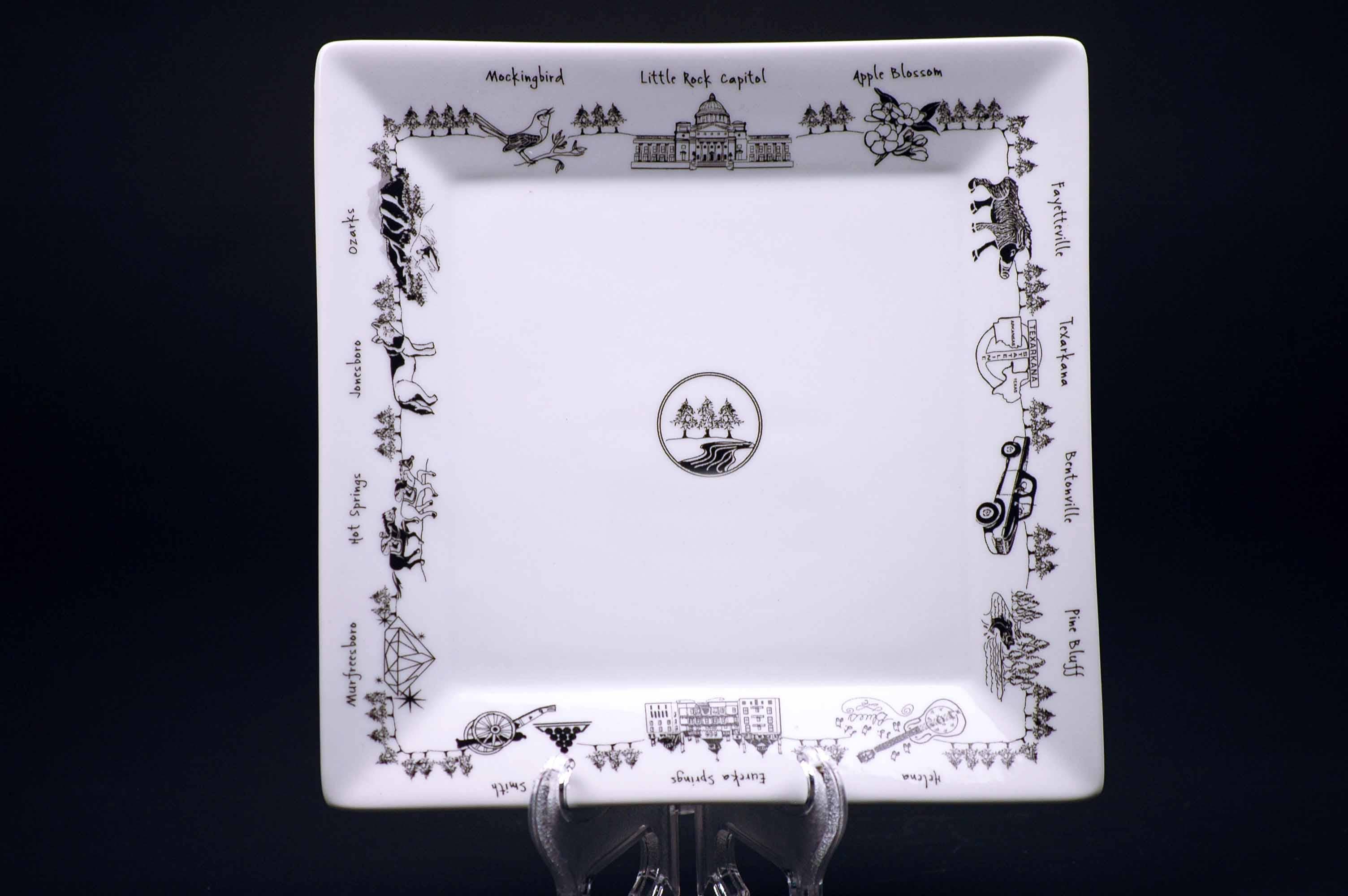 The Dish brings a perfect balance of beauty and whimsy to your table. Whether you want to celebrate your hometown, cheer on your favorite team, or support your local teacher The Dish has a collection for you. Great gifts for a new neighbor, retirement, moving away gift or just because as well. Featuring signature black illustrations on white china, our designs are instantly recognizable and as attractive as they are functional. The Dish works with select artists and designers to create exclusive pieces that celebrate the landmarks and events that make each place we feature special. Designed and Decorated in the USA.