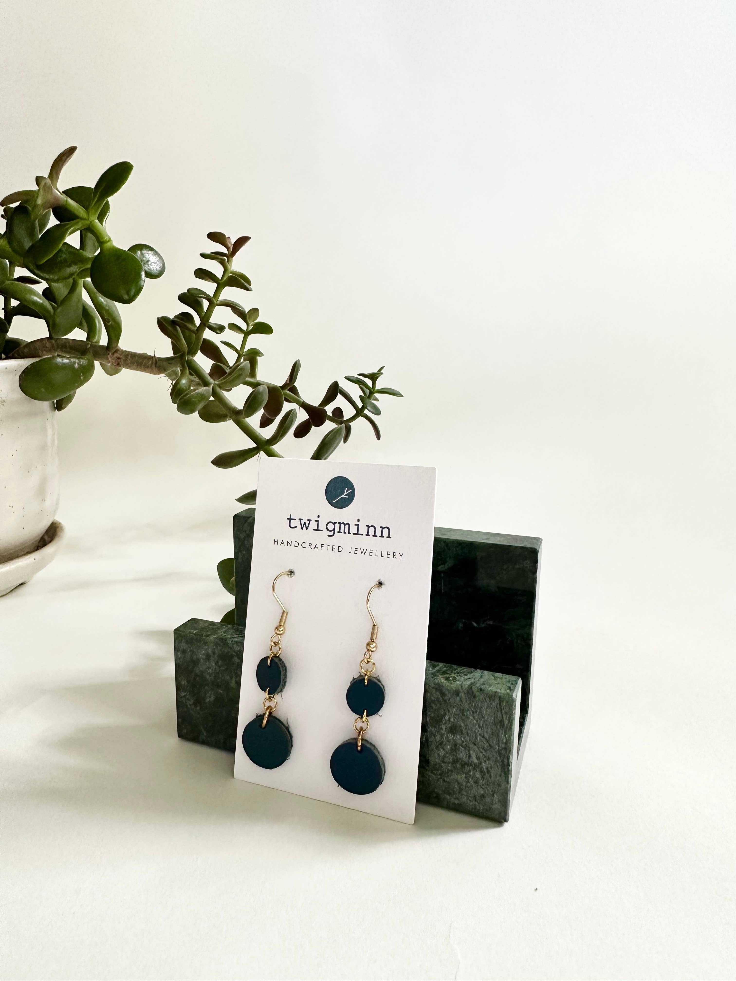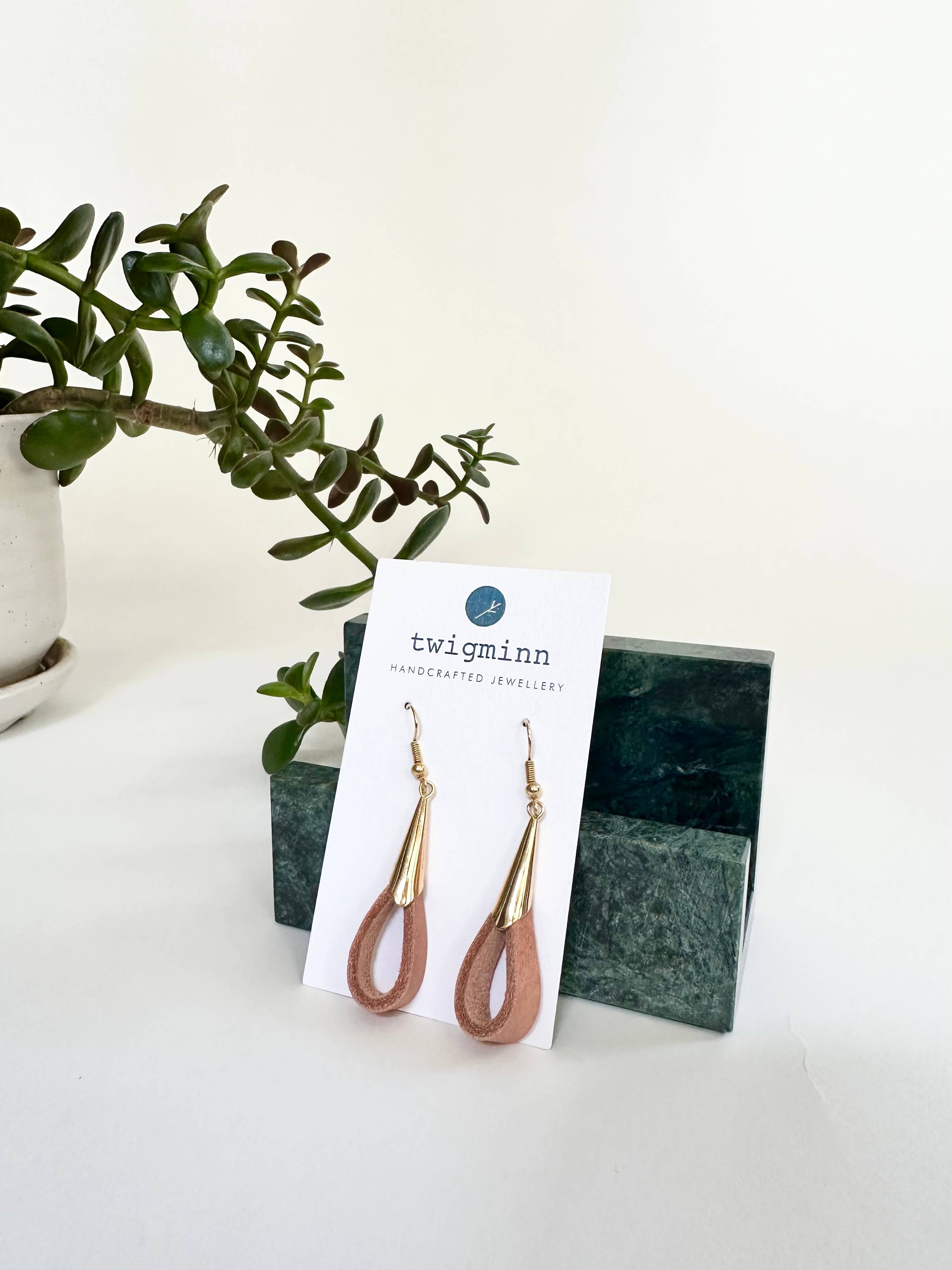 twigminn celebrates high quality leather and minimalist design. Our handmade approach allows us the flexibility to work with deadstock and remnant leather to give this beautiful, natural material a second chance to become unique and treasured jewelry for you.