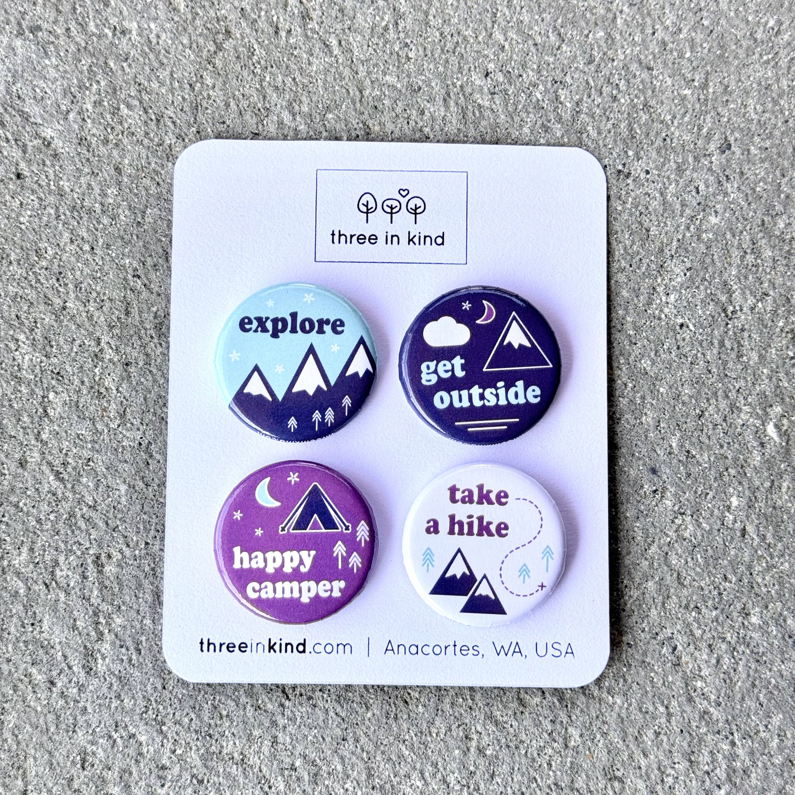 Original designs inspired by adventure, wonder, and all things PNW. The full lineup at Three in Kind includes art prints, stickers, button pins, stationary, home décor, and accessories. New designs and products are always in the works, so check back often to see what's new! Helen, the owner, dreamer, and artist behind Three in Kind, is a former US Navy jet pilot, current adventurer, and forever dreamer. She is the founder and former owner of the wildly successful children's brand, CAVU Creations. Now she's onto new adventures, and you're going to love what she's bringing to this new endeavor. You and your customers will love her designs! The name "Three in Kind" is a play on the phrase "two of a kind." It's an homage to Helen's three amazing, sweet, and incredibly kind kids.