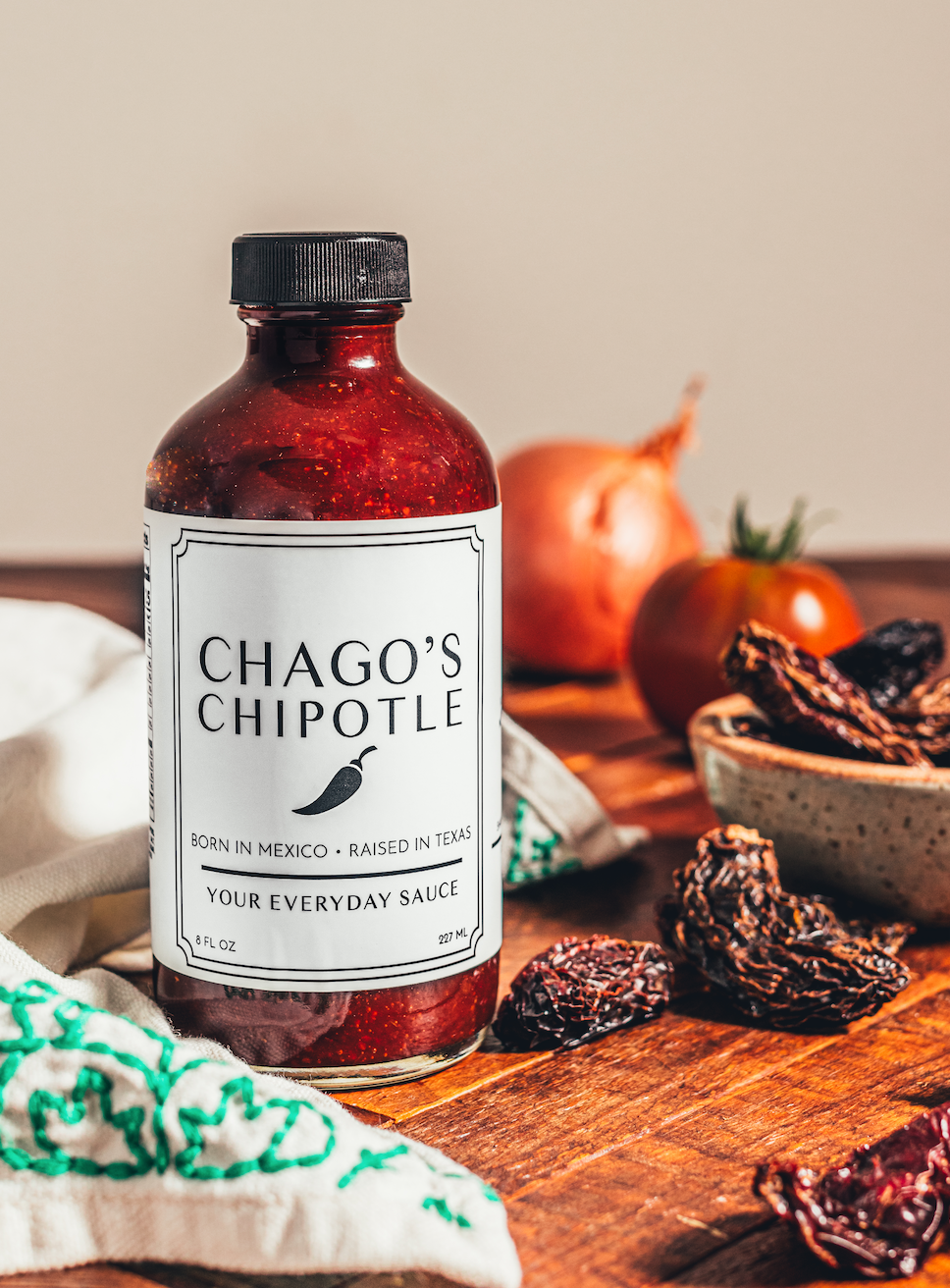 Chago's Chipotle is your everyday spicy, sweet, and smokey sauce. It is perfect as a condiment, dip, or marinade on eggs, meat, fish, chicken, tacos, pizza, veggies, and more! The recipe comes from our family in Mexico and has been enjoyed by our family for the last 40 years. We hope to bring that delicious taste to families everywhere.