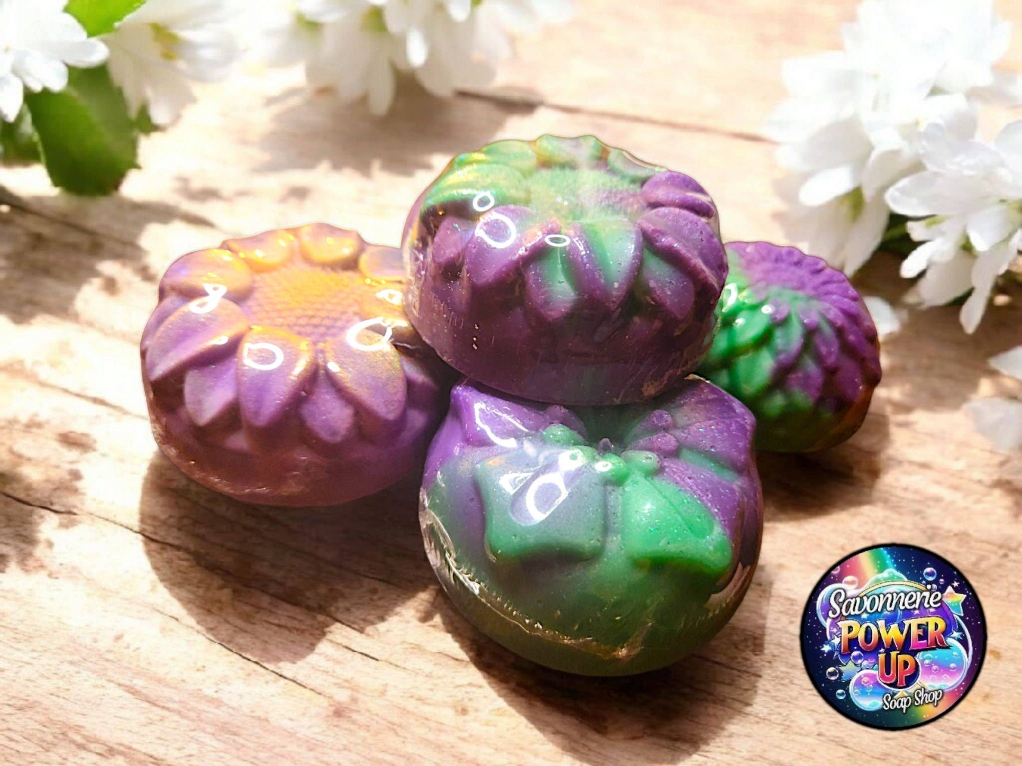 Welcome to the sparkling universe of Power Up & Co. where each soap is a little explosion of happiness! We are proud to create handcrafted soaps and playful earrings that put a smile on your face and a dance in your step. Our philosophy is simple: why settle for ordinary when you can have magic? Each soap is lovingly made from natural ingredients. Forget chemicals and sad bubbles! Here, we concoct recipes that nourish the skin while awakening the senses. The scents are so irresistible that you might wish your shower would last forever! And our designs are as wacky as our imagination allows. Bright colors that would make a rainbow blush, unexpected shapes that make you smile... our soaps give a boost to your bathroom. As for our earrings, they are just as fun: geeky, sparkling, and unique, perfect for adding a touch of whimsy to your daily style. Join the bubble fiesta and turn bath time into a moment of pure pleasure! With Power Up & Co., routine becomes magical. And thanks to our earrings, this colorful joy accompanies you everywhere, all day long. Create foamy memories, shine with your accessories, and make every moment enchanting! So, ready to fill up on good vibes? Power Up & Co. awaits you with its sparkling bubbles.