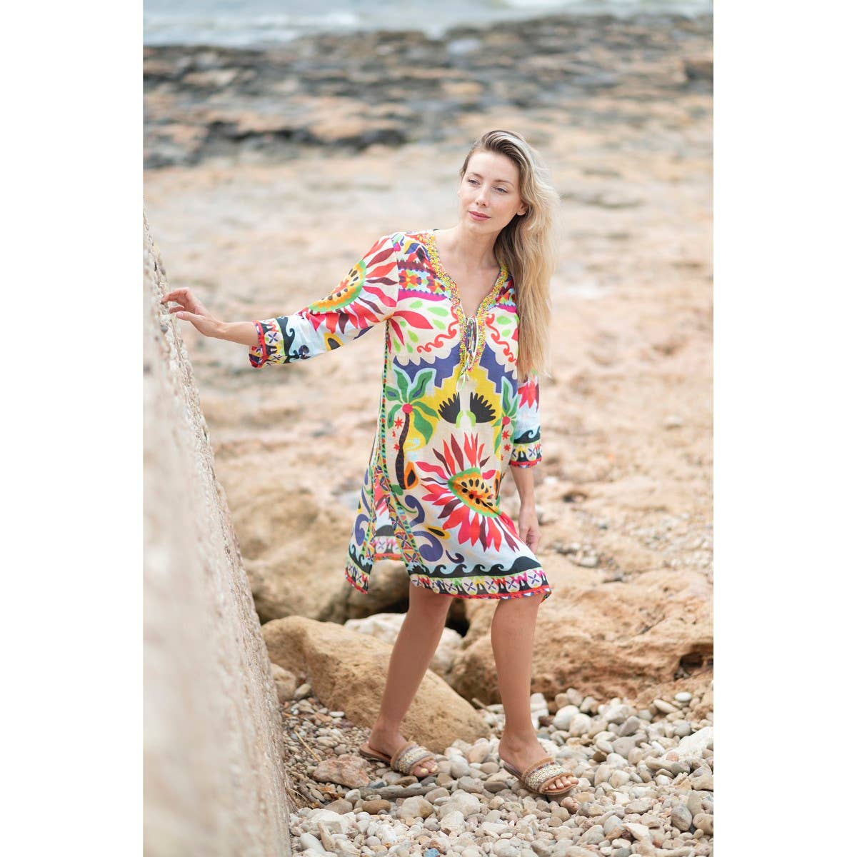For more than 50 years dedicated to the import and distribution of decoration, gift, and souvenir items, combined with our restless nature that drives us to seek what types of products can help our clients increase their sales, a few years ago we decided to incorporate a new women's textile line into our catalog: Isla Bonita by Sigris. "Everything started by attending to the requests of our clients. It worked well, and this led us to expand and create a summer clothing collection, which we will expand year after year," says our manager. Entering the fashion market has led us to create a new catalog each season. It is the result of a selection process in which models are chosen to be fresh and easy to wear for women, with soft fabrics and 100% cotton garments, and with a special touch to feel different from the rest. This upcoming spring/summer season brings with it the most diverse looks to shine in all the opportunities that come our way. With reflections of the seventies, eighties, and nineties, the boho style, which fuses vintage style with romanticism, stands out for its light garments, different embroideries, and textures. Let yourself be seduced by the favorite garments of the summer!