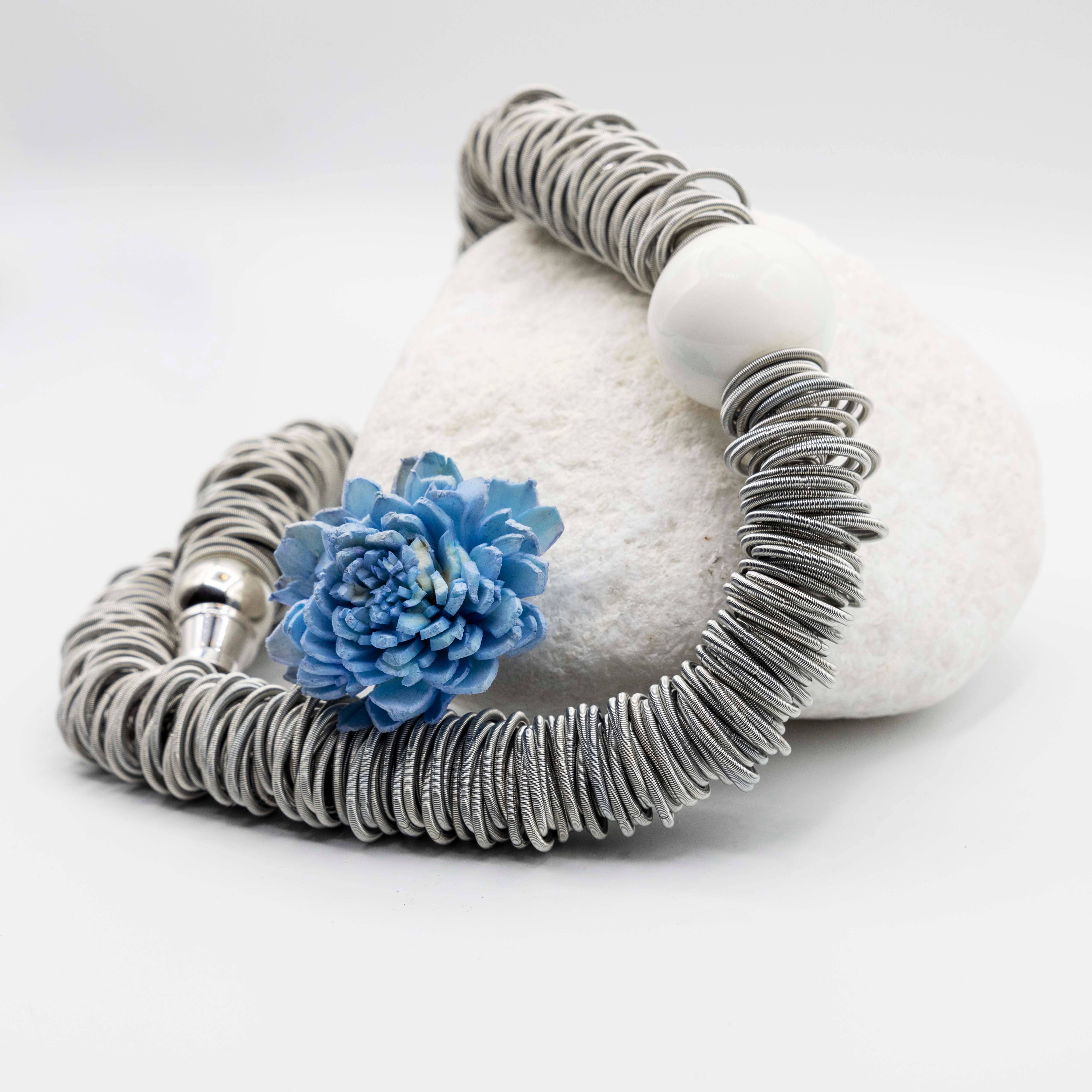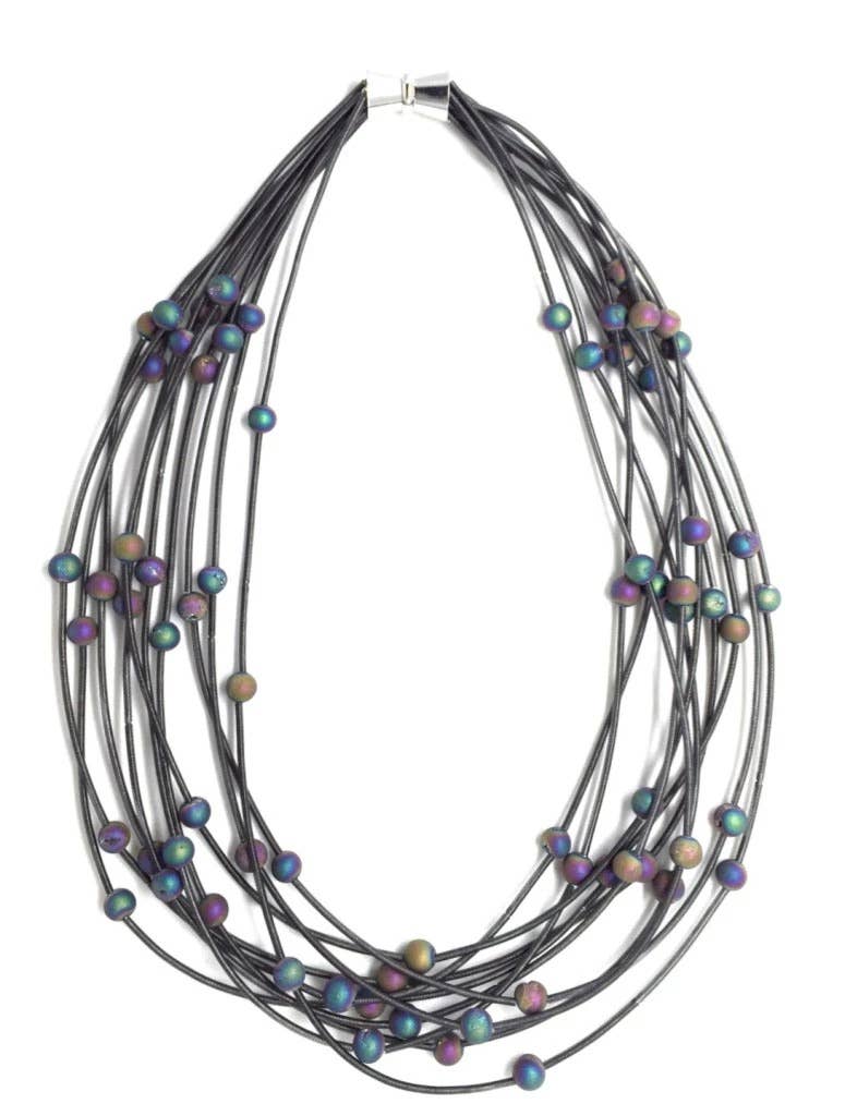 Sea Lily Is proud to sell to boutiques, catalogs, stores , Museums and Symphonies all over the country. All of our jewelry is made by hand. Our mother of pearl is dyed with natural food coloring. Our resin handbags have been wonderful for us too! Our piano wire jewelry for some pieces is infused with silk to make it soft. We also use industrial steel wire for some pieces, along with real geode semi precious stone, porcelain beads, freshwater pearls, lava rock, and other mediums.