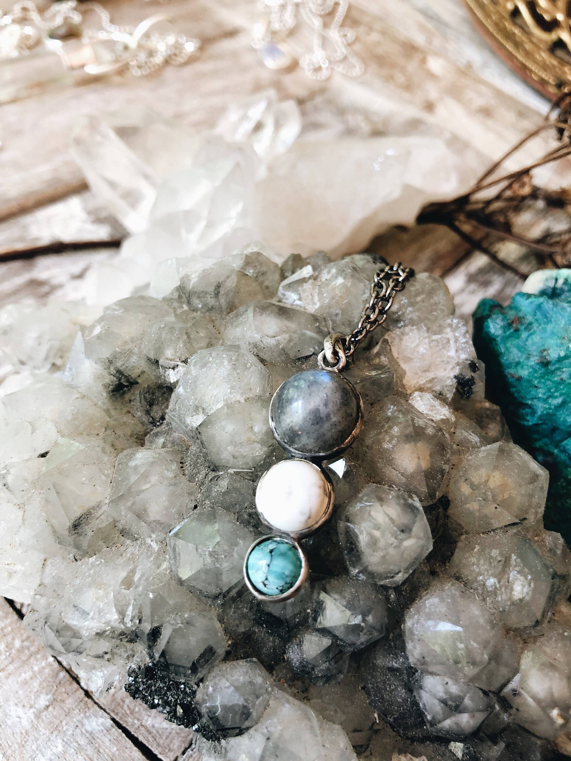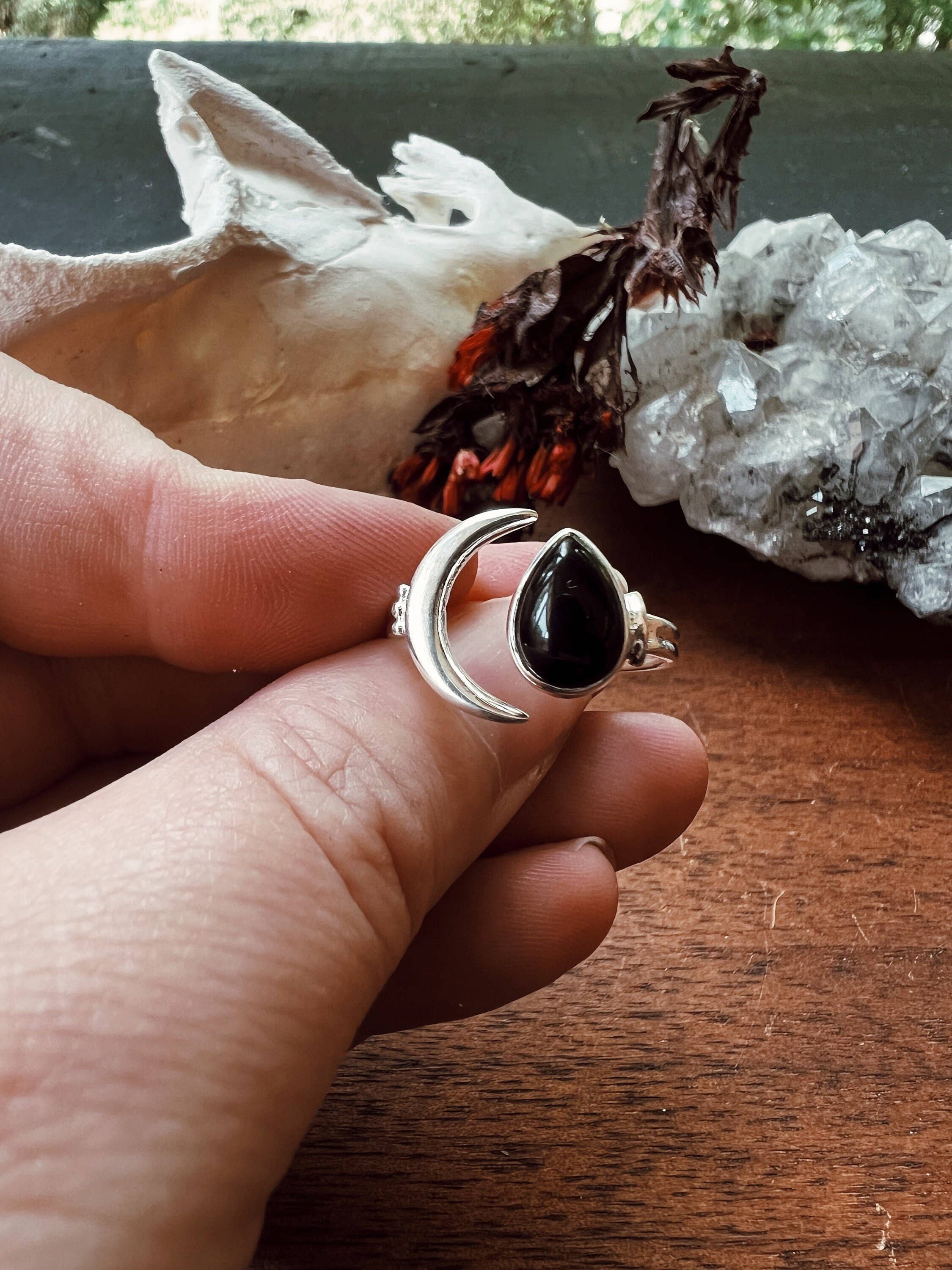 I'm Stevie and I make shiny things, professionally. My shop, Farmhouse Moon, mostly sells silver pieces, and is guided by the principle that you should wear what you love. Things that make me float and often provide inspiration for my creative outlets, jewelry making included, are: a good vintage find, a beautiful photograph, the mountains, thunderstorms, anything haunted, a great live show, decorating my space, tending to a garden, and collaboration with other creative souls. I also love Michigan, where I currently live with my pup Maggie, my two tigers Goose and India, my daughter and my mate.