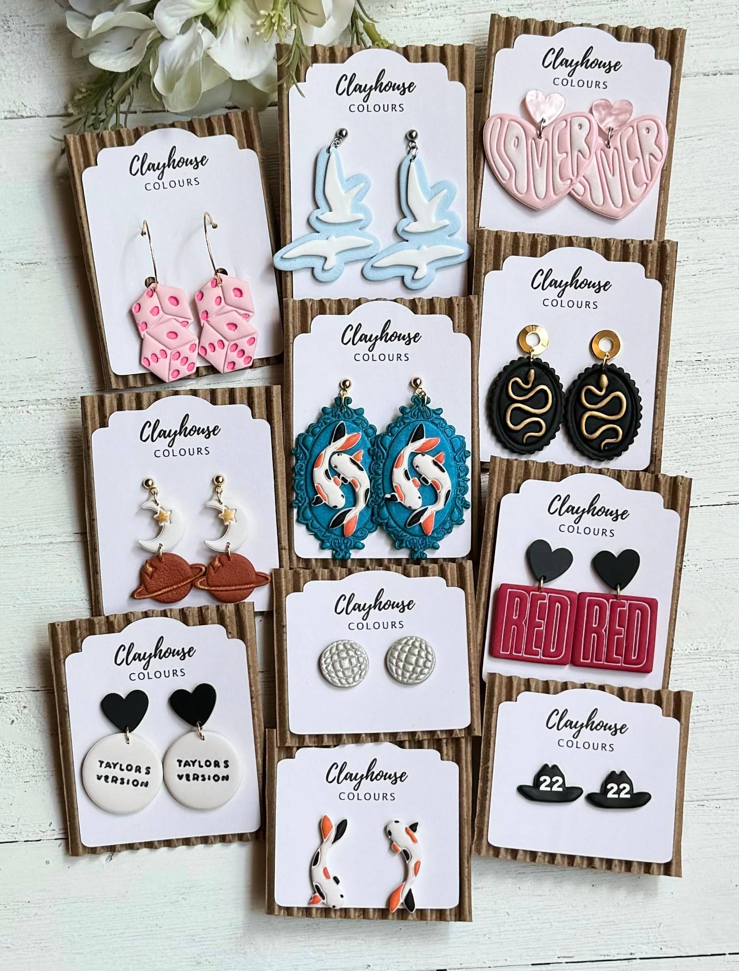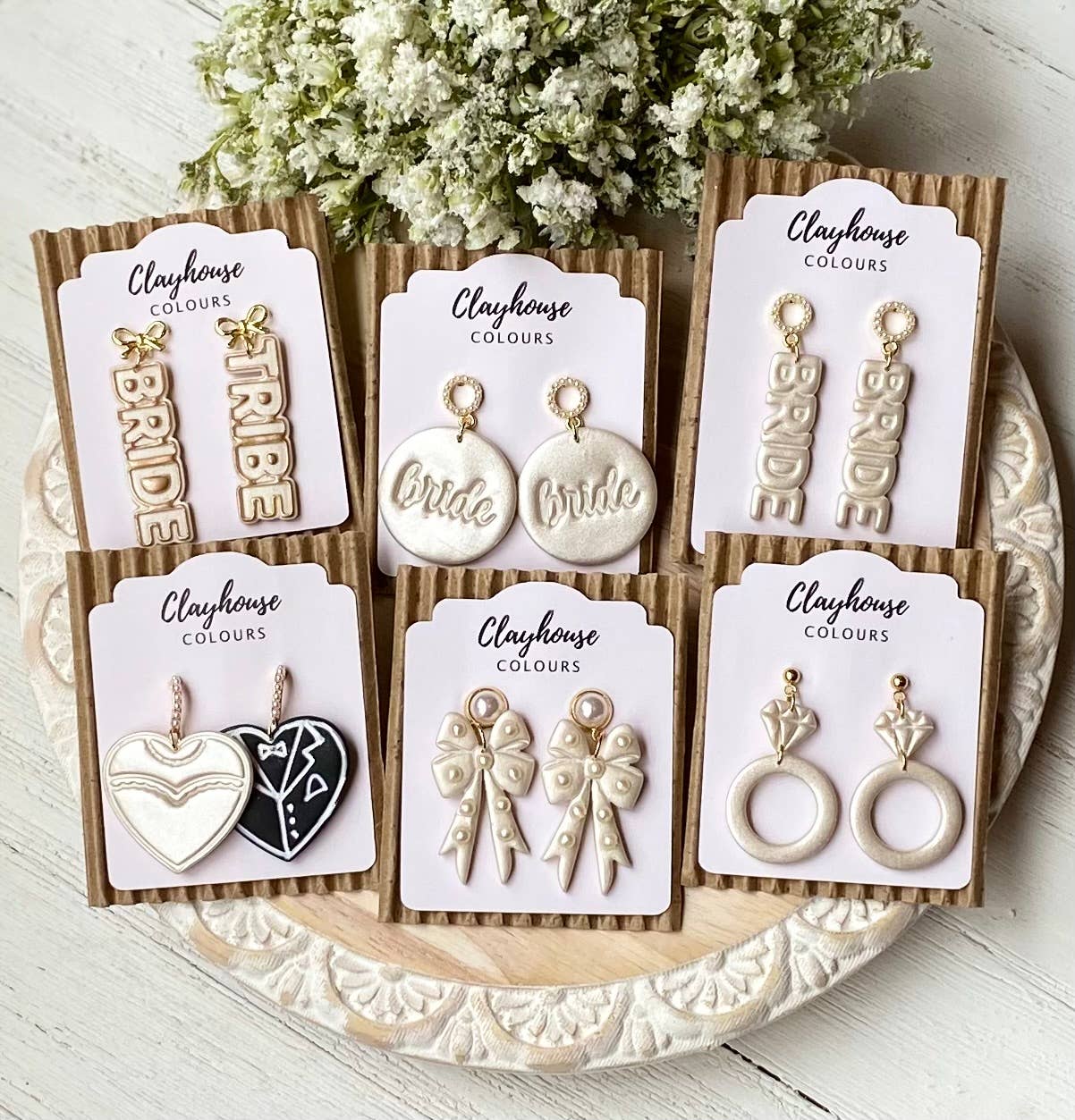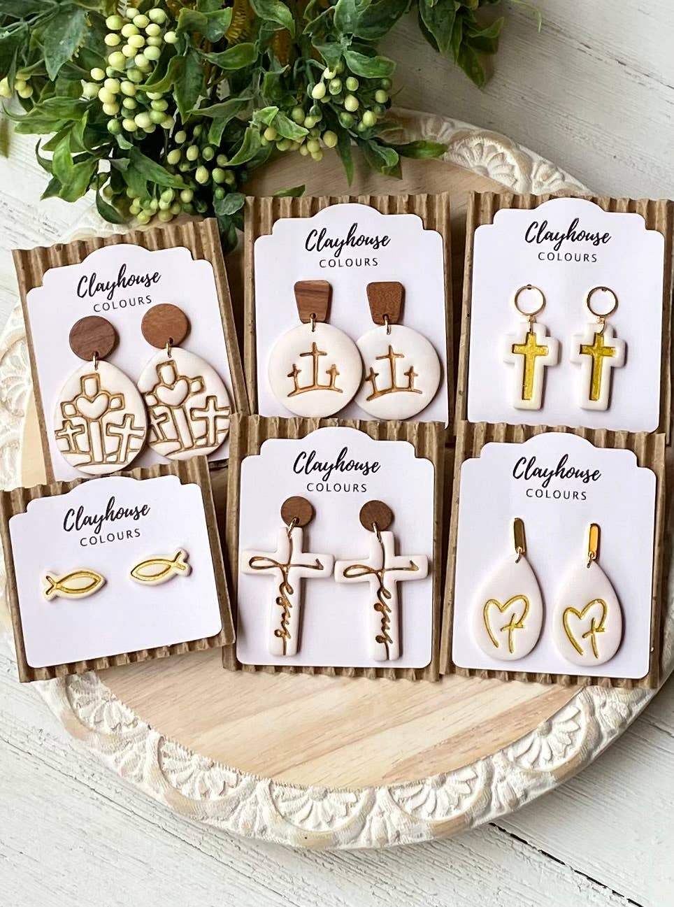 Clayhouse Colours is an eclectic clay jewelry company made for people from all walks of life. Clayhouse Colours creates unique clay statement earrings in small batches. Each piece is designed and slowmade by Kellie Woodard, with the core value of accessible, high quality craftsmanship in every design. Kellie’s inspiration comes from modern architectural shapes and textures as well as the natural color palettes. Each piece is designed, mixed, sculpted, baked, sanded, and packaged by hand with the utmost love and thought. All jewelry is created by Kellie in Lumberton, Texas. Clayhouse Colours creates unique clay statement earrings in small batches. All earrings are handmade with durable high quality polymer clay.