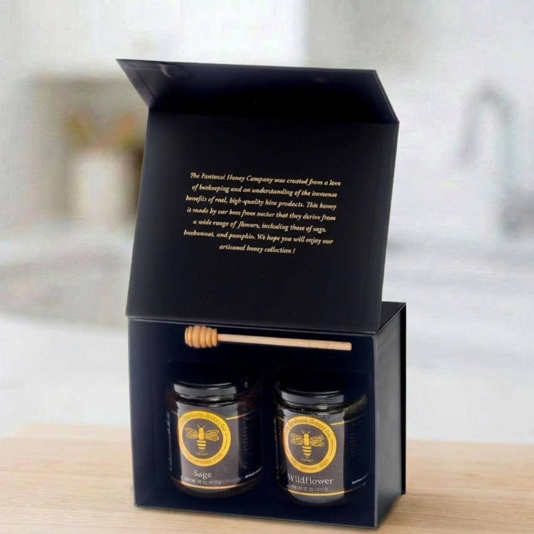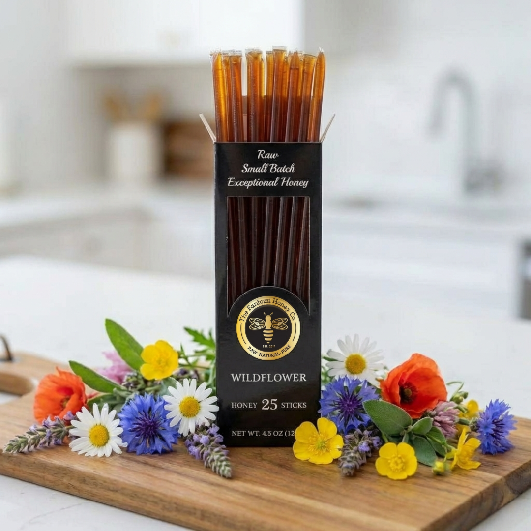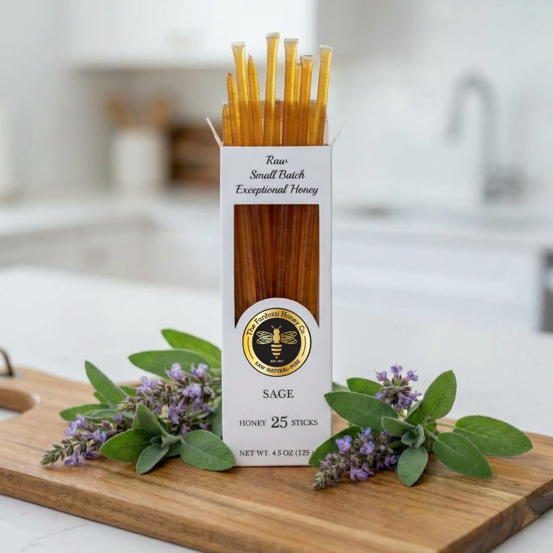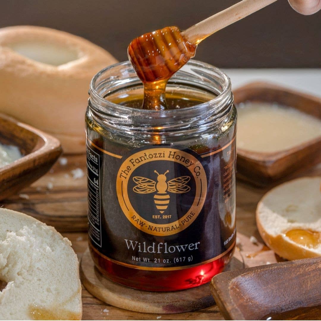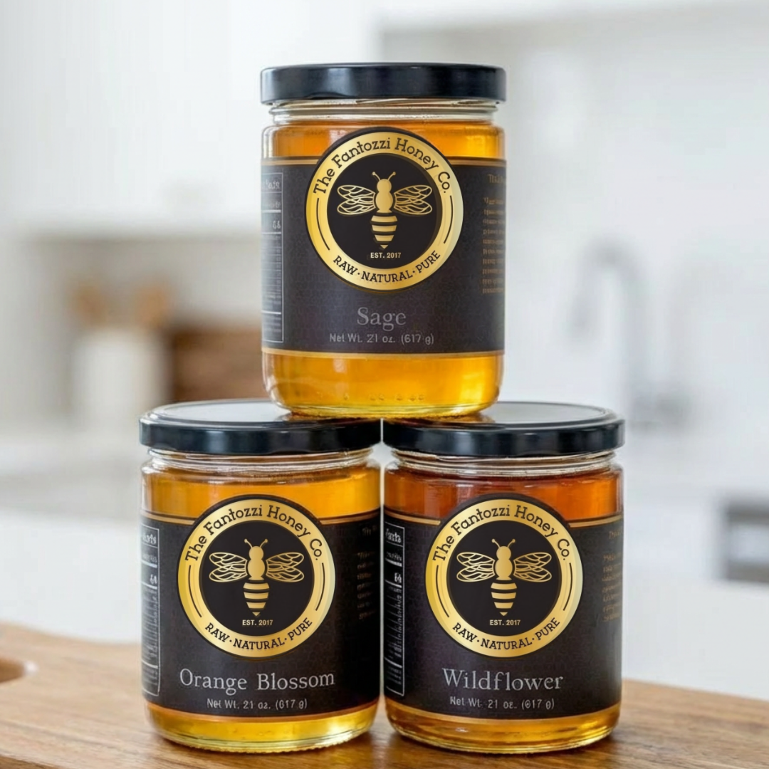 Fantozzi Honey Co. was founded by Thomas Fantozzi in 2017 after taking a beekeeping class at Cal Poly, San Luis Obispo. Growing up on his family farm in Patterson, California, Thomas was always surrounded by bees and understood the essential role they play in pollinating the crops that feed communities across the Central Valley. What began with just two hives has grown into a thriving apiary of over 100 colonies, each contributing to the rich biodiversity of California's agricultural heartland. Today, Fantozzi Honey Co. produces pure, raw wildflower, sage, and orange blossom honey—each variety capturing the unique floral character of the region's seasons. Every jar is crafted in small batches to preserve the natural enzymes, nutrients, and flavors that make raw honey so special. Beyond gourmet honey jars and convenient squeeze bottles, the farm also creates artisan honey sticks and nutrient-rich bee pollen, ideal for energy-conscious customers and specialty food retailers. The apiary plays an active role in supporting local agriculture, pollinating almonds, pumpkins, melons, and other crops that depend on healthy bee populations. Whether it's wildflower honey for your customer's morning tea, a honeycomb gift set for the holidays, or a wholesale order for your farm shop, every product from Fantozzi Honey Co. reflects a genuine love of beekeeping and an unwavering commitment to quality. Raw, natural, and honey sweet—straight from Central Valley hives to tables everywhere