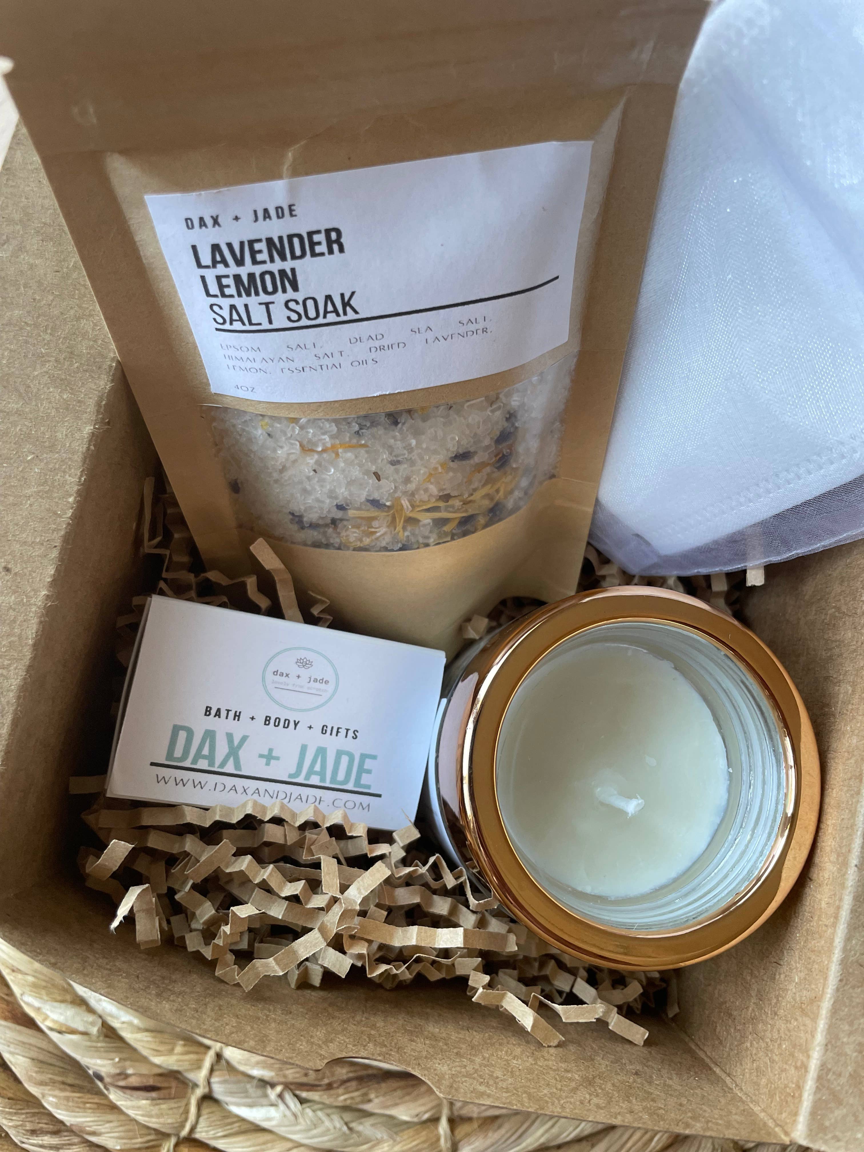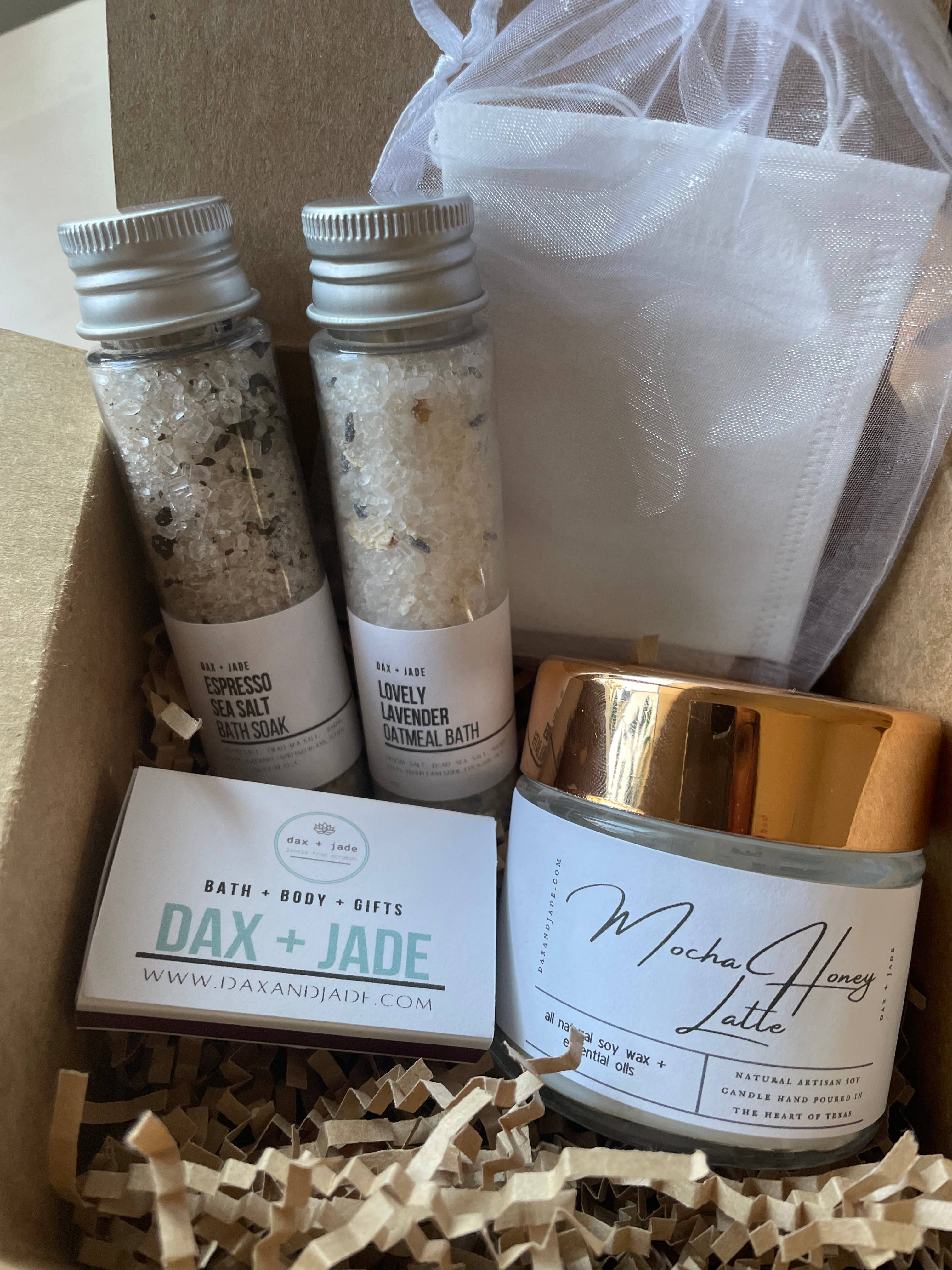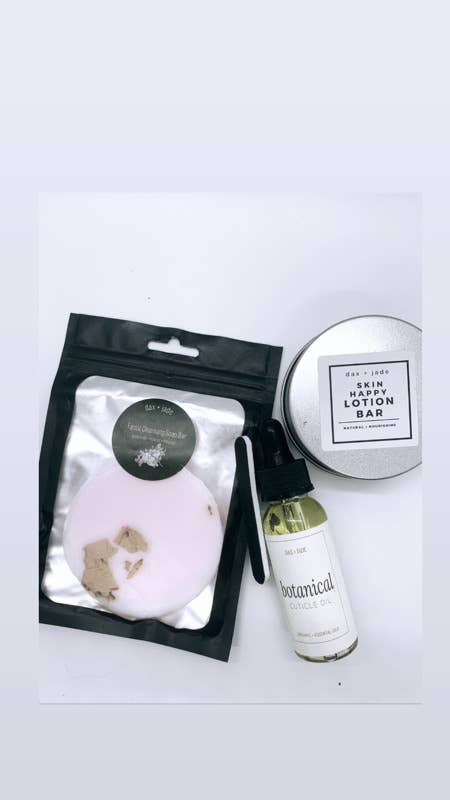 Welcome to dax + jade. Our line of products are made with only the highest quality all natural ingredients. Every item is crafted by hand from start to finish. From our products to our packaging. dax + jade takes pride in the quality, personalization, and uniqueness of our products. We strive to provide products that pamper the body and bring joy to the heart. All products can be customized and are made to order. Thank you for visiting dax + jade! Amy Stewart