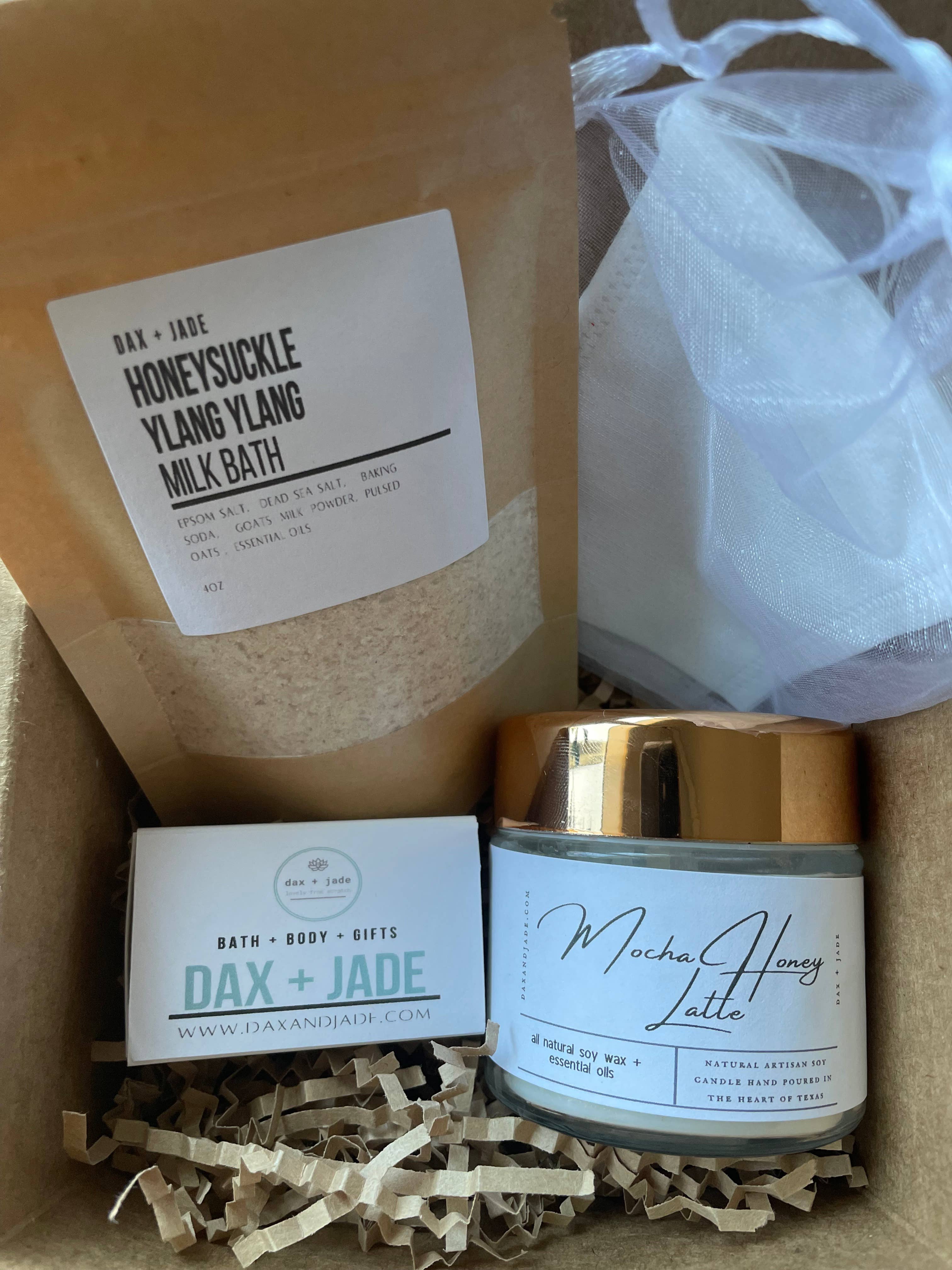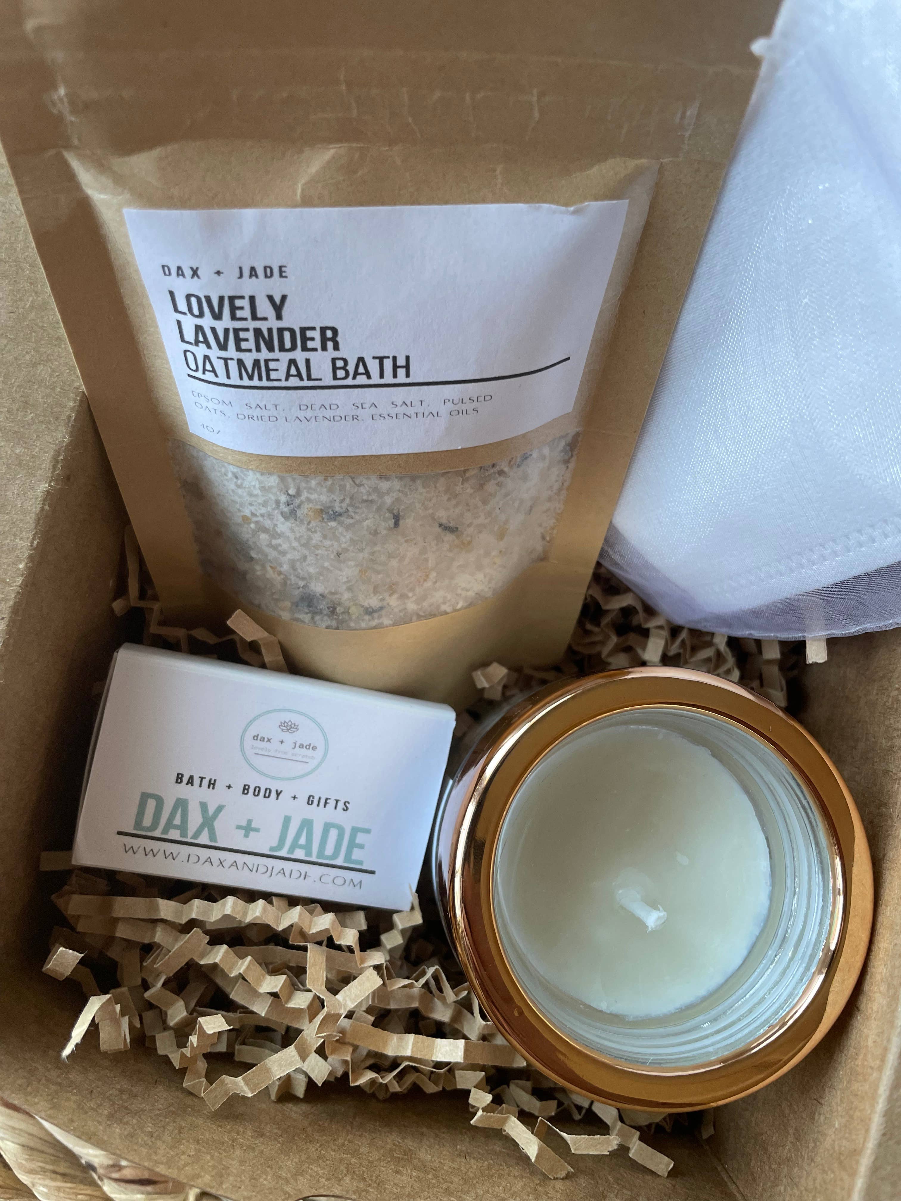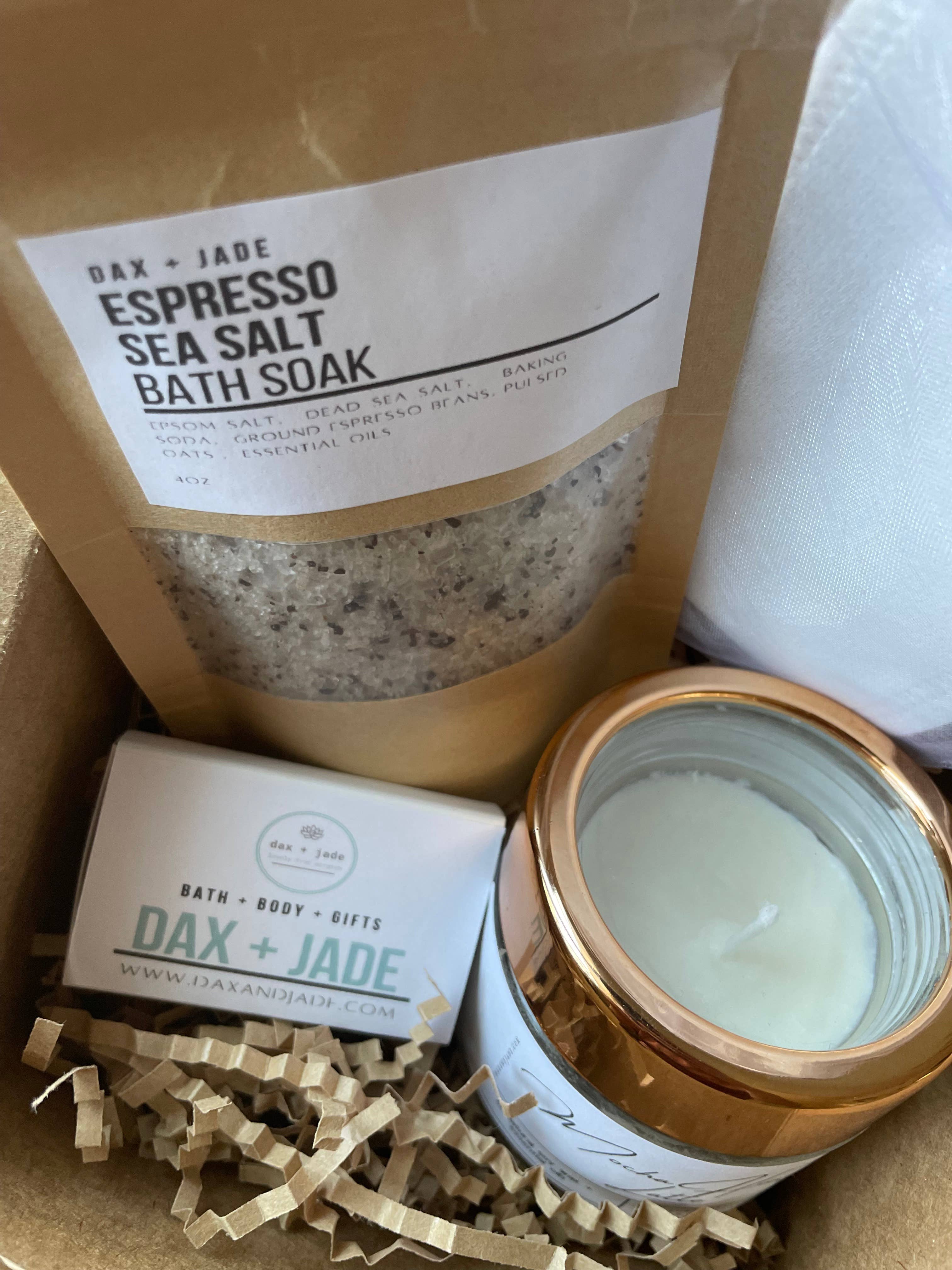 Welcome to dax + jade. Our line of products are made with only the highest quality all natural ingredients. Every item is crafted by hand from start to finish. From our products to our packaging. dax + jade takes pride in the quality, personalization, and uniqueness of our products. We strive to provide products that pamper the body and bring joy to the heart. All products can be customized and are made to order. Thank you for visiting dax + jade! Amy Stewart