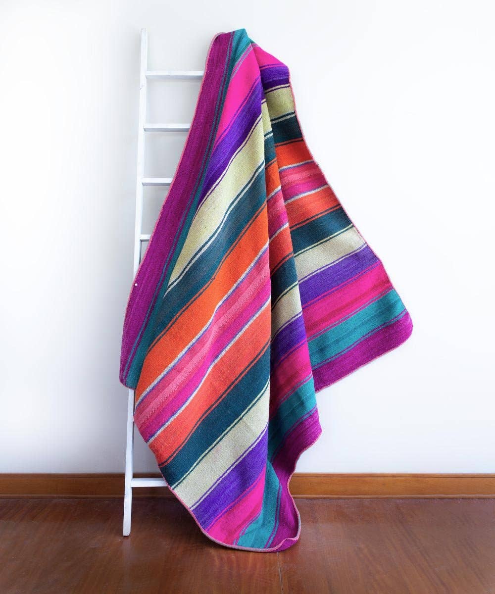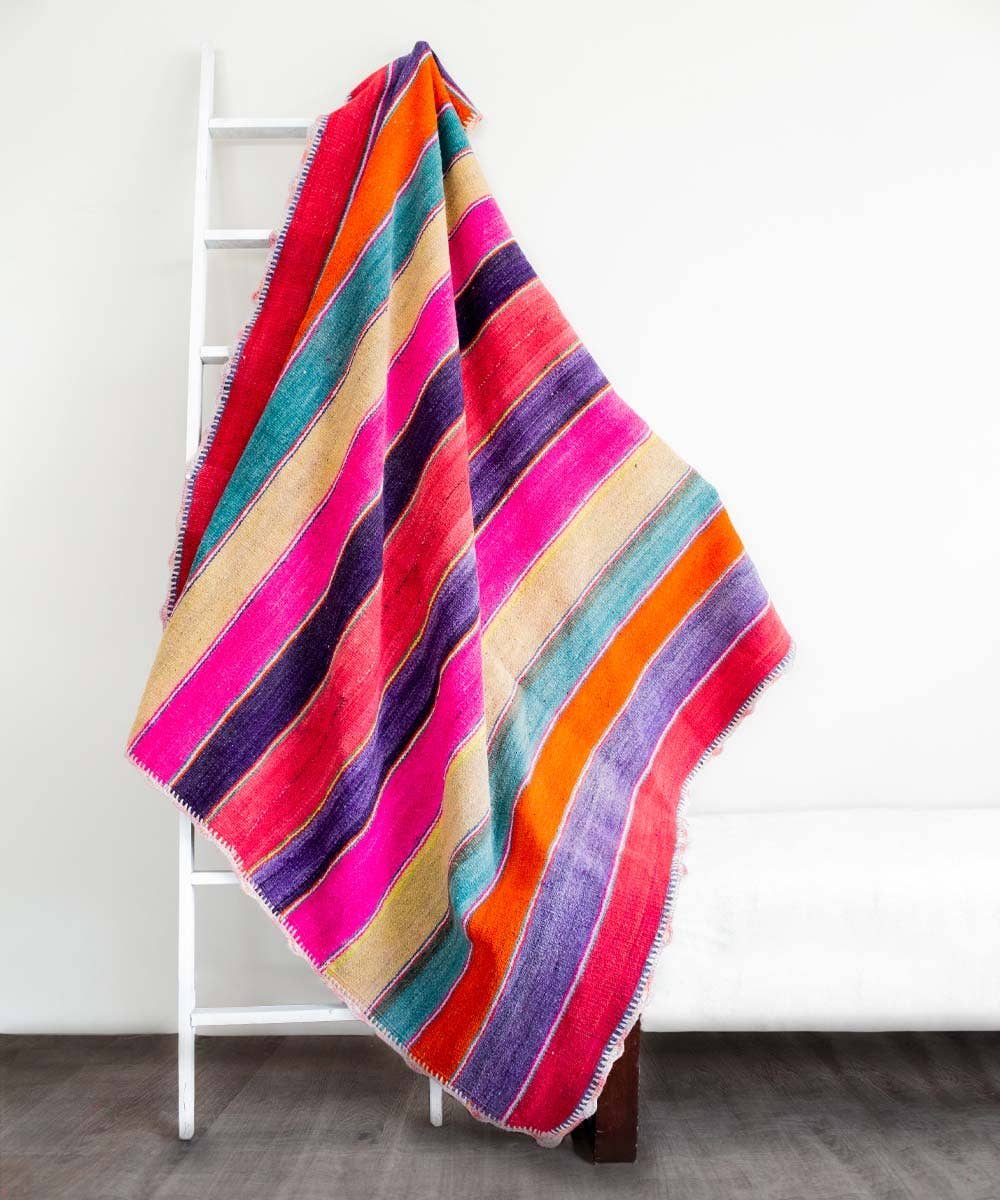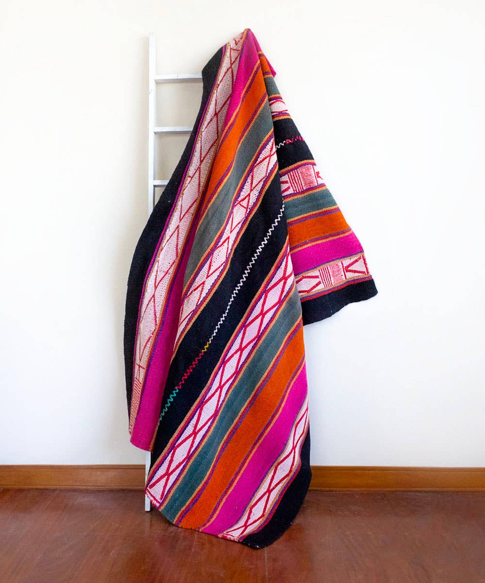 Passed down through generations by the indigenous Quecha families living in the Peruvian Andes, Vinloom's vintage accessories are not only one-of-a-kind art pieces, but a celebration of artisanal work and the traditional methods of textile production, beautifully preserving a culture for future generations. Made from 100% wool, home accessories show the intricate hand-woven design with a wide variety of colorways made from organic dye, instantly adding a bright and energetic touch to your space.
