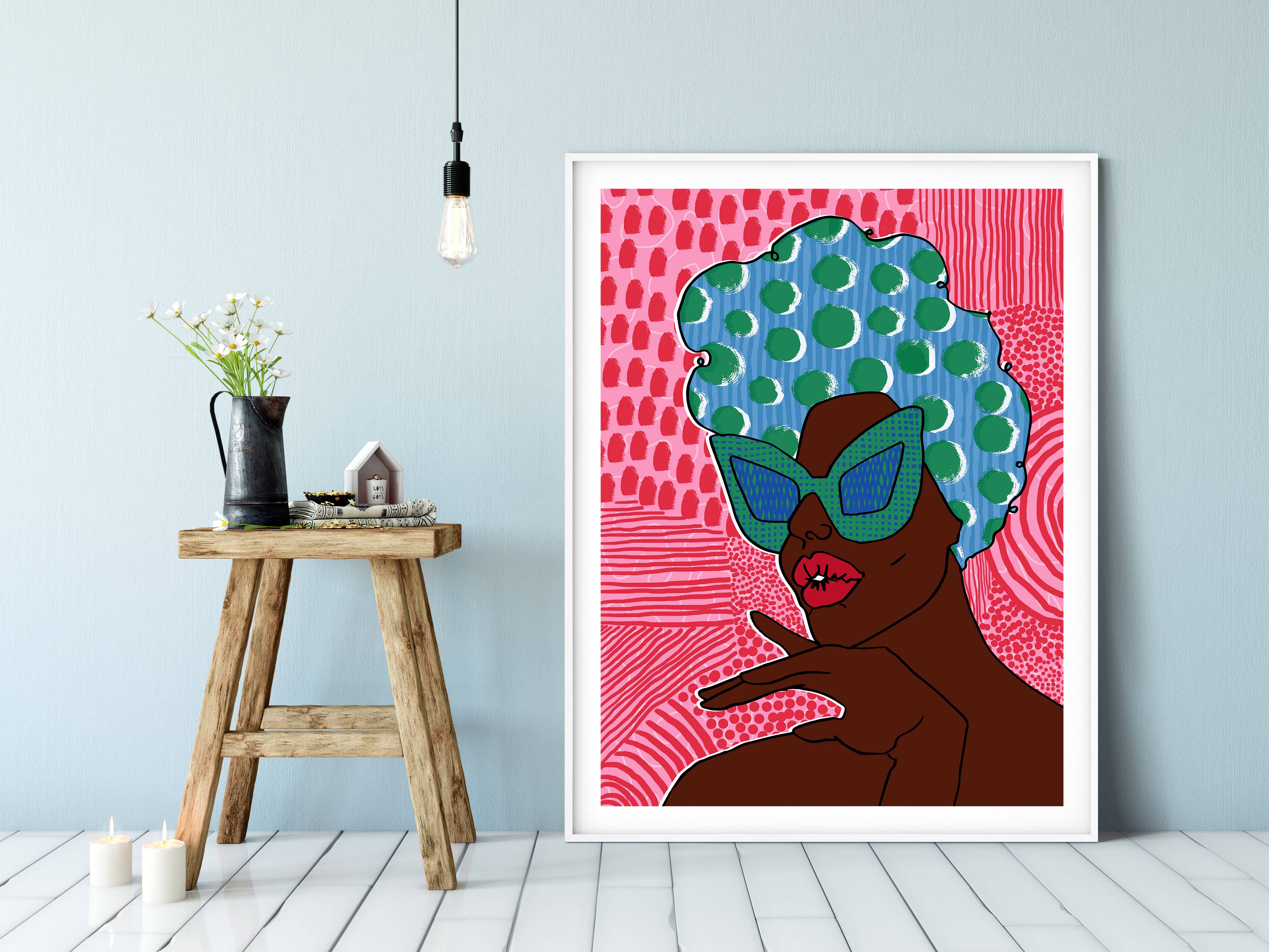 DorcasCreates is a UK based illustration brand that seeks to celebrate and uplift Black women through fun vibrant illustrated products and bold statement jewellery. A largely self taught artist; Dorcas loves to play with colour and pattern to produce pieces that are joyous yet powerful. Each illustration starts as a black and white pen drawing before being scanned and digitally edited in Photoshop and Illustrator. Dorcas draws inspiration from the Black women she encounters in her day to life. Dorcas takes these women and places them center stage in her artwork; standing beautifully and proudly in the center of the image Most of her pin designs are given a Yoruba name, in reference to her Yoruba heritage and the richness of the Yoruba language.
