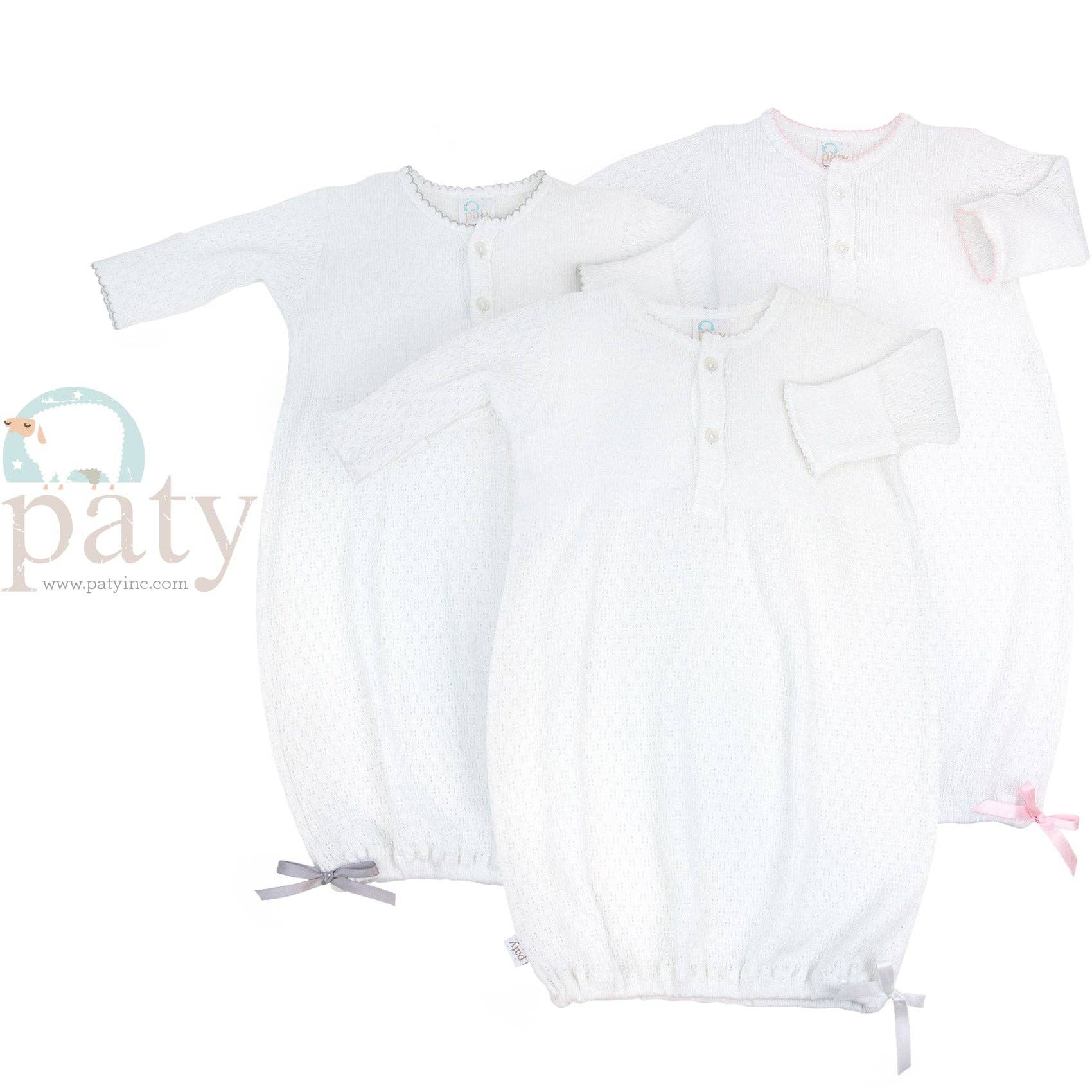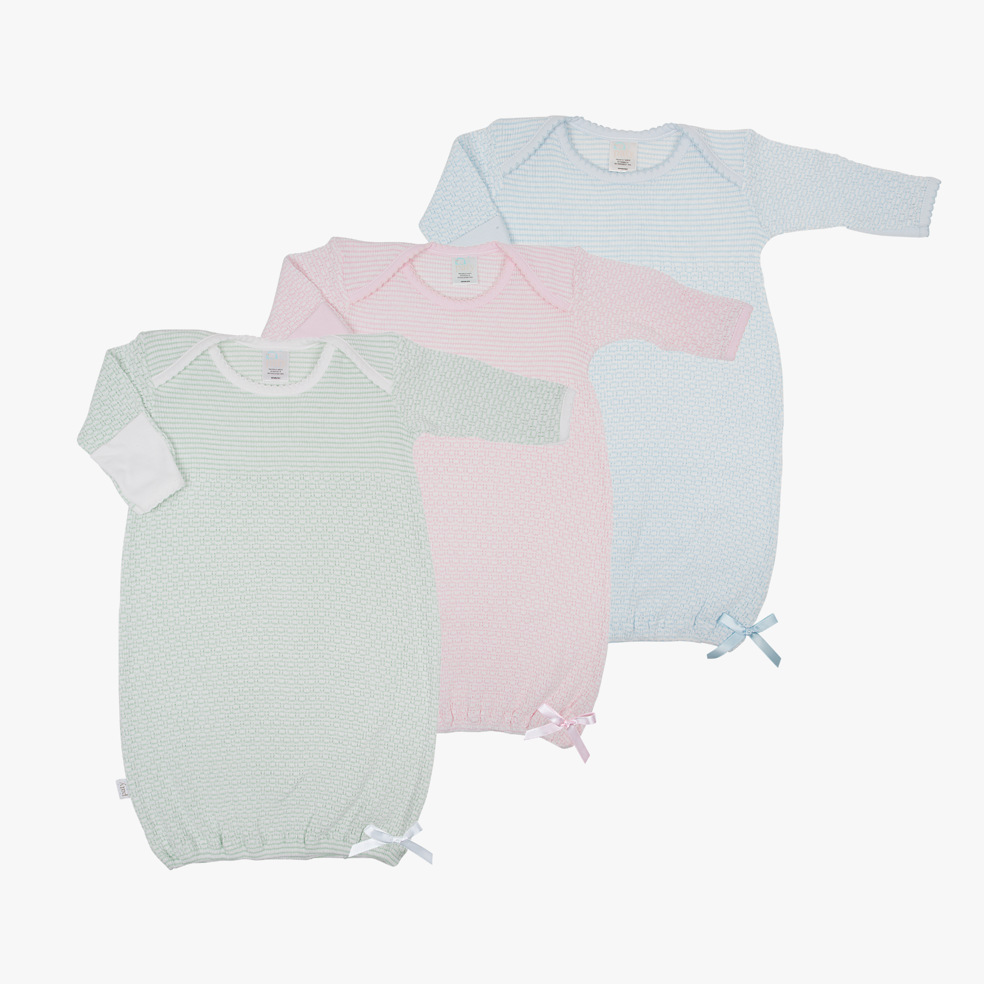 Paty, Inc. has been a leading manufacturer of infant and children’s clothing for over 70 years. Our timeless products have been a staple in the infant apparel market and continue to provide parents with high quality day gowns, onesies, and accessories for their children. Here at Paty, we start with the yarn. Our in-house knitting machines create our well-known fabric, which is then cut and sewn into the high quality infant apparel many have grown to love. Our products are customizable and are made just for your store. Size, fabric colors and trim colors are all created just to your specification.