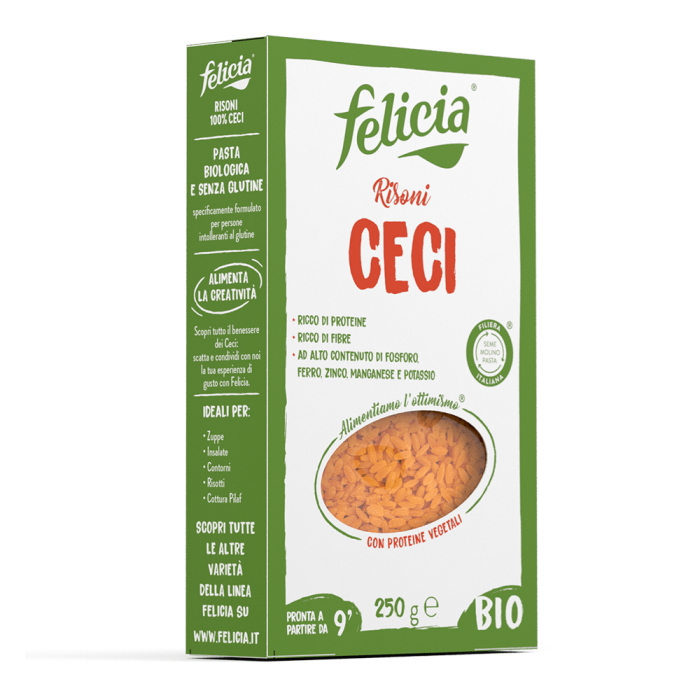 Felicia was born in 2009 in Italy in Gravina in Puglia. Brand of Andriani SpA Benefit Company interprets its values by bringing to the table an experience based on well-being, taste and balance. Made with organic and naturally gluten-free raw materials such as buckwheat, brown rice, oats, chickpeas, lentils, peas and beans. It is totally natural and made only water and cereal or legume flour. It is produced in the only Italian allergen free pasta factory with an integrated multigrain mill, with total control of the entire production process, from the procurement of the raw material to the realization of the pasta. Attention to food safety is guaranteed by the numerous quality controls carried out at all stages of the process.