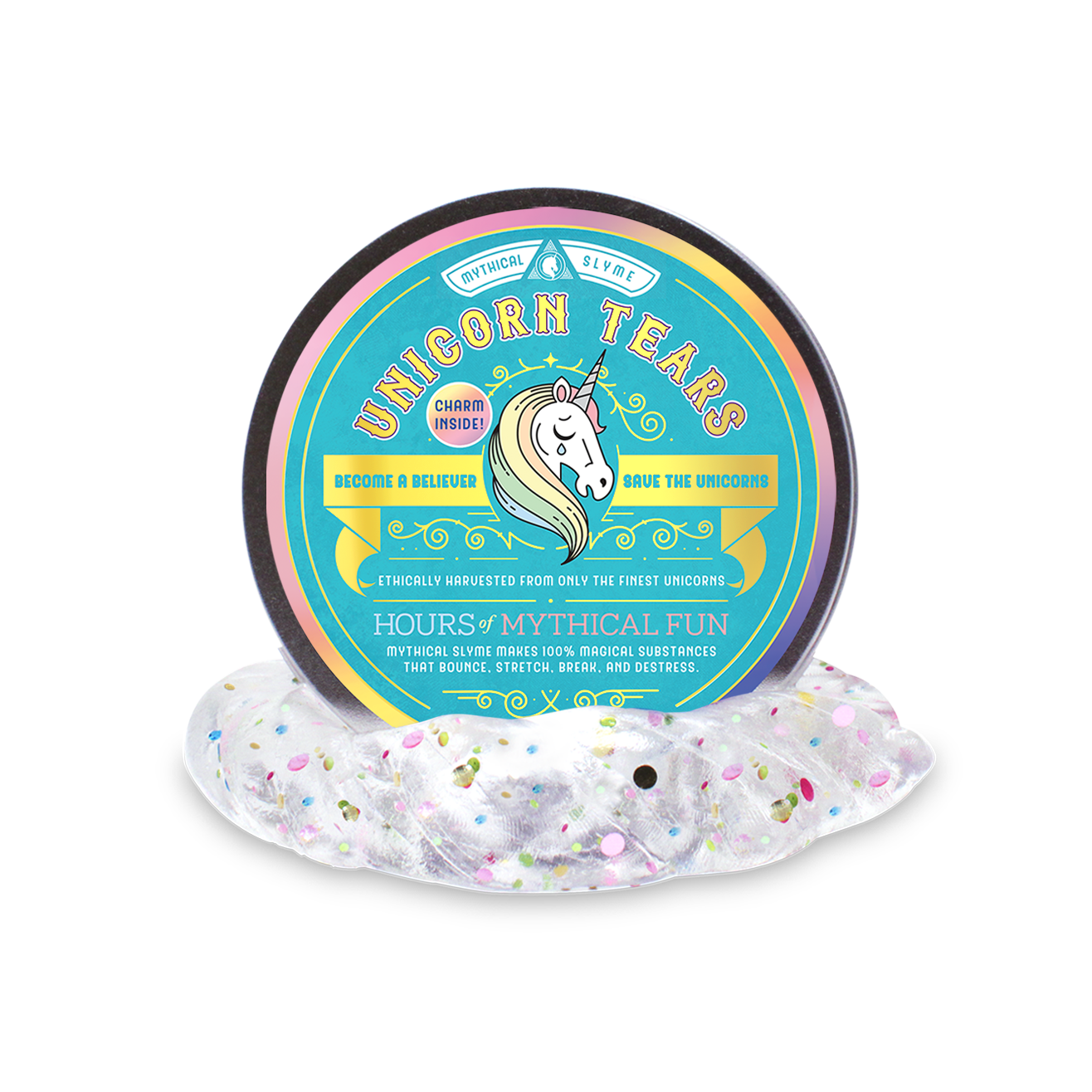 Mythical Slyme is like greenpeace, but for unicorns and mermaids. It is the home of unicorn tears and mermaid farts. Unicorns and mermaids from across the land have donated their literal blood, sweat, and tears to fundraise for conservation. Buy a tin, save a unicorn! Our branding and displays are inspired by vintage apothecaries. We take a cheeky, whimsical approach to our products and marketing. We highly recommend you purchase our prepacked countertop display to maximize sales! It’s designed to display our tins effectively based on feedback from our retailers.