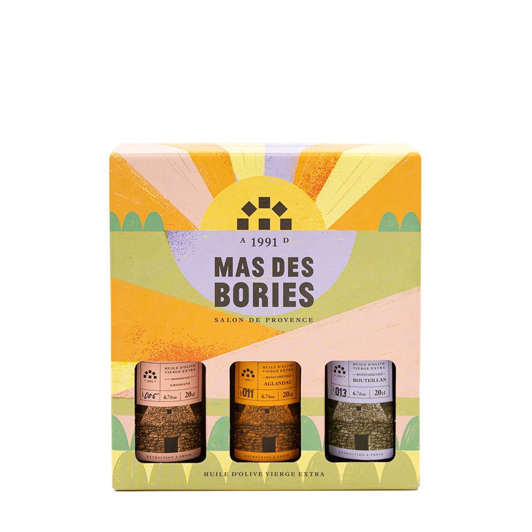 A BRAND FIRMLY IN TUNE WITH NATURE Mas des Bories owes its name to the "bories", those small dry-stone huts, masterpieces of Provençal agricultural architecture from the 19th century, that are scattered throughout the olive grove and give it its identity. Faithful to this Provencal "savoir-vivre", we apply the same care, patience and slowness in our cultivation of the olive tree and the production of the olive oil of Mas des Bories. We cultivate our olives with an unconditional respect for trees, land and local biodiversity and we pick them up with hand. Each variety is extracted separately, at its optimum stage of maturity, and then processed in our craft mill, by cold extraction. The single-varietal oils thus revealed in pure state the singular flavors of the finest olive oil varieties of Provence. A family business located in the commune of Salon de Provence, the EARL Mas des Bories includes an olive-growing estate with 1700 trees between 30 and 50 years old and a private mill, which is located in the very heart of the olive grove.