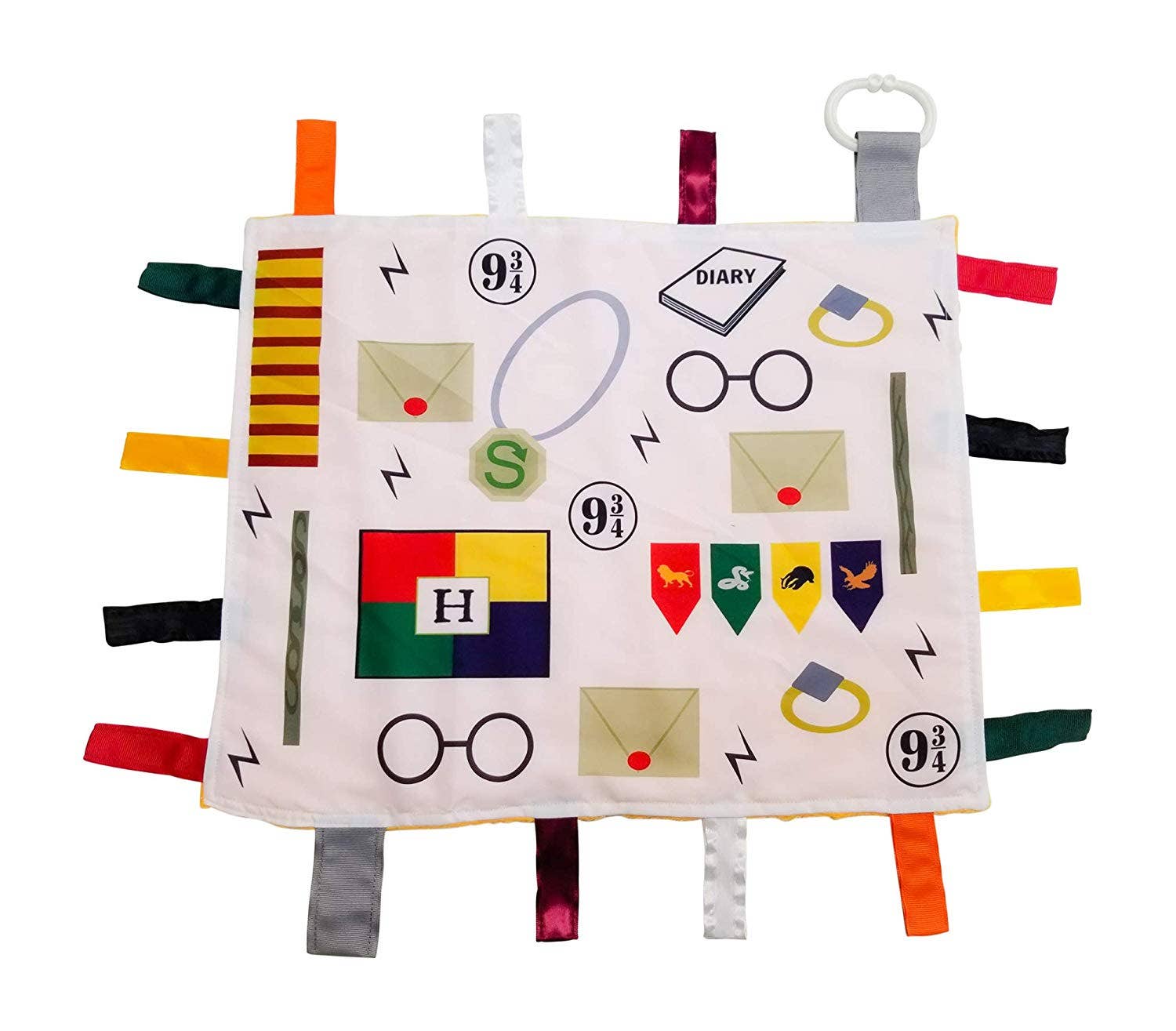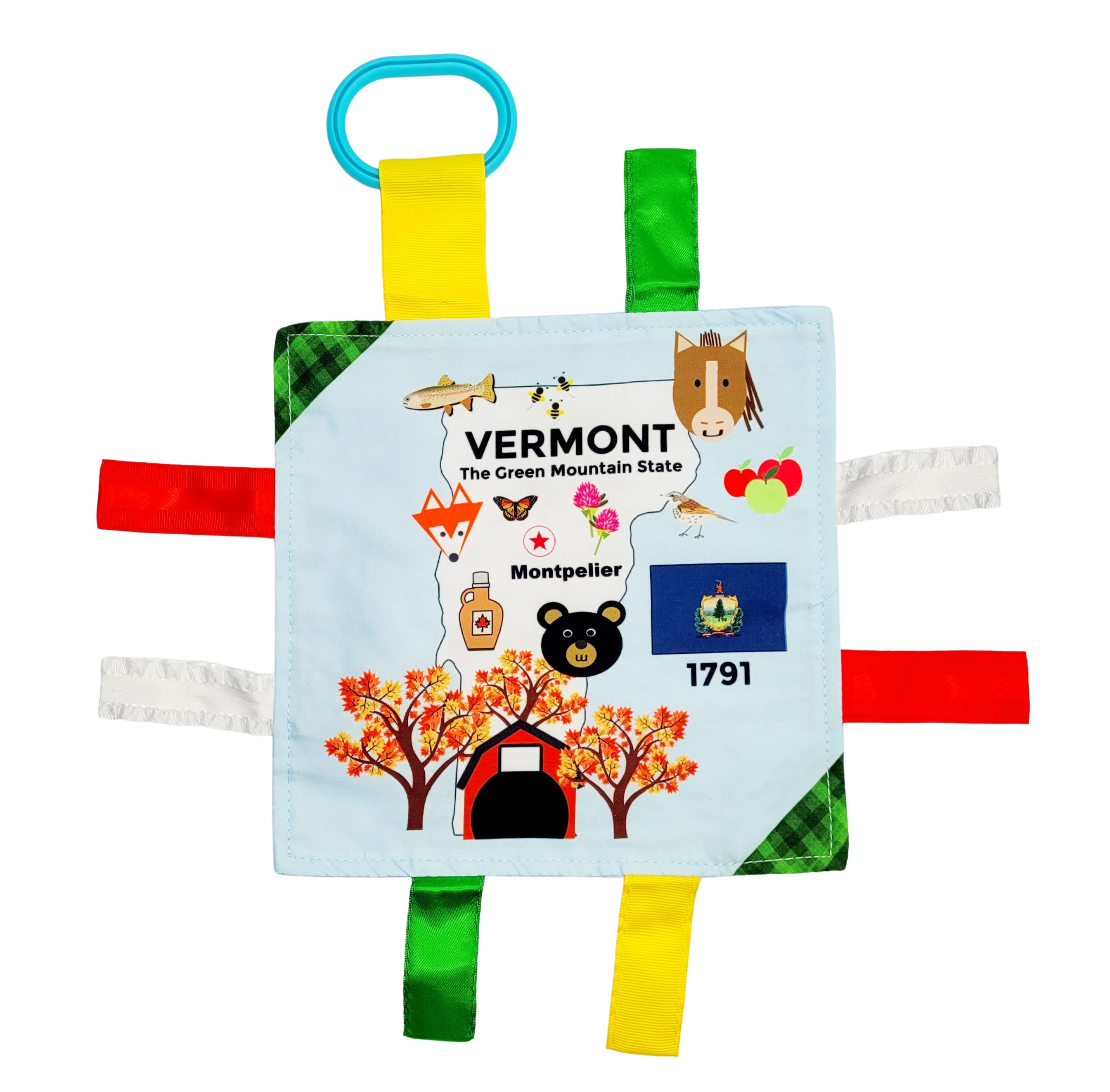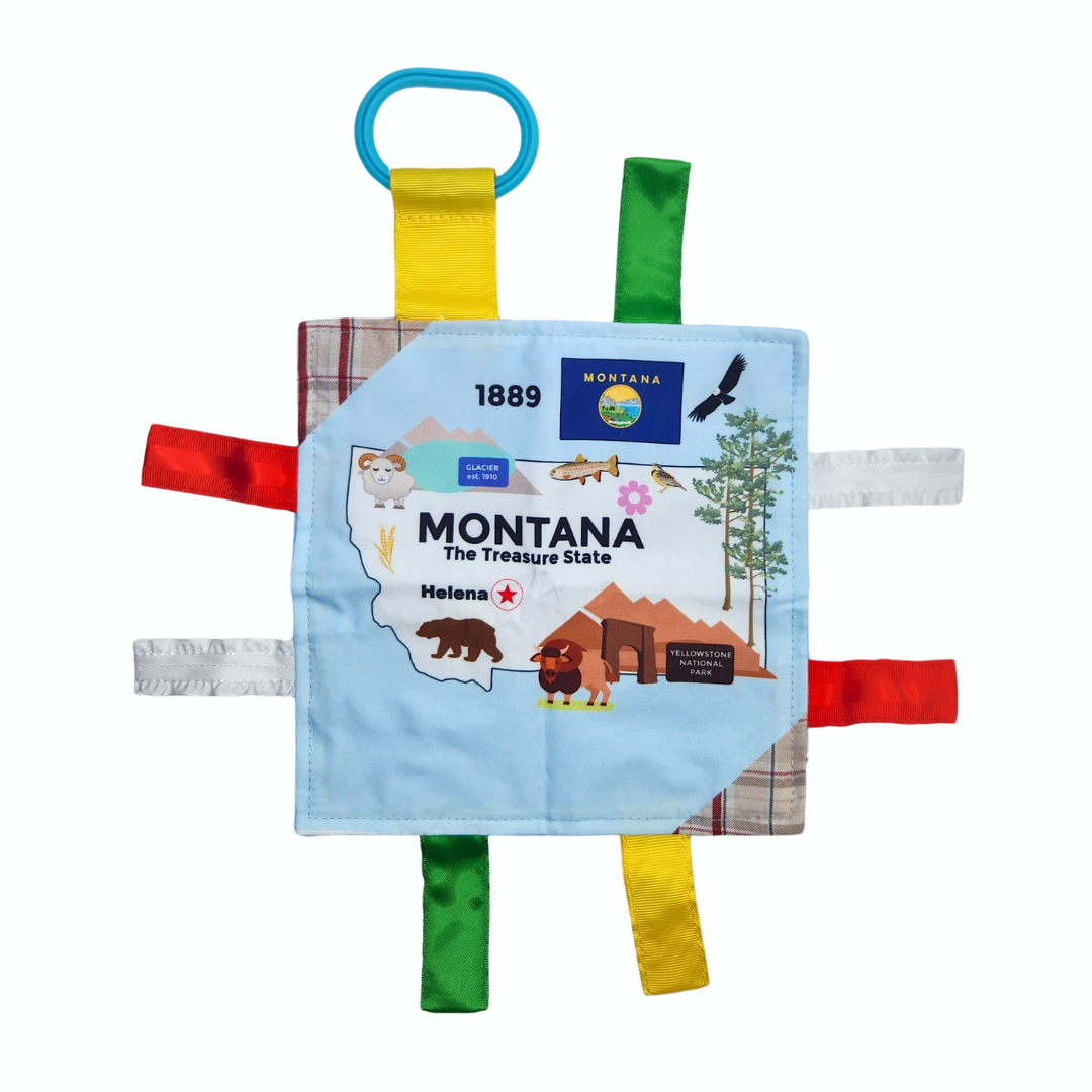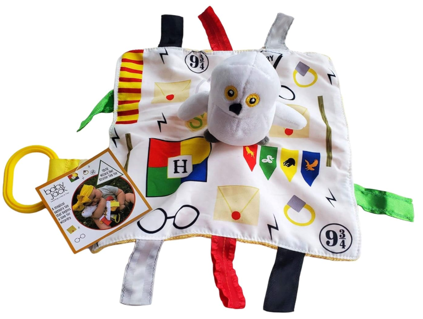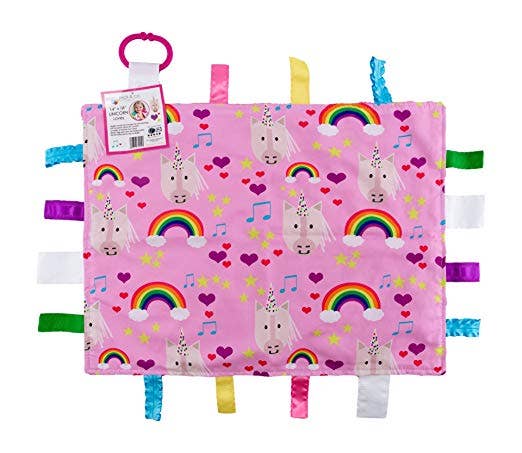 Fabrics designed by us! You will not find them anywhere else - Kids of all ages have a comfort object that soothes them. The Baby Jack Learning Lovey is a perfect first and forever security blanket that can grow with a child. Designed by kids, building pictures using shapes, letters and numbers creating a "look and find" concept for a product that is for beyond baby. All Baby Jack products are accented with ribbons sewn shut for safety ensuring little fingers do not get stuck in ribbon loops. The variety of textured ribbons encourage tactile play.