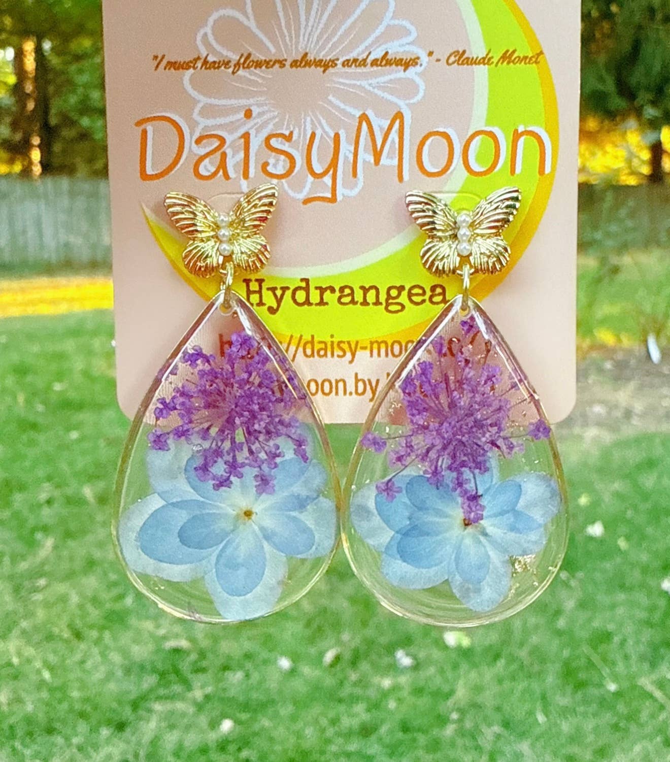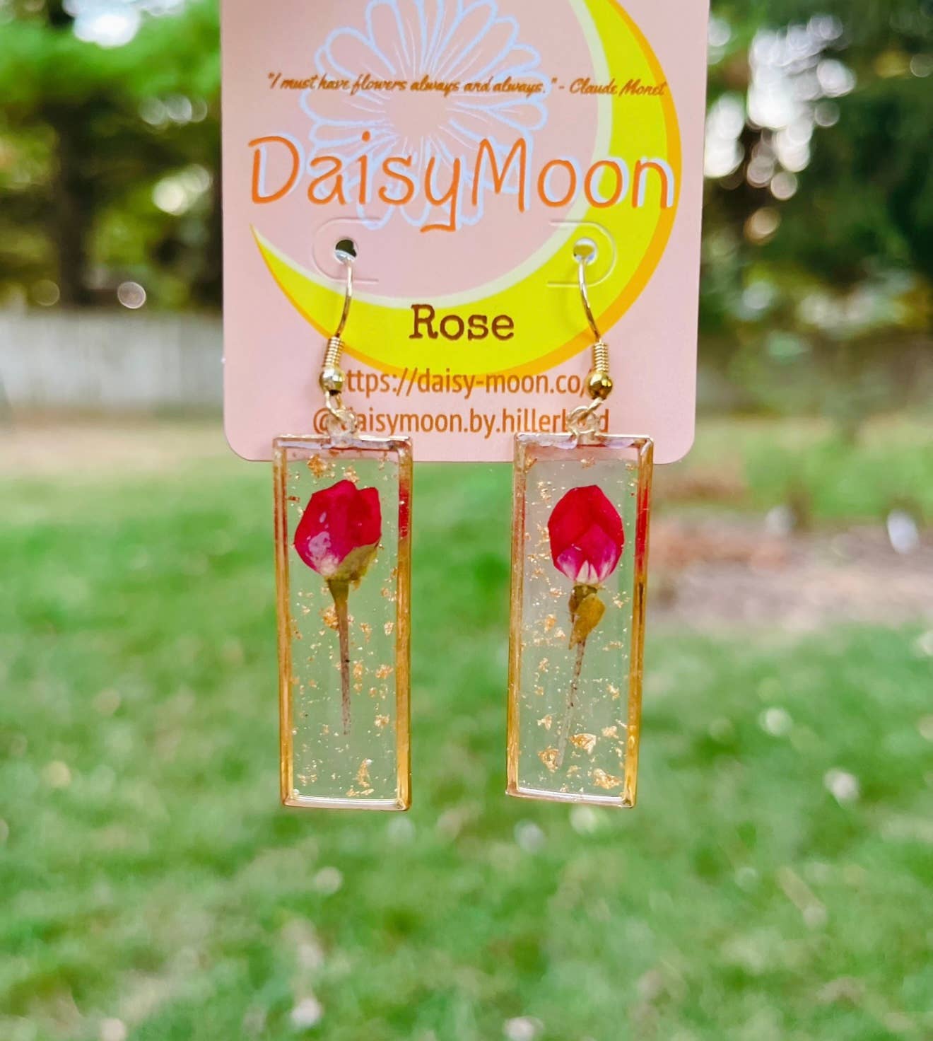 Beneath the light of Daisy Moon, real flowers and fruits are given a second life. Each piece is lovingly preserved and handcrafted in crystal clear resin and transformed into timeless keepsakes. We handcrafted everything with care in small batches, in Champaign, IL. Inspired by the quiet poetry of the natural world, Daisy Moon jewelry brings a touch of wonder and romance to botanical boutiques, garden centers, and museum gift shops alike.