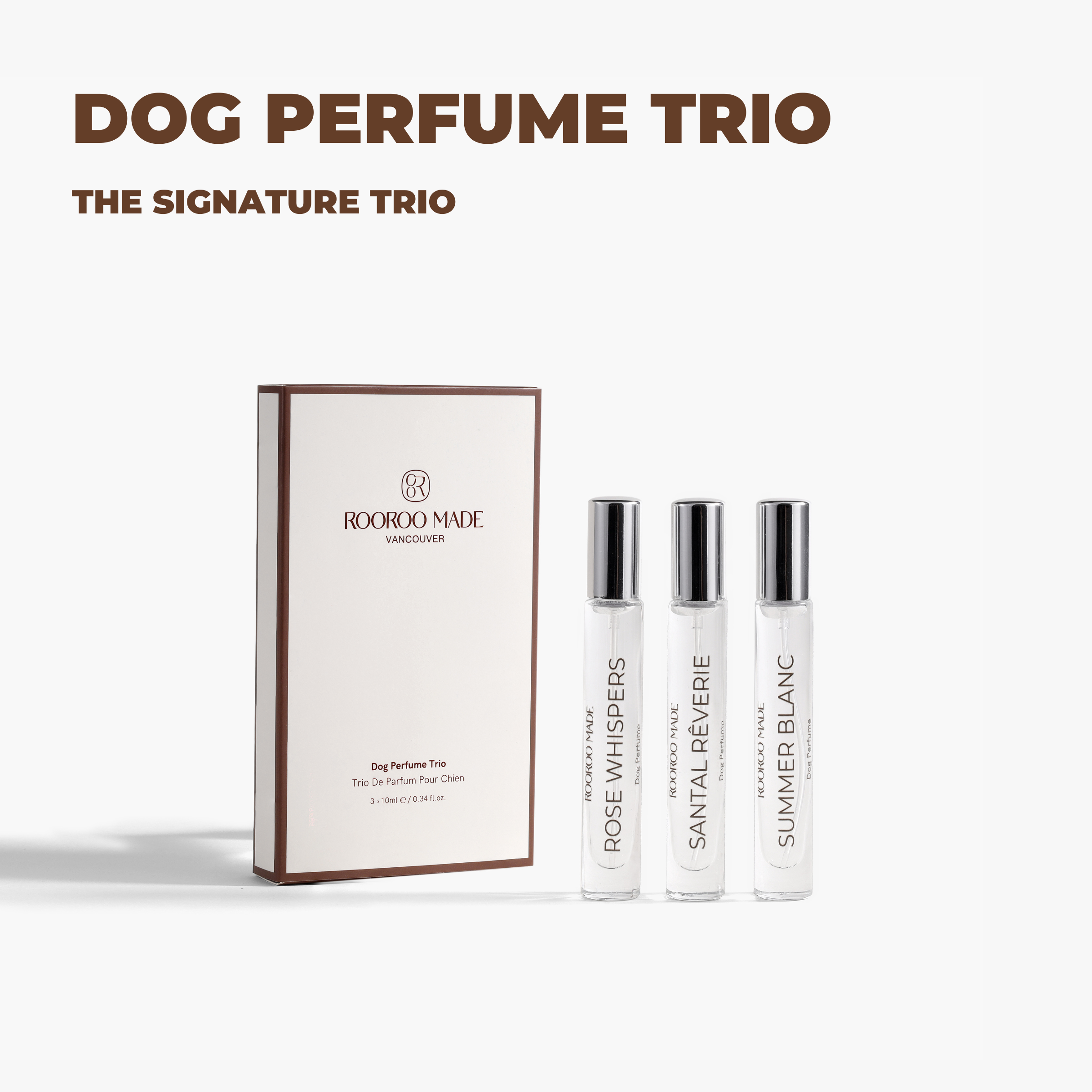 ROOROO MADE is a luxury lifestyle brand for pets, unfolded its journey in Vancouver, Canada. Inspired by the founder’s beloved pet, Rookie, the founder embarked on a journey crafting an exclusively perfume for dogs that embodies an exquisite lifestyle. We strive to create a new and sophisticated pet care philosophy. Through the power of scent, to enrich the eternal bonds between humans and dogs, creating moments of joy and elegance. Upholding the principles of "safety, harmlessness, and quality," each ROOROO MADE product is crafted with the finest natural fragrances and sustainable materials.