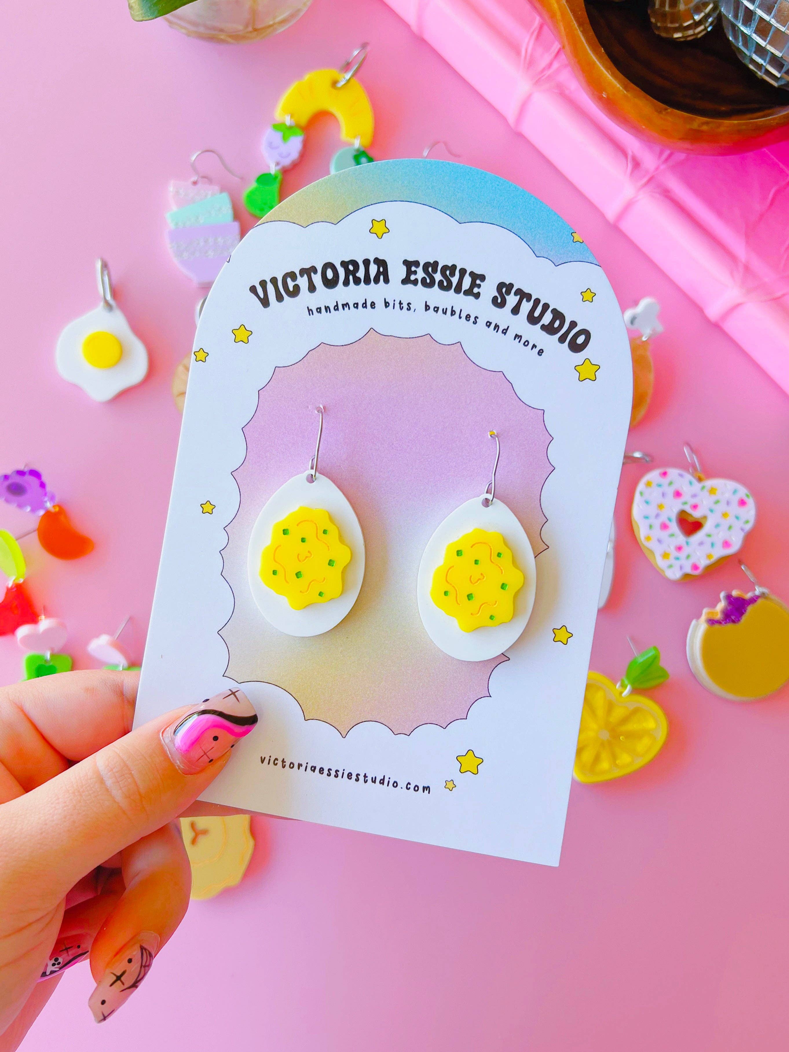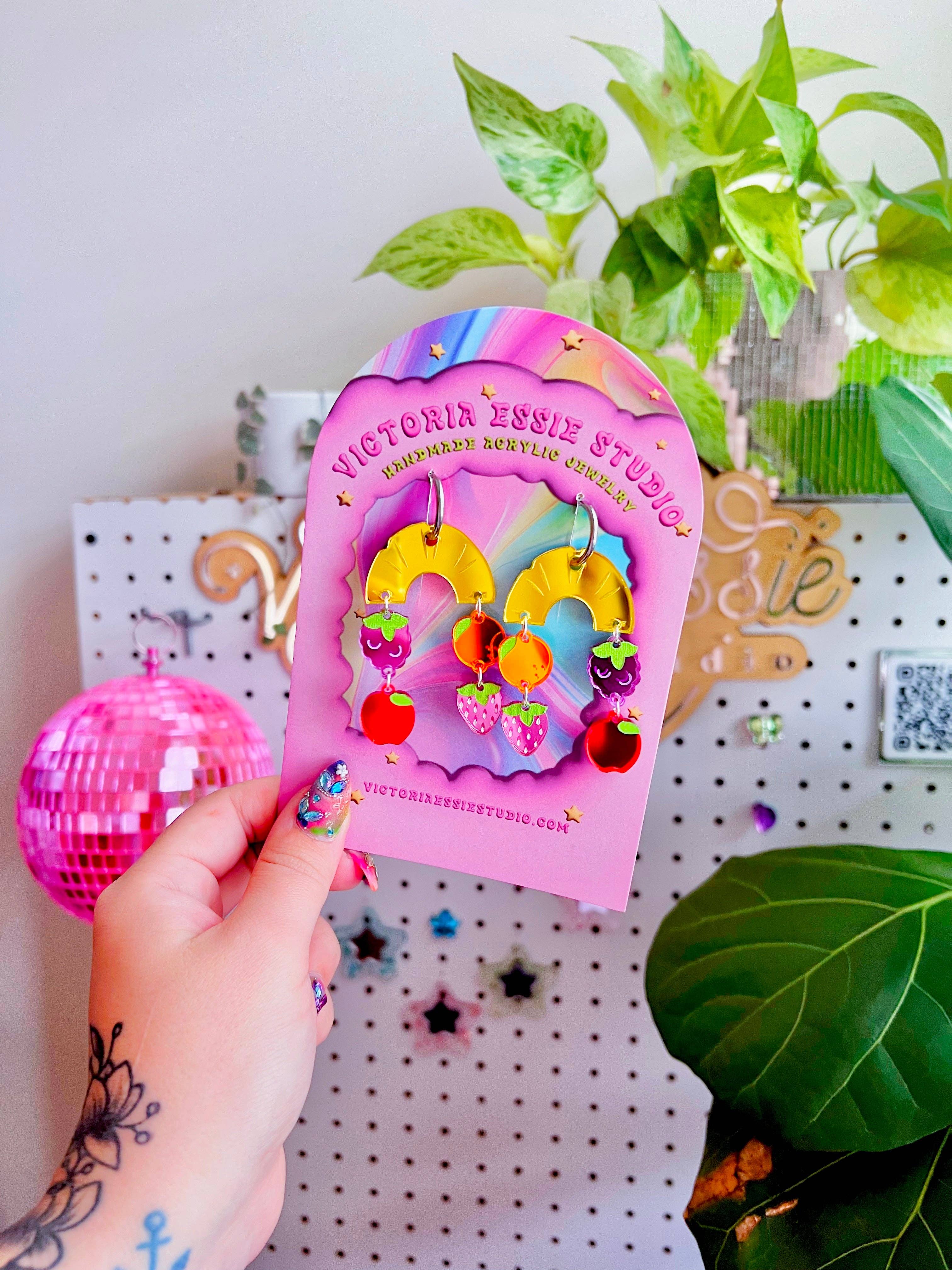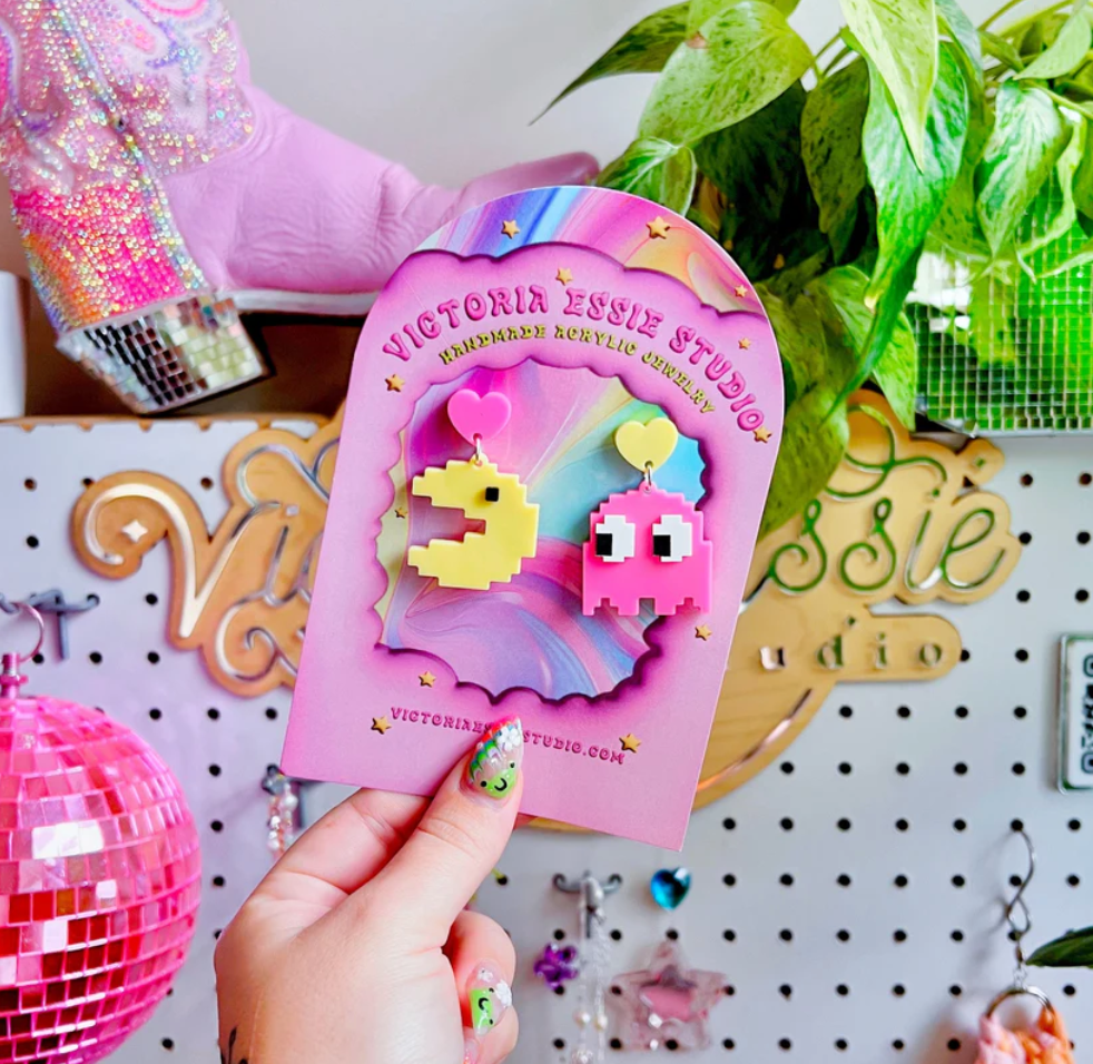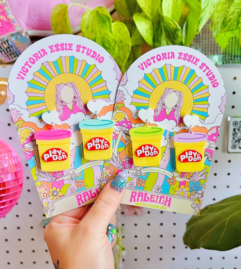 Victoria creates cute, fun, and colorful wearable pieces inspired by the joys in life! Every piece is hand made with care, out of acrylic using a high power laser. All jewelry is lightweight (on average each earrings weighs the same as a nickel) and completely hypoallergenic and nickel free. Everything is produced in my home studio and I have a very amazing local acrylic supplier - so If you ever see a design you like but curious if other colors are available shoot me a message! I'd always be more than willing to make something more cohesive to your aesthetic! Are my products a good fit for your shop? My clientele is in the 18-35 age bracket who love bright colors and playful jewelry! Check us out over on IG @shopvictoriaessie - if you see anything I post on there that you'd like but isn't available on Faire, please let me know!