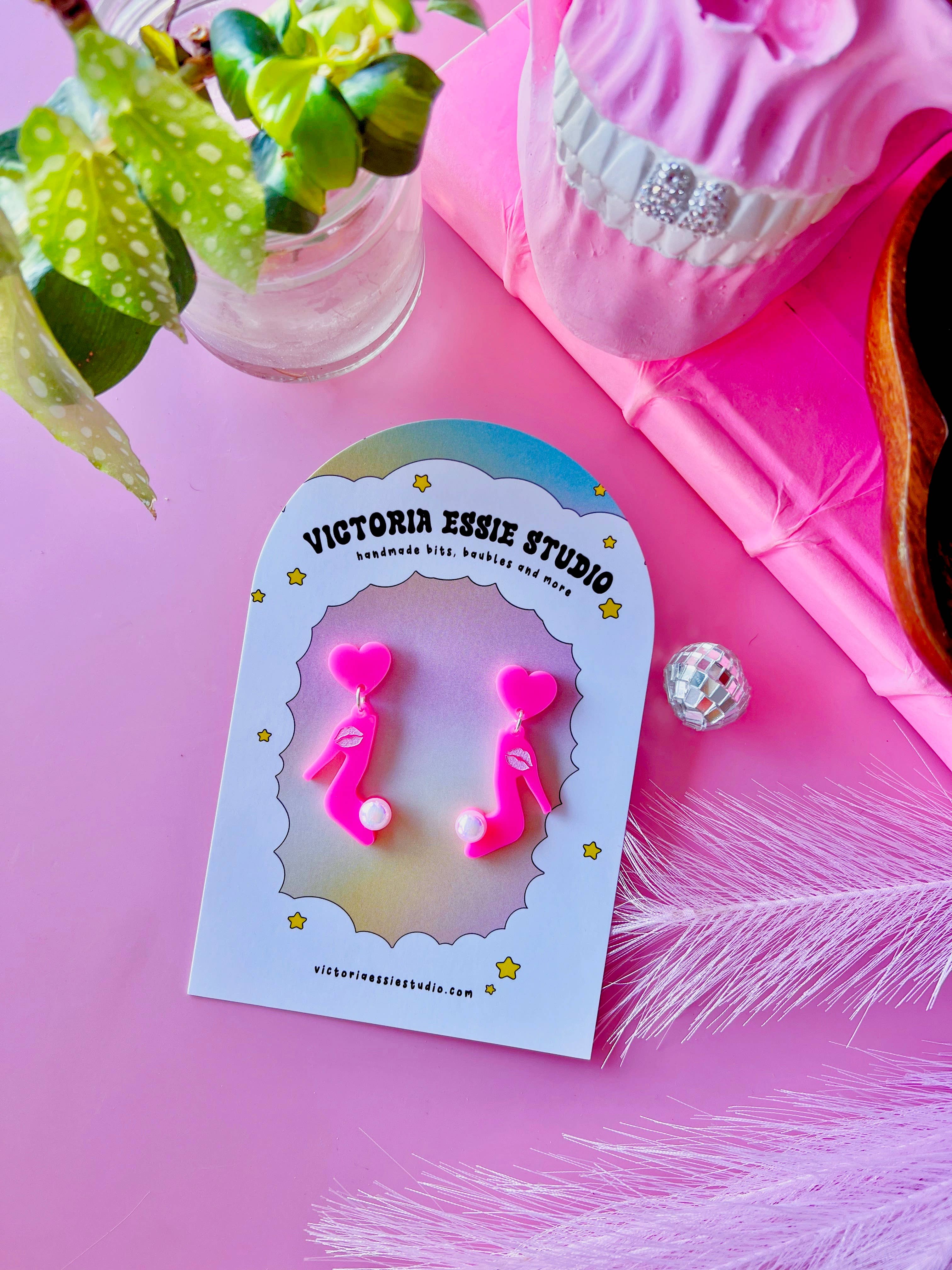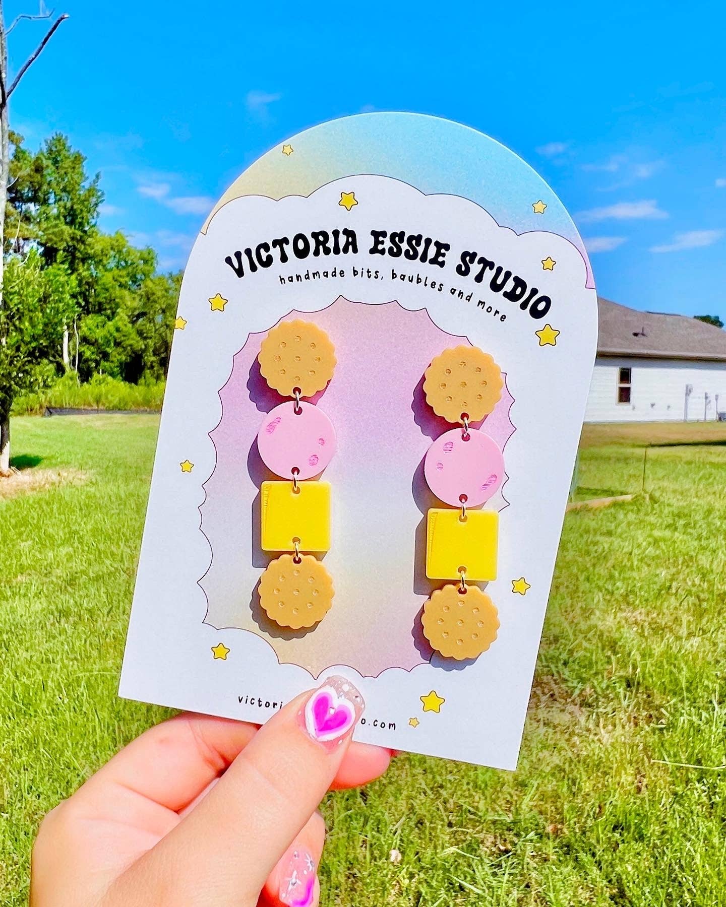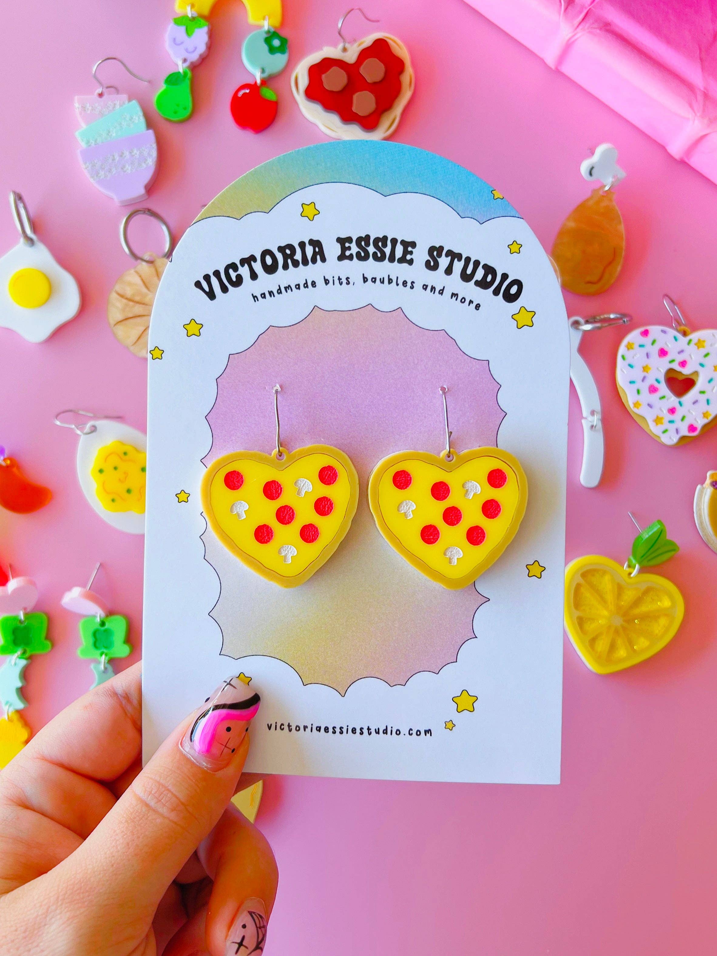 Victoria creates cute, fun, and colorful wearable pieces inspired by the joys in life! Every piece is hand made with care, out of acrylic using a high power laser. All jewelry is lightweight (on average each earrings weighs the same as a nickel) and completely hypoallergenic and nickel free. Everything is produced in my home studio and I have a very amazing local acrylic supplier - so If you ever see a design you like but curious if other colors are available shoot me a message! I'd always be more than willing to make something more cohesive to your aesthetic! Are my products a good fit for your shop? My clientele is in the 18-35 age bracket who love bright colors and playful jewelry! Check us out over on IG @shopvictoriaessie - if you see anything I post on there that you'd like but isn't available on Faire, please let me know!
