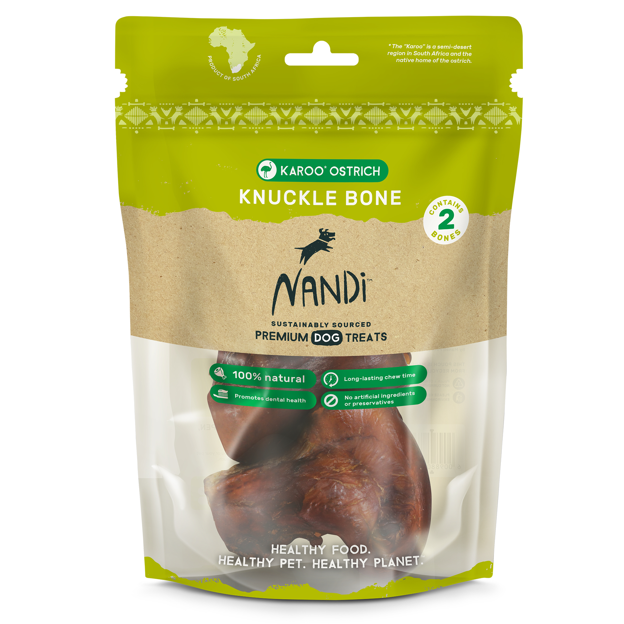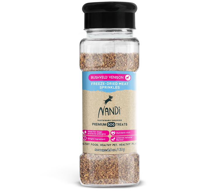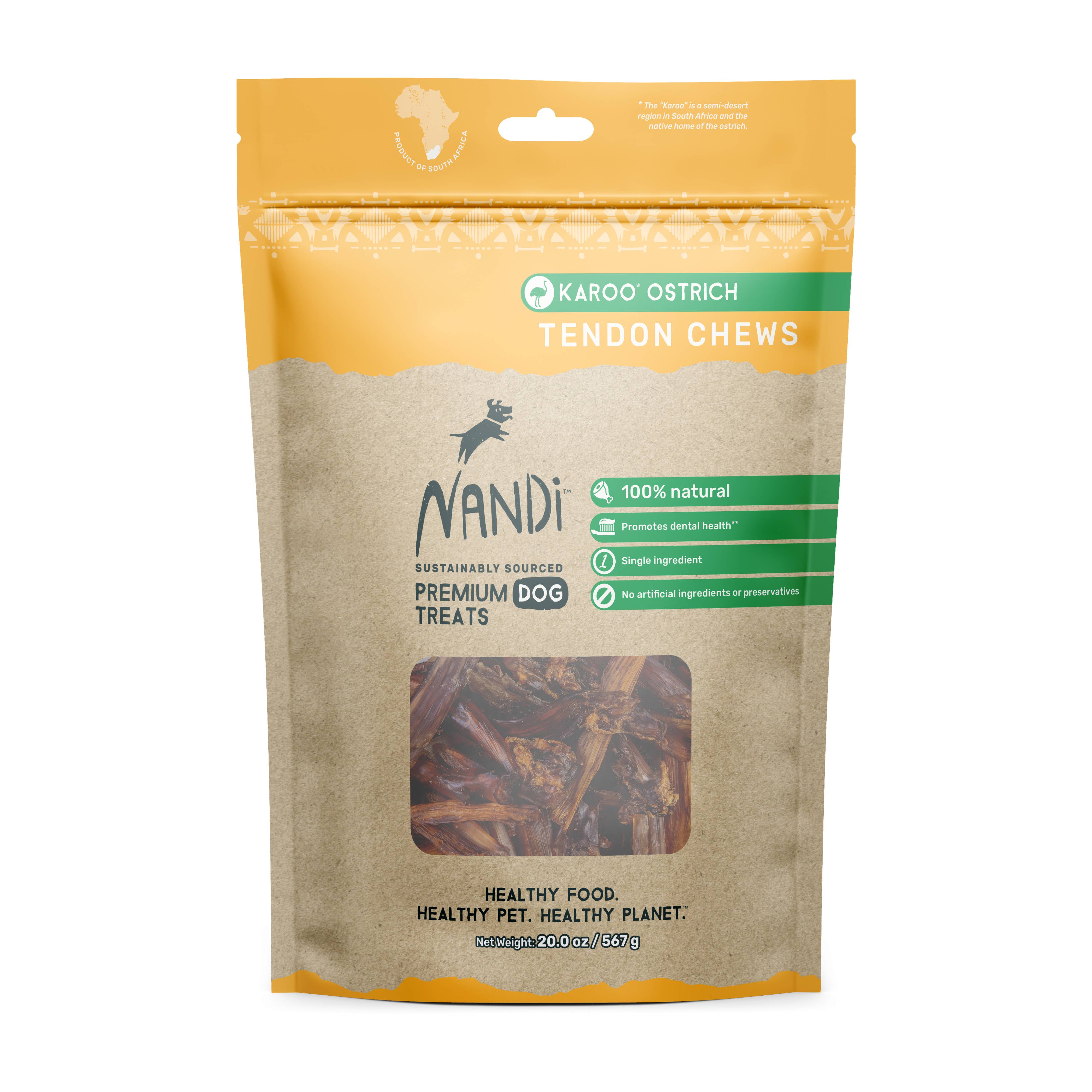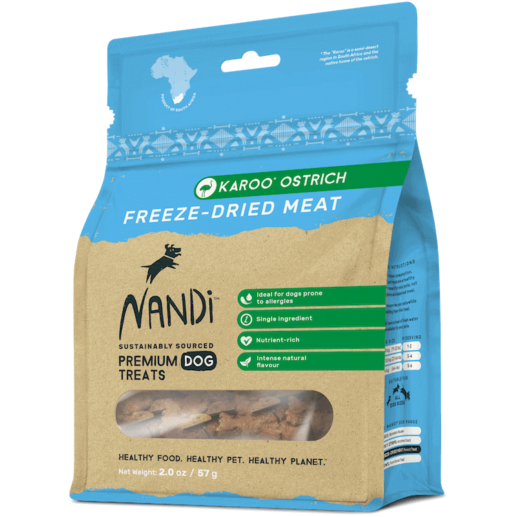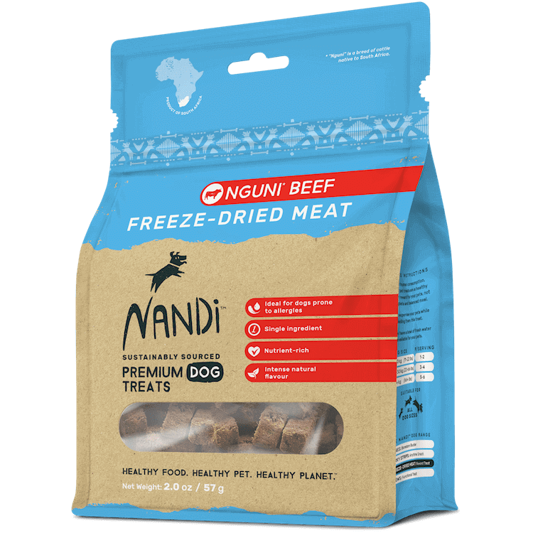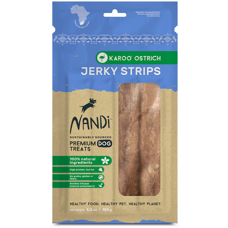 Nandi means “delicious” in the Zulu language. The wild delight experienced by your pet every time you give them a Nandi treat will be all the proof you’ll ever need of the promise in our name. We offer pet treats made from uniquely African proteins. This not only includes novel proteins such as Ostrich and Venison, but also our traditional proteins like Kalahari Lamb, Cape Fish and Nguni Beef – a cattle breed indigenous to Africa. That our treats are 100% African isn’t the only thing that makes them special. Our treats are made from sustainably sourced proteins free from hormones and routine antibiotics. Our treats are made without artificial preservatives, added grains or unnatural fillers. This makes Nandi treats incredibly healthy and nutritious for your pet. Our treats are so good in fact, that you might feel tempted to try one yourself. Healthy Food. Healthy Pet. Healthy Planet. Note: Our promotional items (pamphlets, and POS wobblers) are free. Feel free to leave us a note to include them in your shipment.