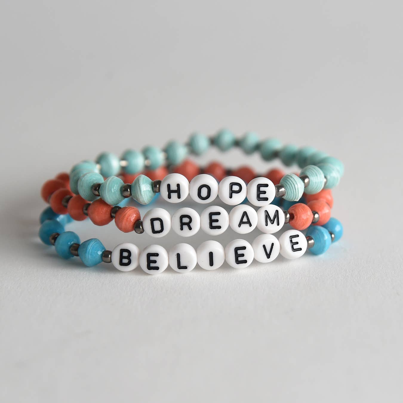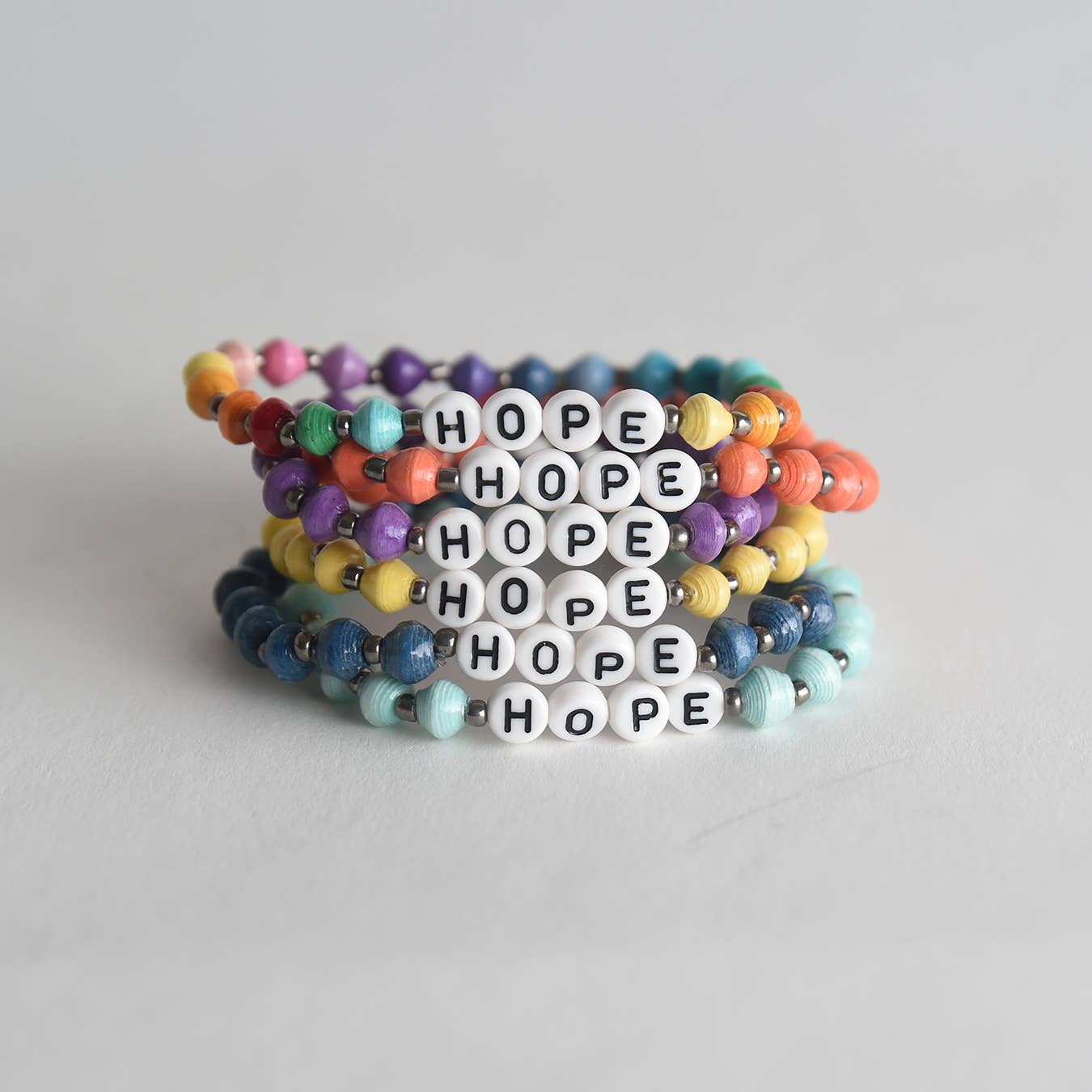Project Have Hope is a collaborative of over 100 Ugandan artisans. Using recycled paper to create unique beads, and combining them with glass, metal and clay beads, artisans craft inspired jewelry designs that are on trend. Offering a selection of bold, statement pieces and colorful everyday, stackable bracelets, the appeal is unlimited and unmatched. Made by hand, each piece is truly a work of art. This wearable art also truly makes an impact to this impoverished community in Uganda. Through the sale of these crafts, children receive an education. Women receive business loans to expand their entrepreneurial spirit. And dreams become reality.