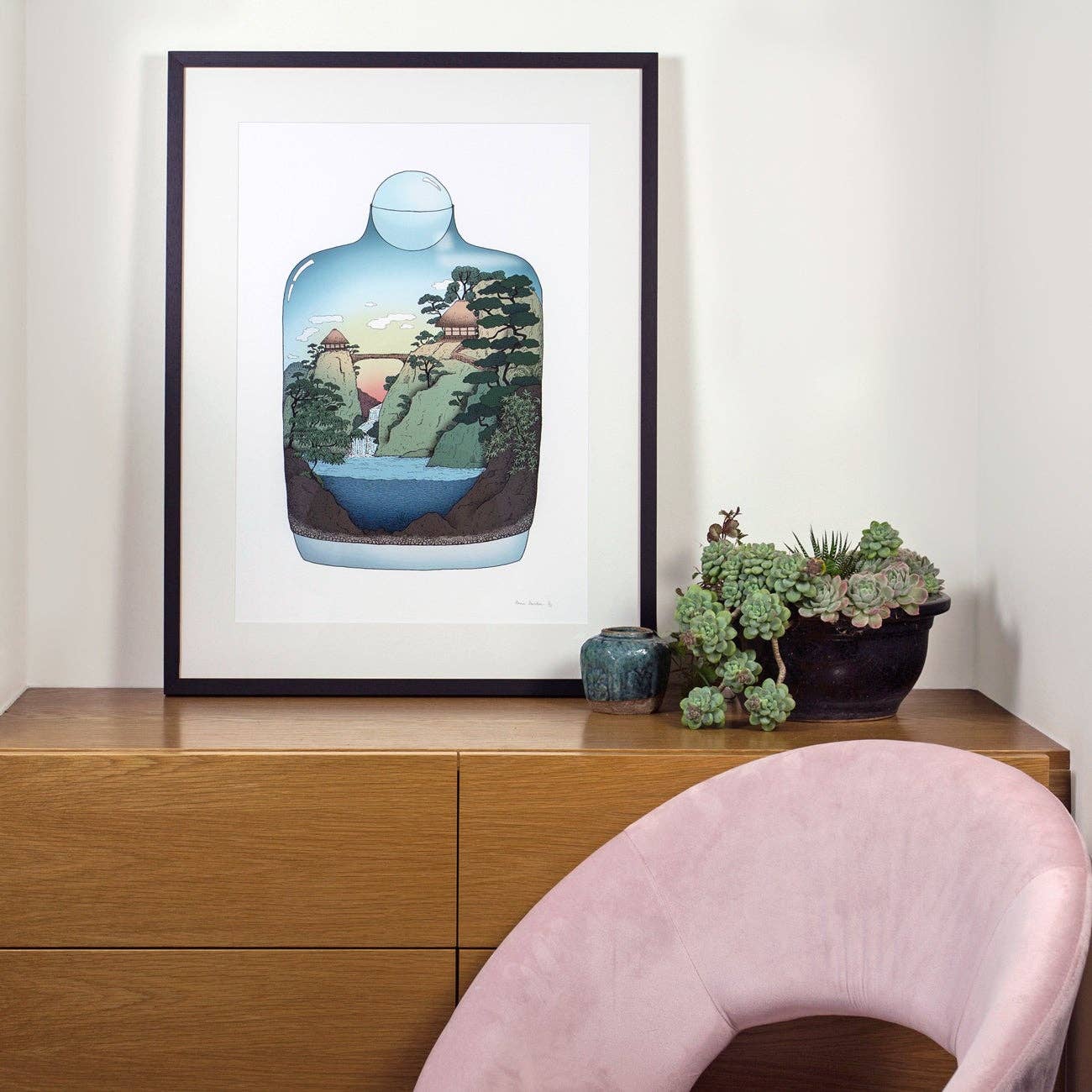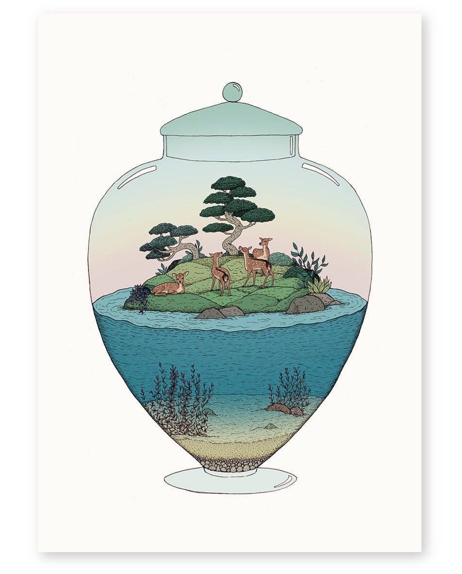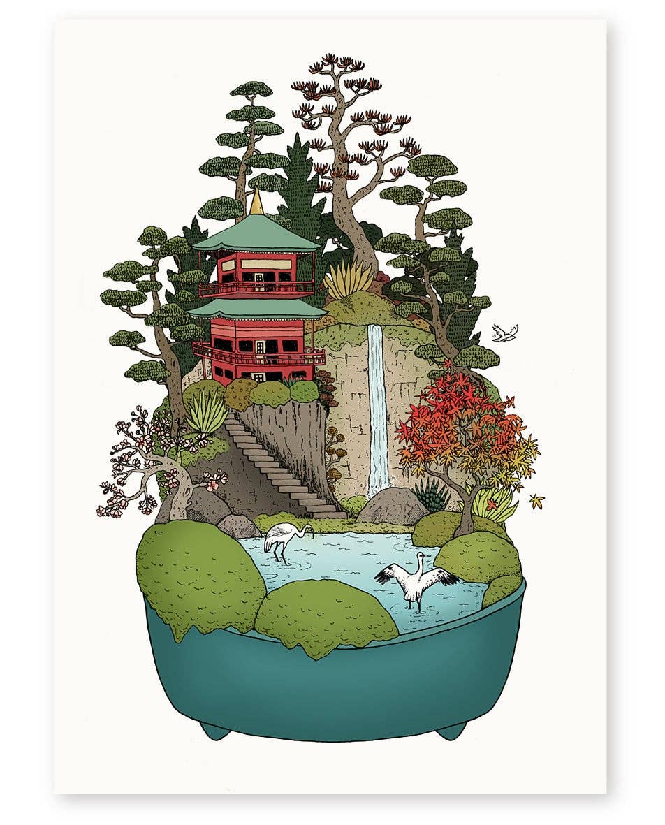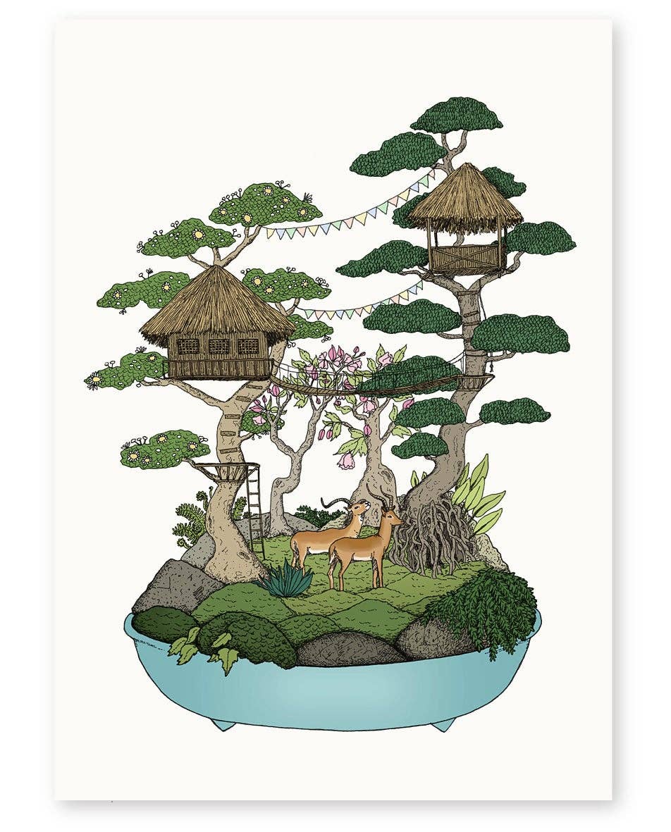 Annie is a Melbourne-based illustrator whose drawings are naïve, quirky, colourful and filled with meticulous patterns and fine touches of detail. She divides her time between creating original artworks for prints and working on freelance projects for international illustration agency 'Illustration X'. Her illustrations have appeared in galleries, on airport walls, across public transport, wall-paper, shop windows, textiles, kid’s picture books, packaging & more for various clients such as Jetstar, Lonely Planet, Converse, Medibank, Chanel 9 and The Royal Botanic Gardens. Annie has been described as an 'Escape Artist' as she often draws little imaginary worlds you can almost picture yourself stepping into. Terrariums, bonsai, lush garden worlds and cacti are largely featured in these detailed & vibrantly coloured works. Inspirations include Japanese woodblock prints, old botanical sketches, quirky kids picture books, exploring new travel destinations and of course nature - especially forests, tropical jungles, coral reefs and Japanese landscapes. Prints are limited editions of 50 only, each is hand signed & numbered. All come unframed and have been professionally printed. Everything is designed, printed & packaged in Australia. Media: Hand drawn in fine-liner pen and coloured digitally, (or watercolour painting) Printing: Giclee; museum grade quality prints, archival pigment inks Paper: 300gsm, 100% cotton rag, archival