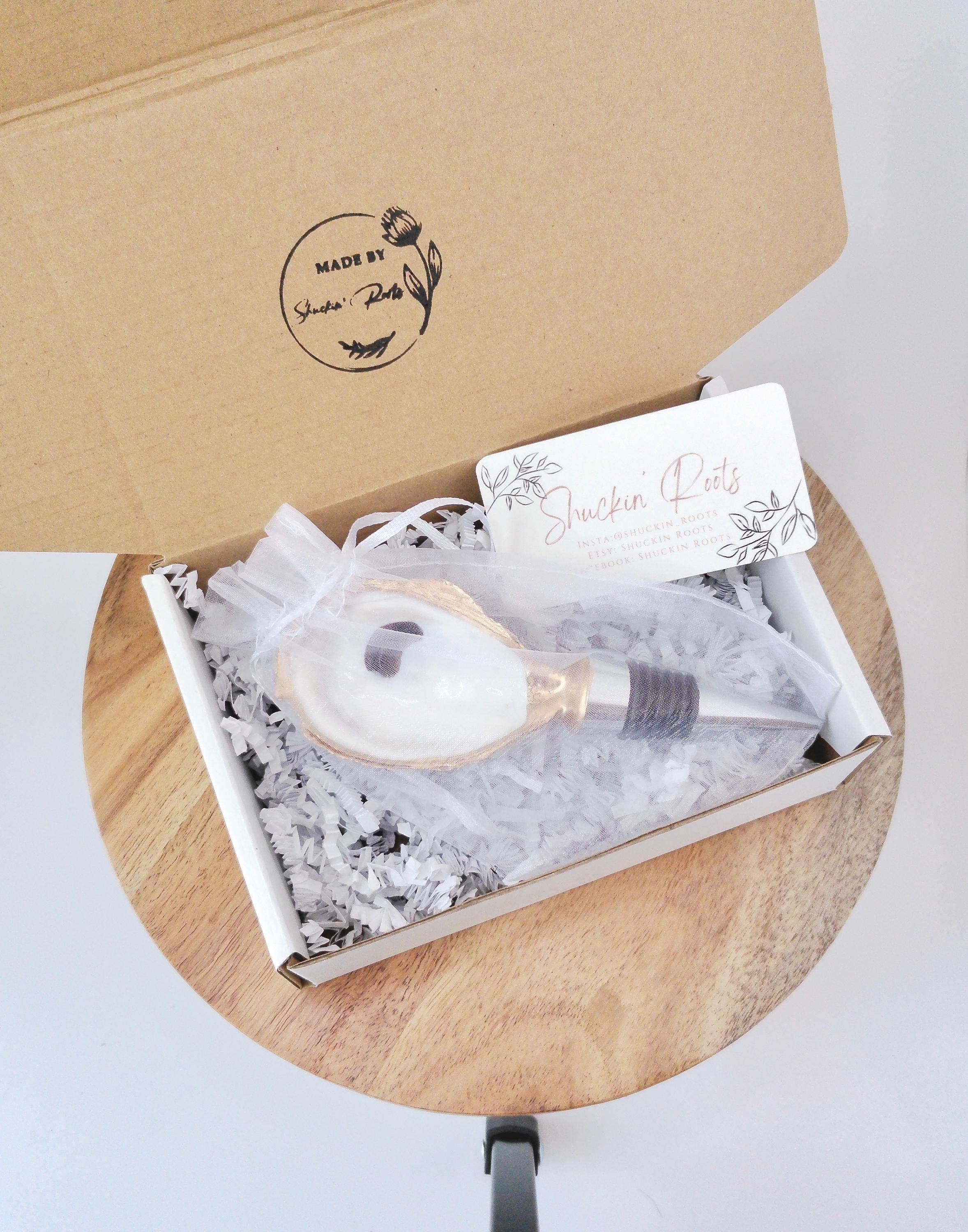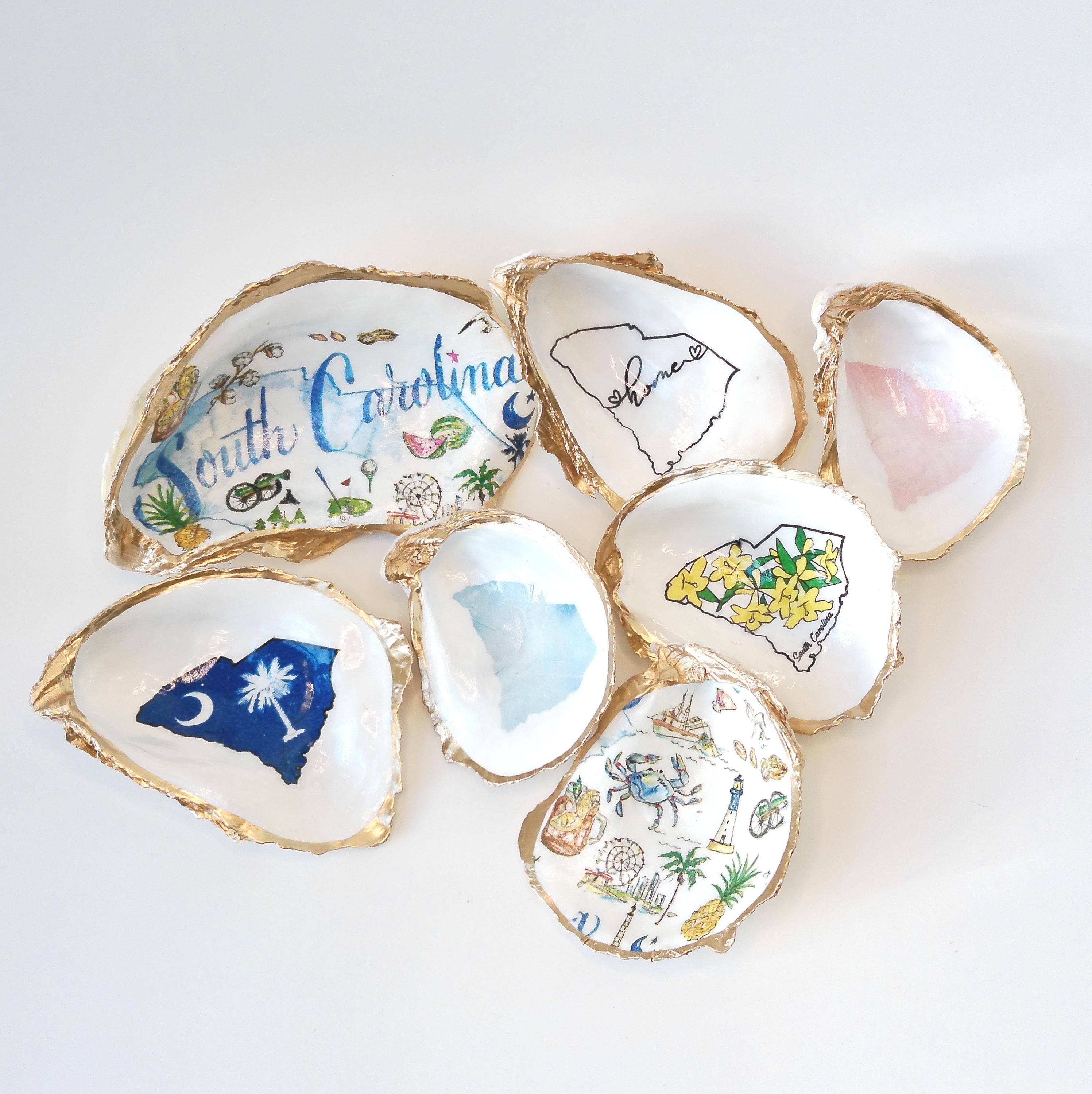 Every shell has a story — shaped by the tides, polished by time, and left behind as a quiet reminder of the sea’s rhythm. What others see as castaways, we see as treasures waiting for a second life. Our journey began on the Carolina coast, where early morning walks along the shoreline revealed glimmers of pearly oyster shells nestled in the sand. Drawn to their natural beauty, we started collecting them — not to discard, but to transform. With each shell, we saw endless possibilities: a dish to hold your jewelry, a wine topper to crown a celebration, an ornament to mark a special season, or a magnet to bring a touch of coastal charm to your everyday. Every piece is handcrafted with care, inspired by the ocean’s effortless elegance and the joy of coastal living. No two shells are ever alike — each one tells its own story of the sea, and together they tell ours: one of sustainability, creativity, and connection. We believe that beauty lies in imperfection and that the simplest things — a shell, a shimmer, a memory — can bring a sense of calm, coastal serenity into your home. From the tide to your table, our oyster creations are a celebration of nature’s artistry and the timeless beauty of the coast.